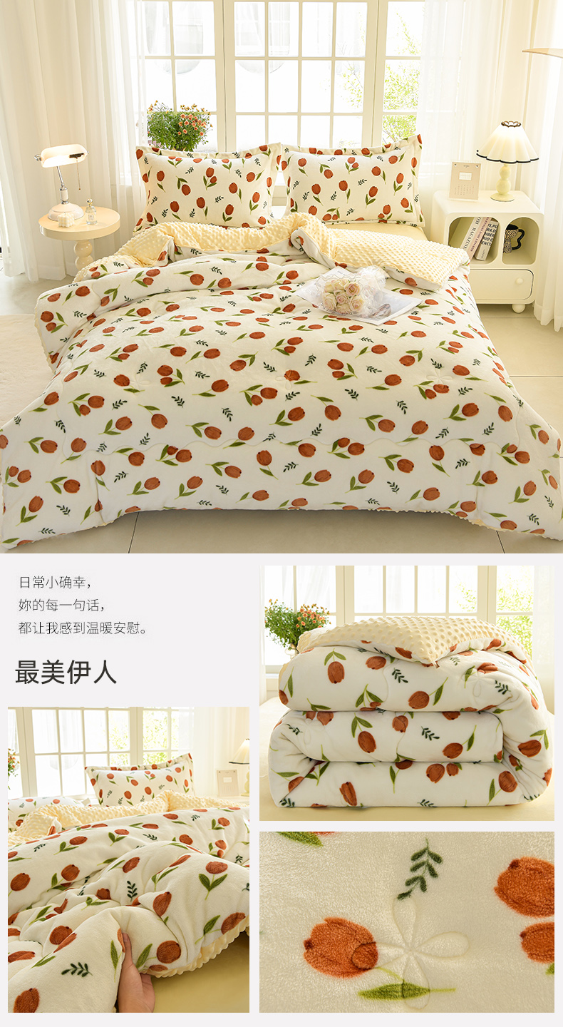 • 91家纺网 家纺一手货源 找家纺 圣楚家纺 2024新款牛奶豆豆绒印花保暖冬被 最美伊人