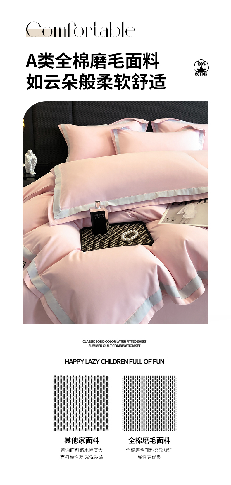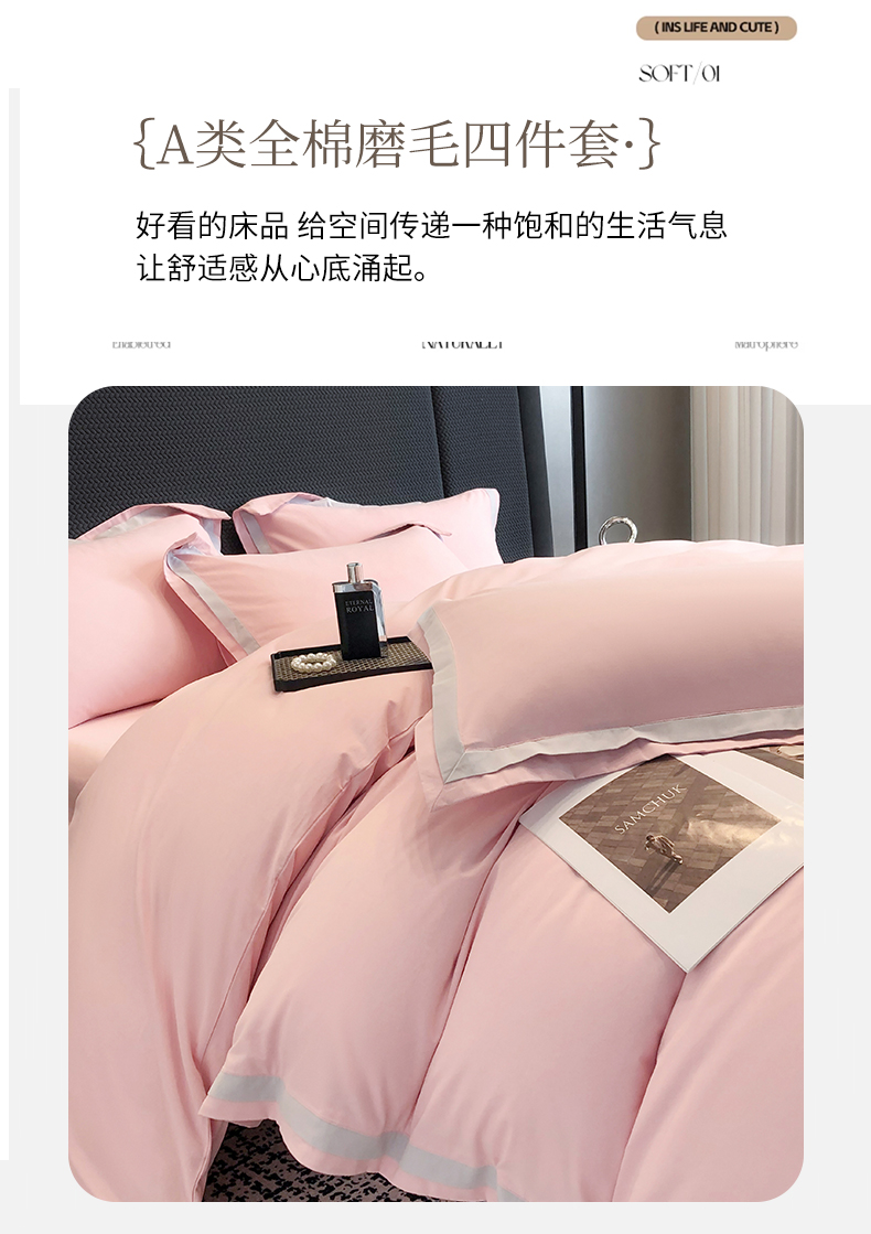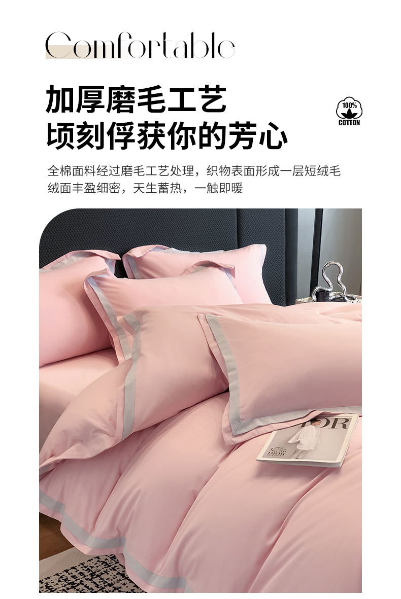 当前位置: 91家纺网 > 商品网购 > 床品套件 > 四件套 > 长绒棉四件套 > 家居1号家纺 2024秋冬新疆长绒棉体双拼纯色磨毛四件套-杰西 杰西-玫瑰粉