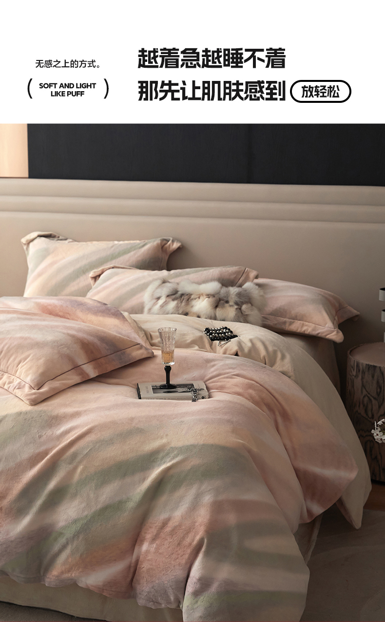 (总)金奇达家纺 2025新款【鎏金谧镜】鎏金系列-羽零™空气拉绒四件套(会员减35元),鎏金谧境-贝卡杏,鎏金谧境-迷雾灰,鎏金谧境-鸢尾蓝,鎏金谧境-浅驼,鎏金谧境-摩卡棕,鎏金谧境-黑曜石