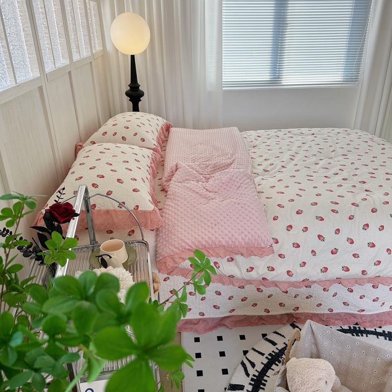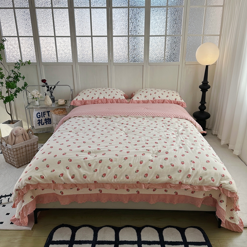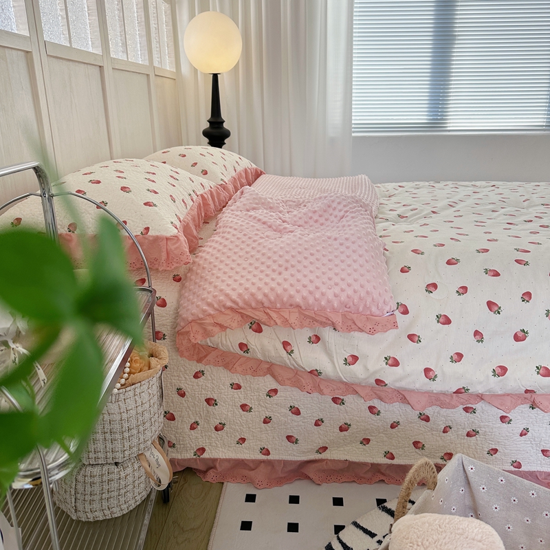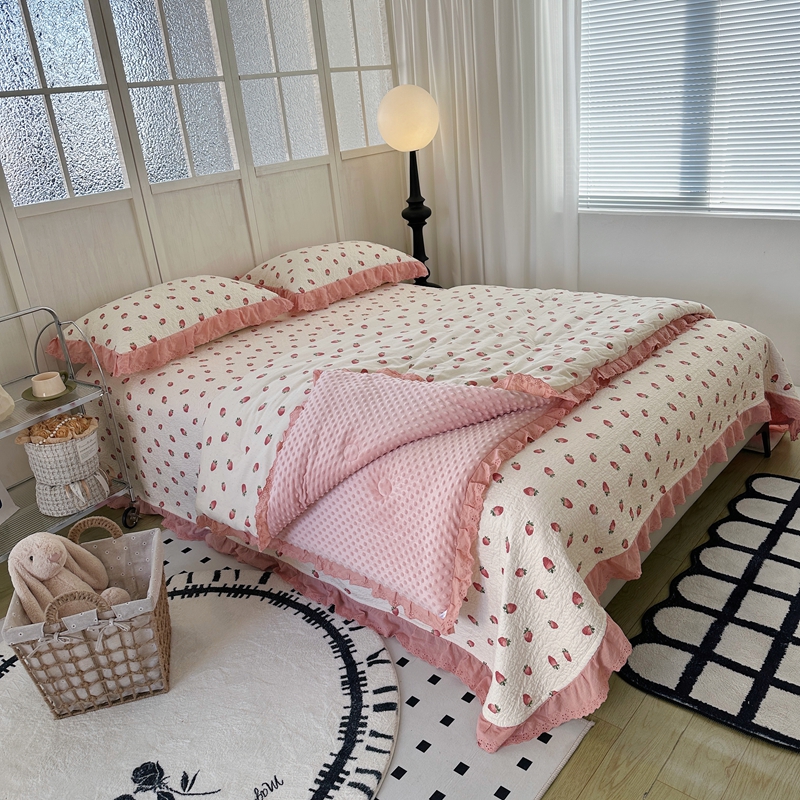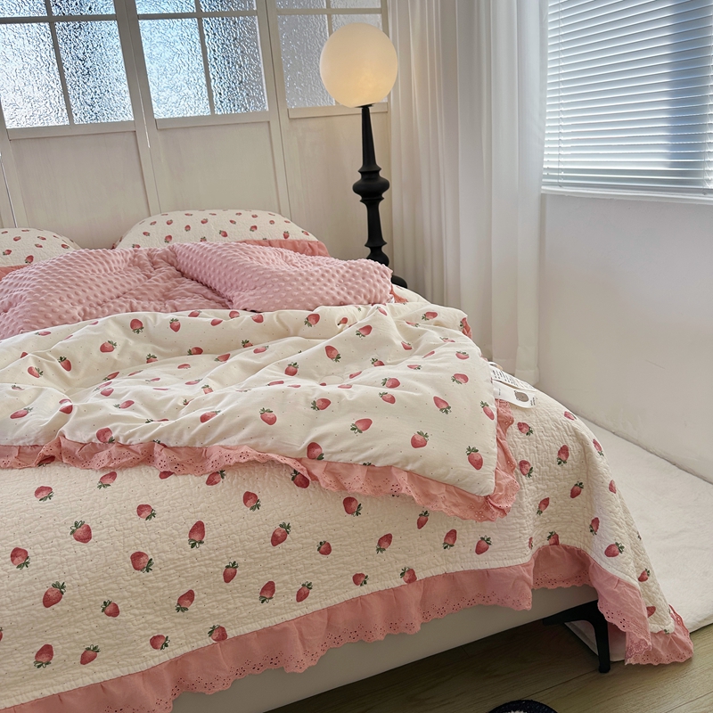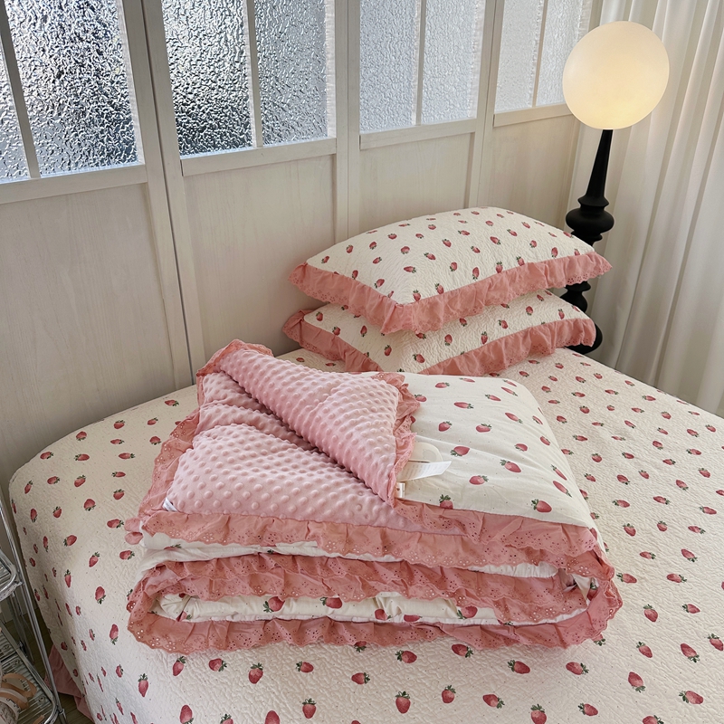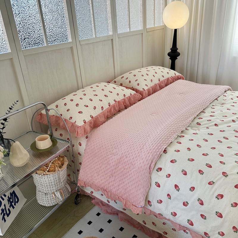 佰织鑫家居 2024新款秋冬全棉法式床盖款豆豆被四件套 甜甜草莓