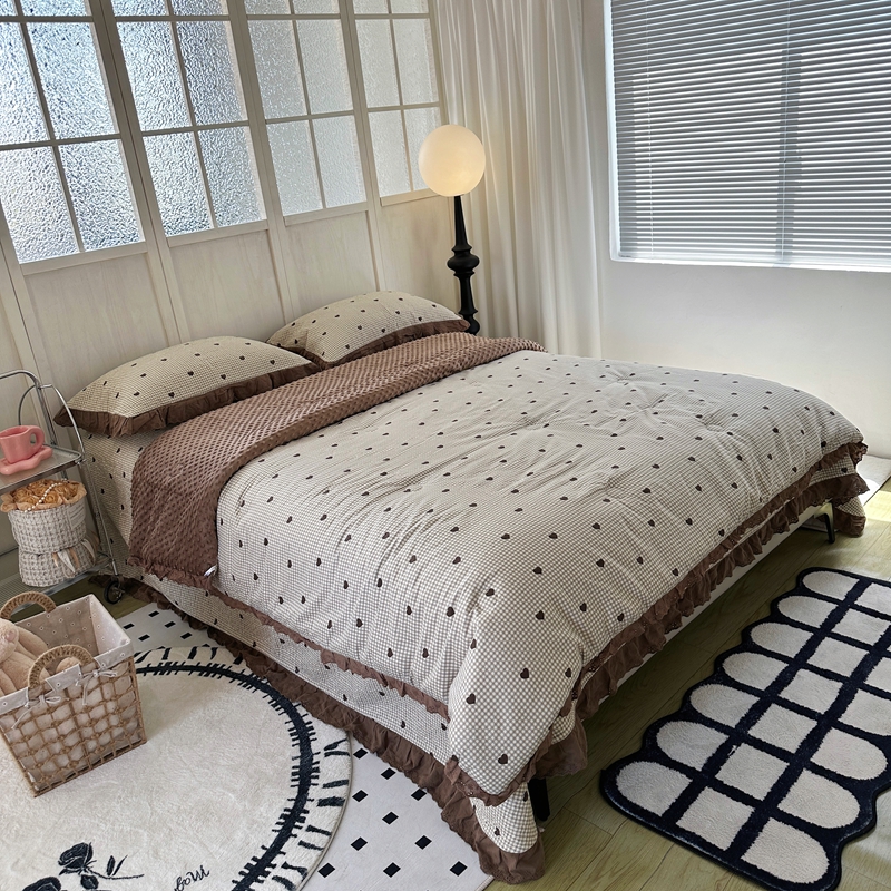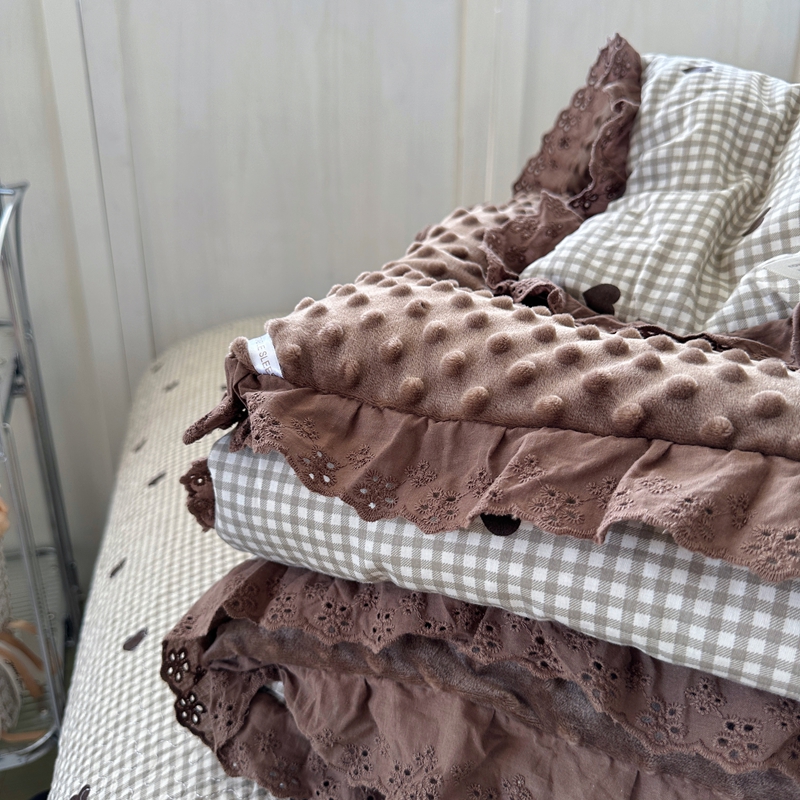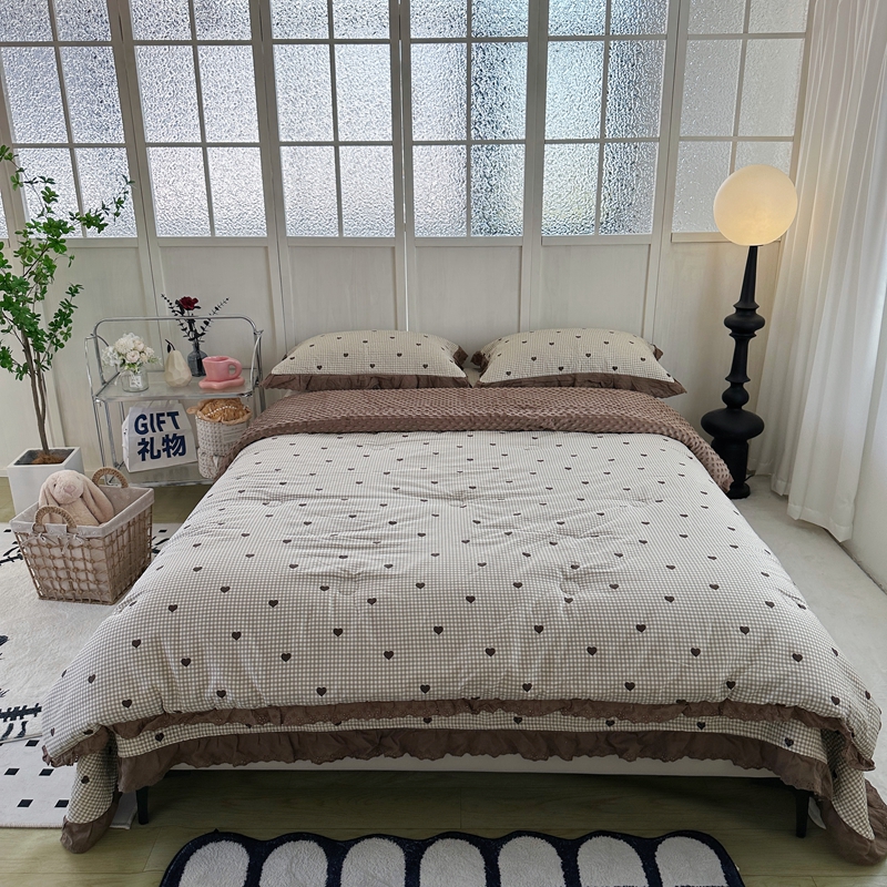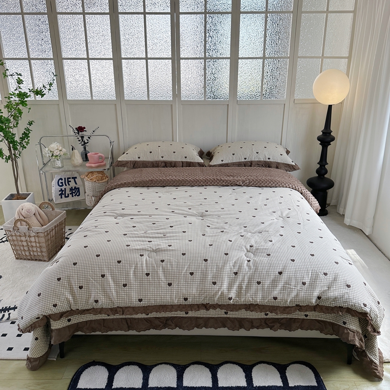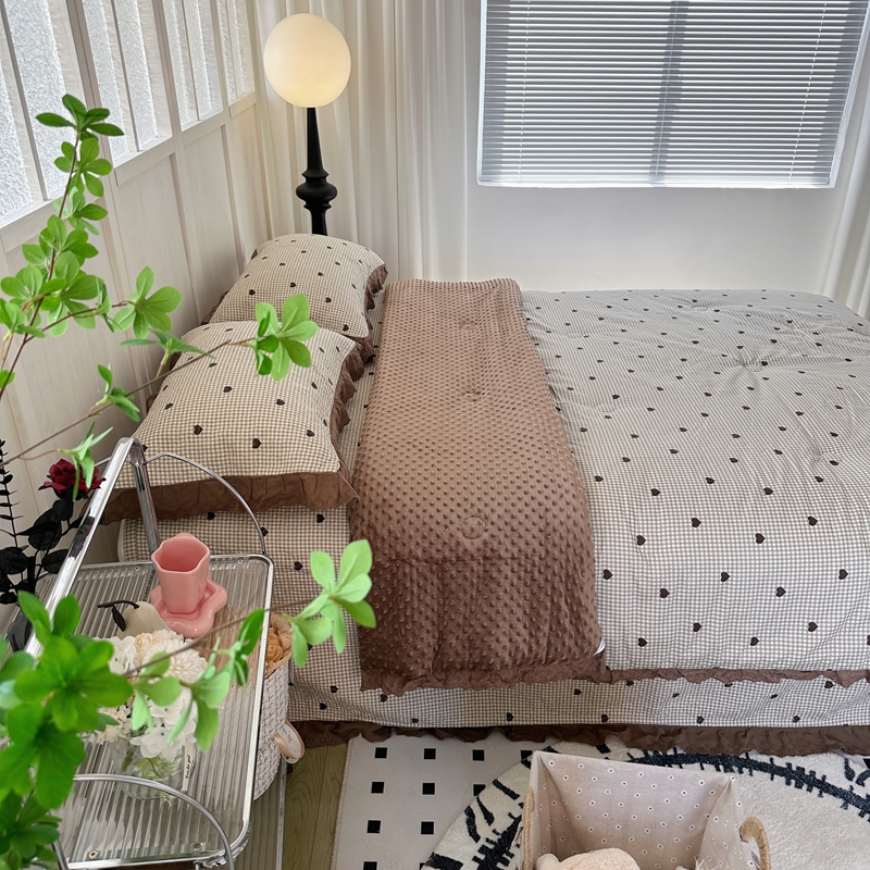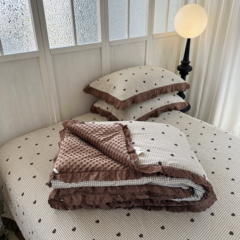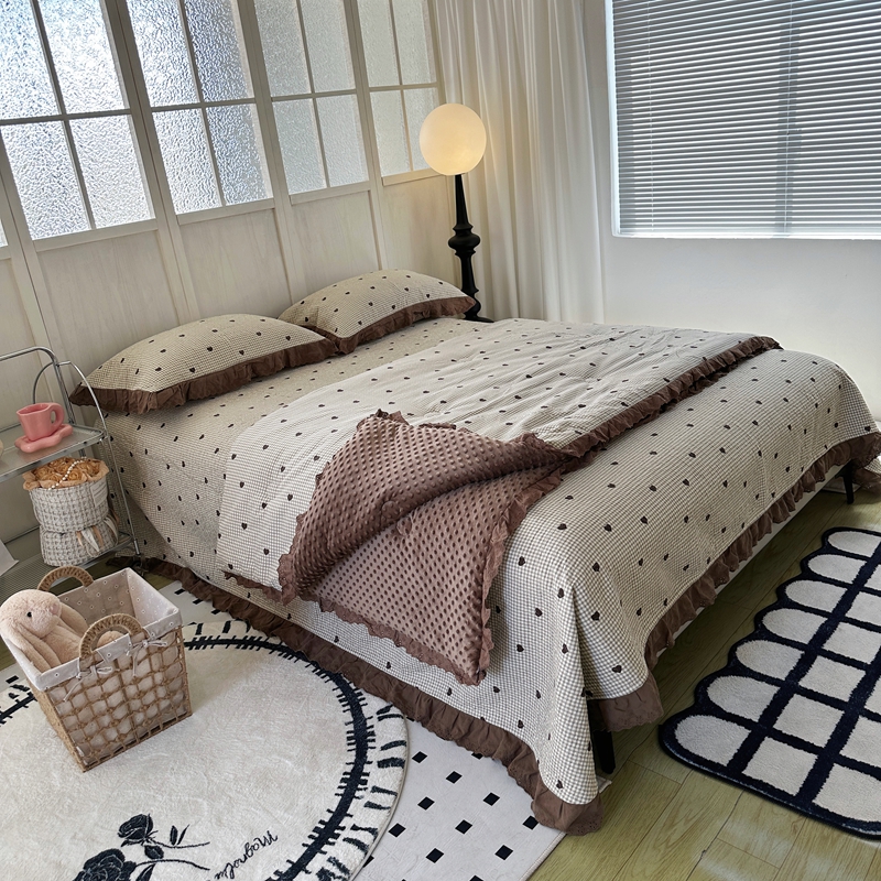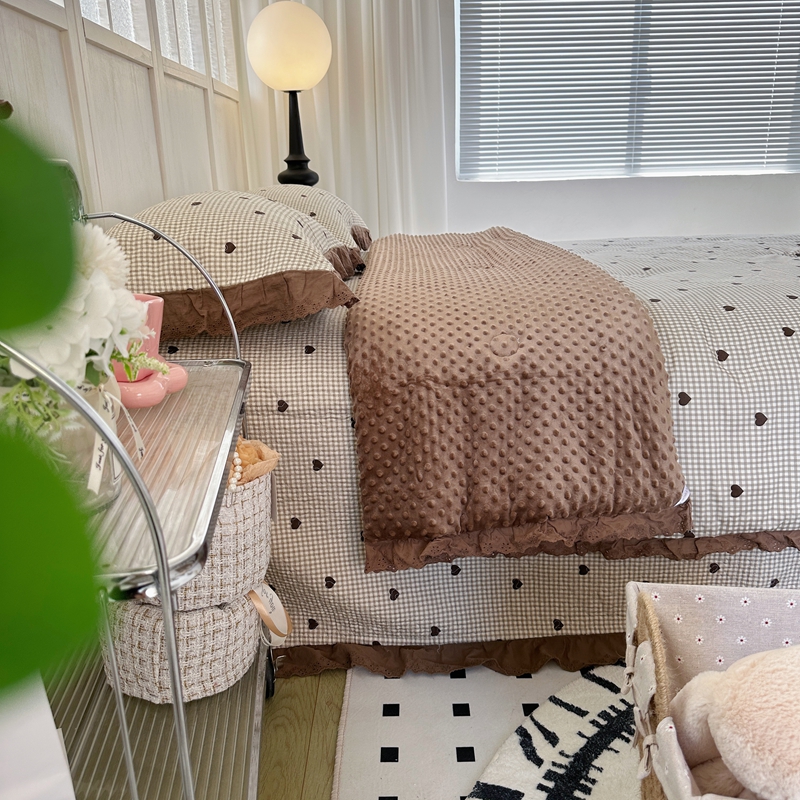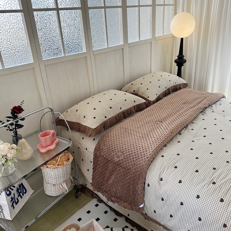 佰织鑫家居 2024新款秋冬全棉法式床盖款豆豆被四件套 甜心格