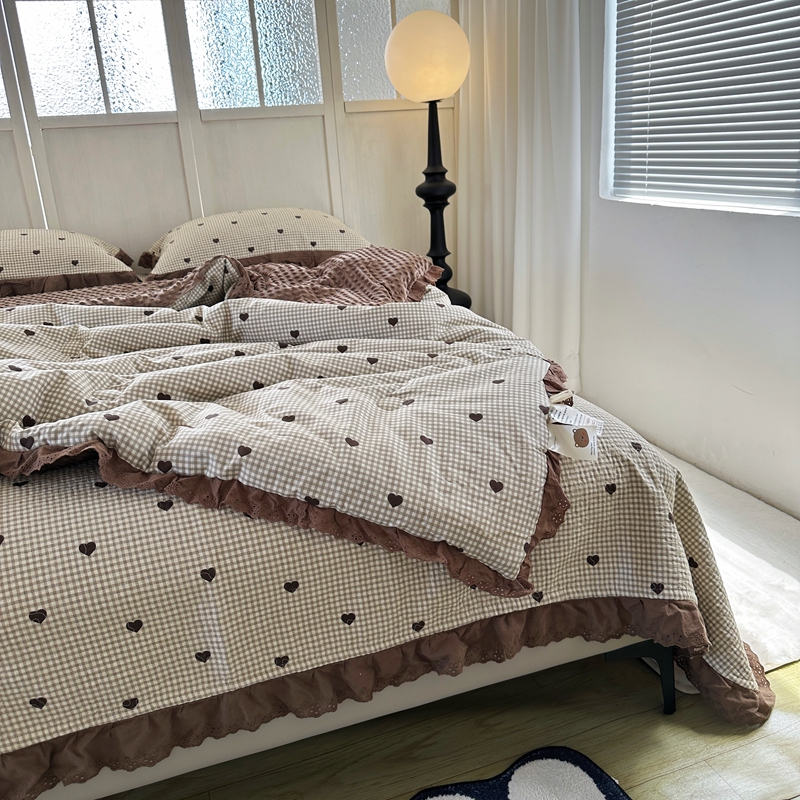 商品名称:佰织鑫家居 2024新款秋冬全棉法式床盖款豆豆被四件套 甜心格