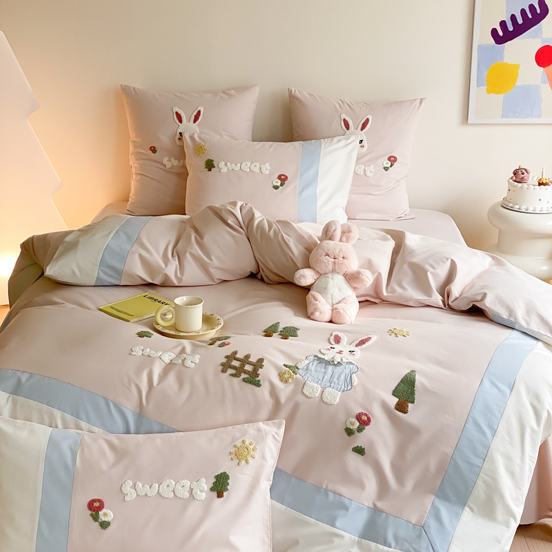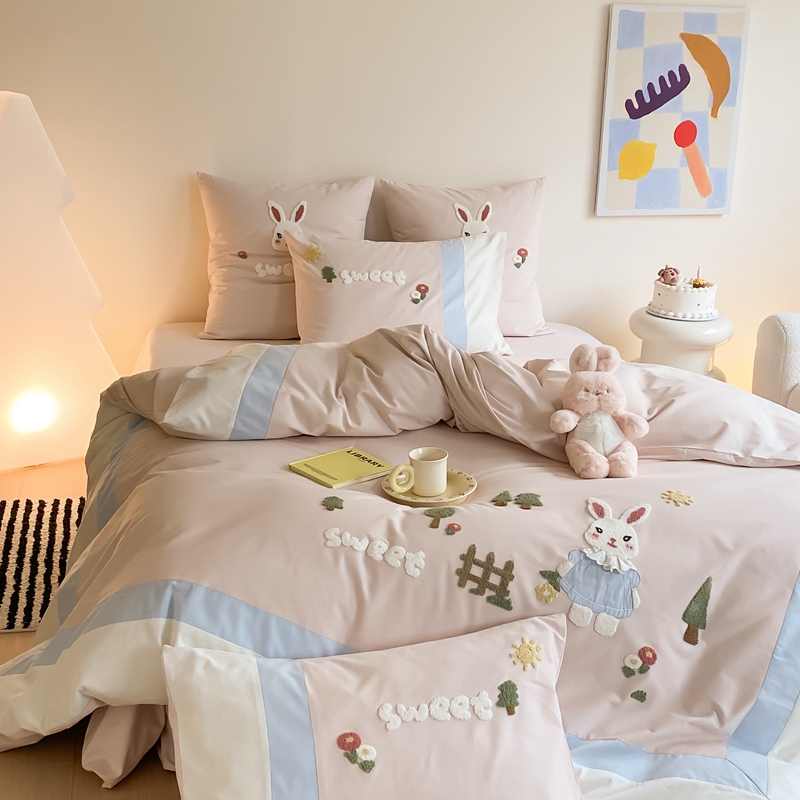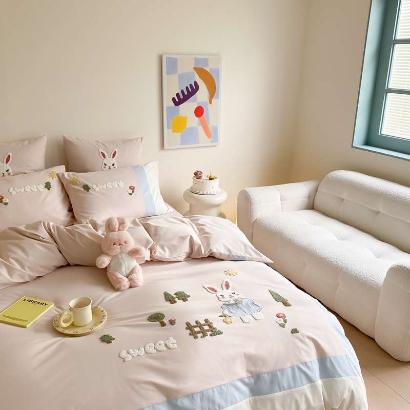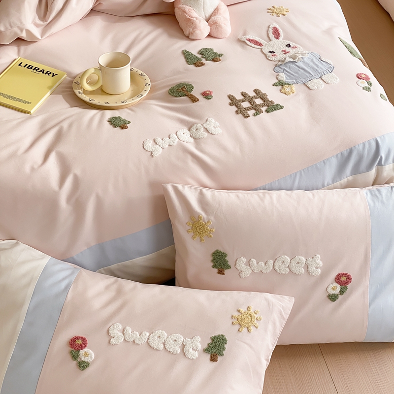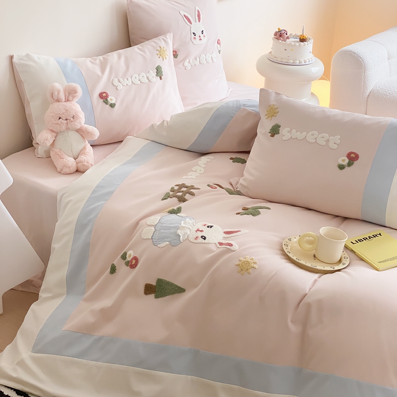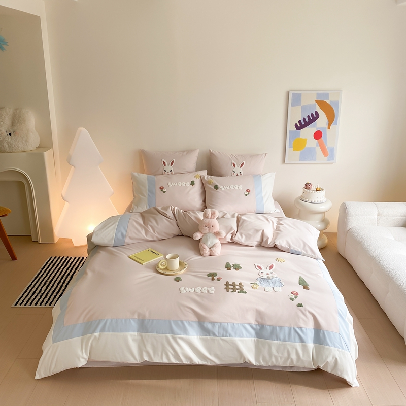 (总)星野 2025新款高克重牛奶绒贴布绣四件套-波点兔,波点兔