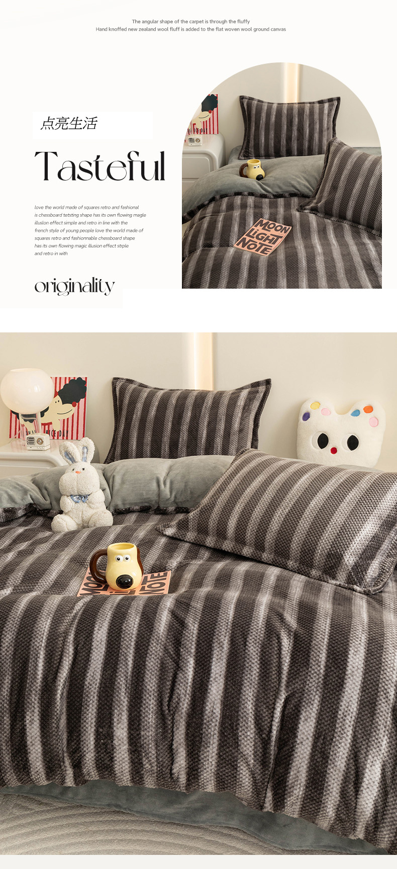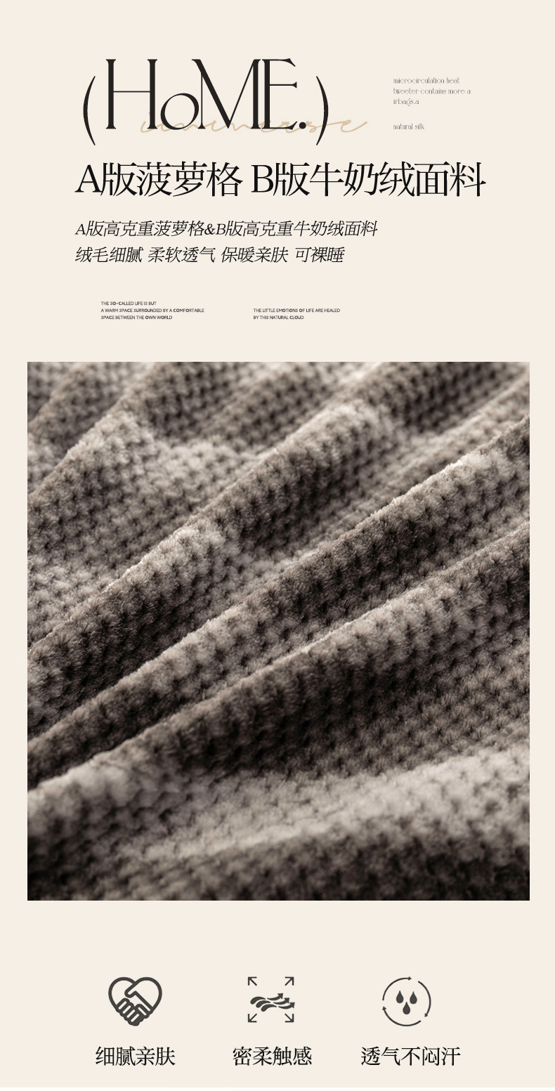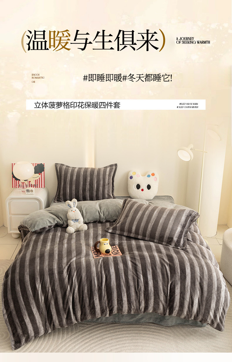 当前位置: 91家纺网 > 商品网购 > 床品套件 > 四件套 > 牛奶绒四件套 > 2024新款立体菠萝格印花保暖牛奶绒系列四件套 个性灰