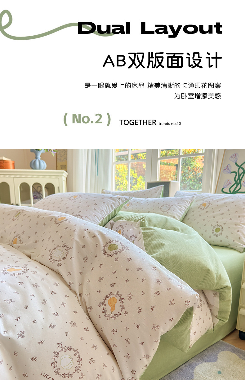 商品名称:清雅福 2024新款全棉13070印花单品系列-四件套 南瓜联盟米