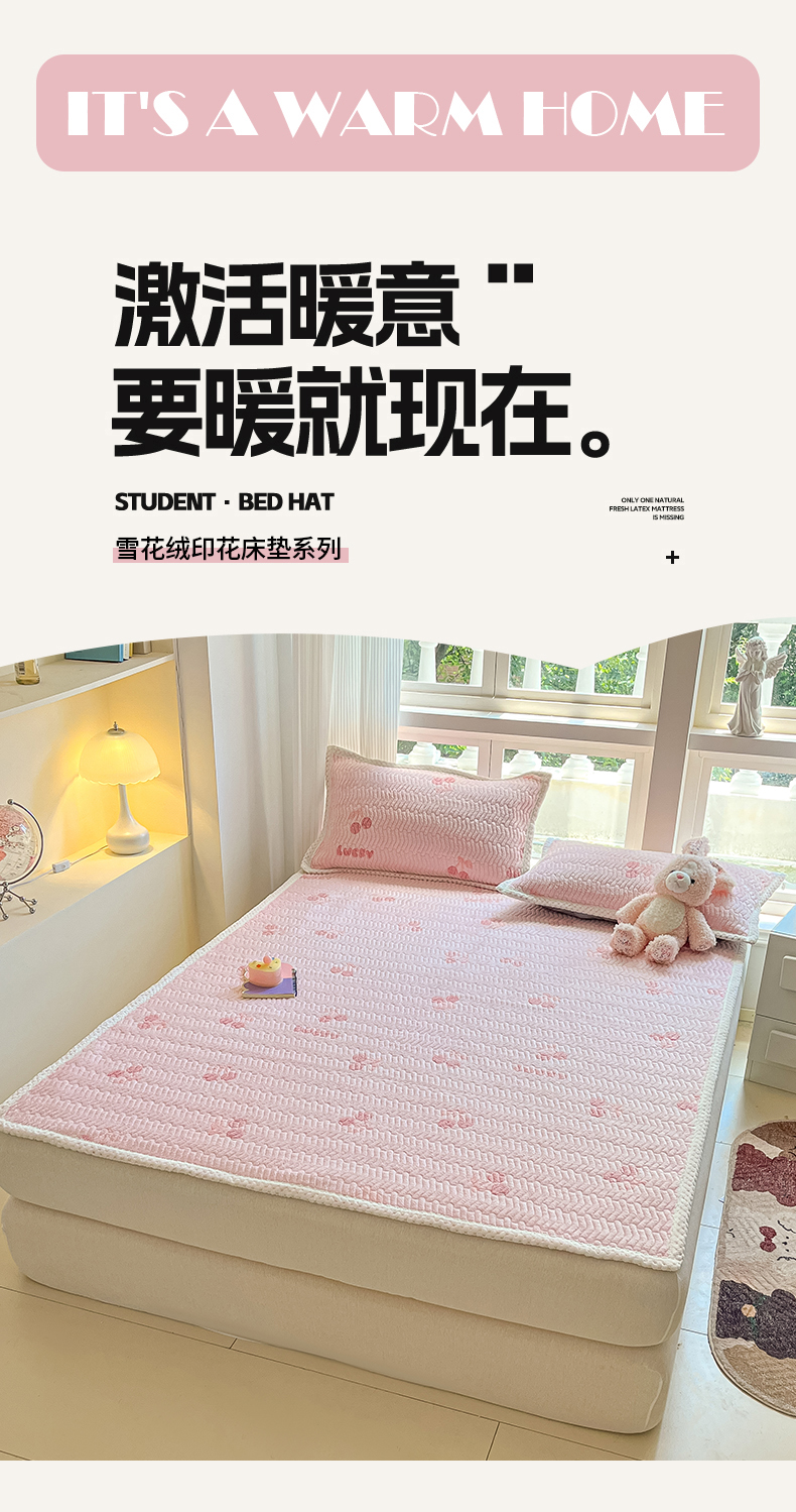 当前位置: 91家纺网 > 商品网购 > 床垫/床褥 > 普通床垫 > 川悦生活 2024新款A类印花雪花绒床垫加厚绒保暖床护垫 床垫ins樱桃