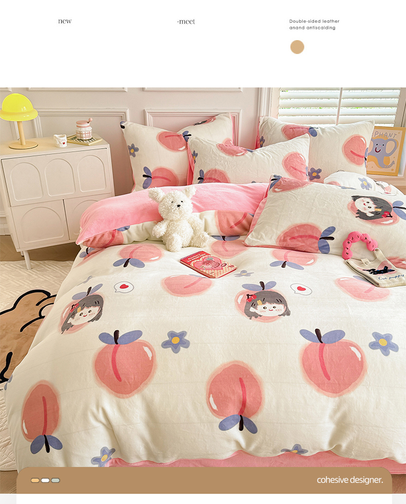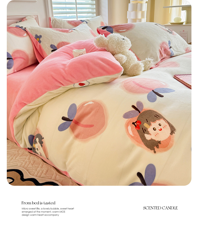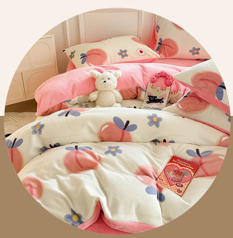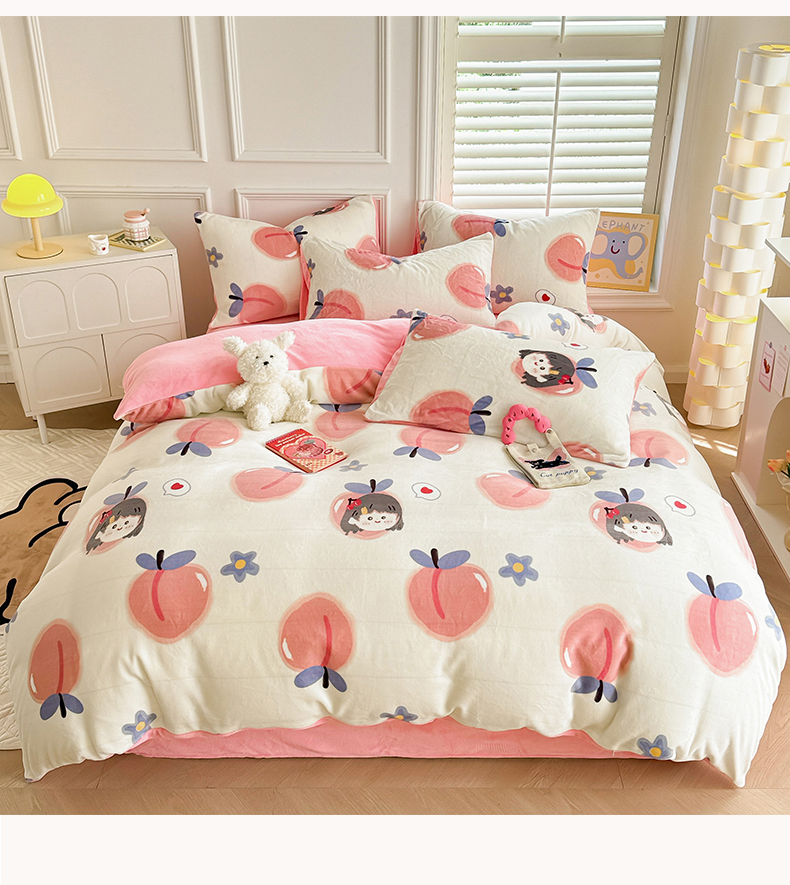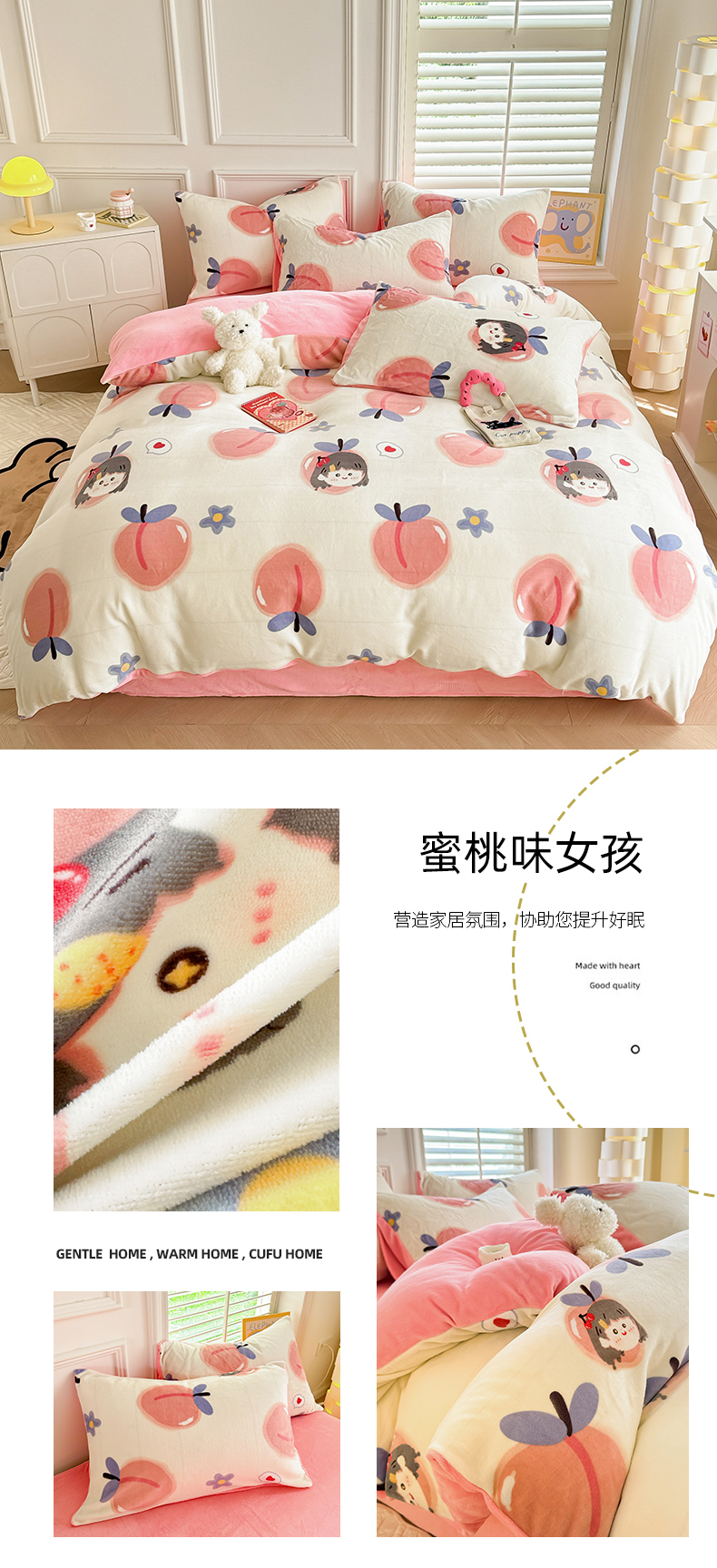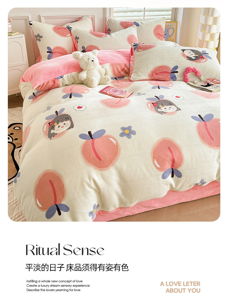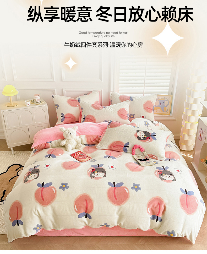 当前位置: 91家纺网 > 商品网购 > 床品套件 > 四件套 > 牛奶绒四件套 > 简宜家居 2025新款牛奶绒印花四件套 蜜桃味女孩