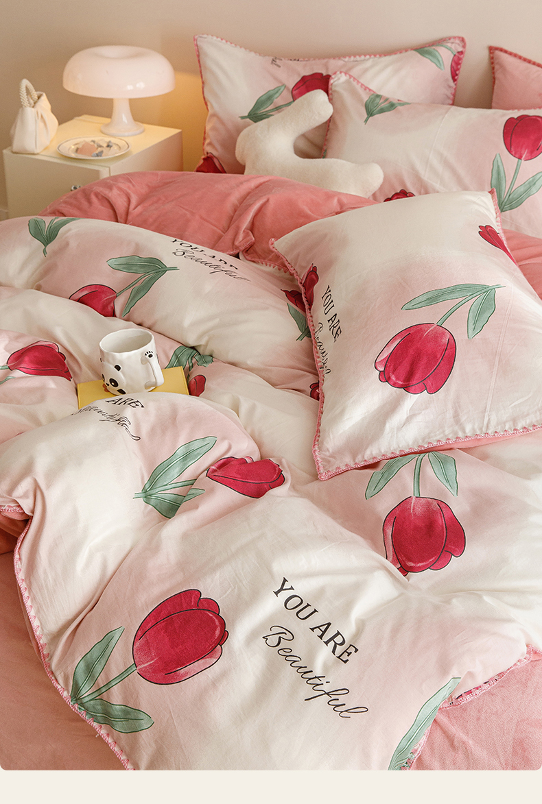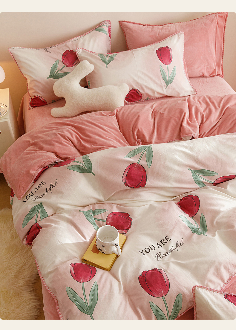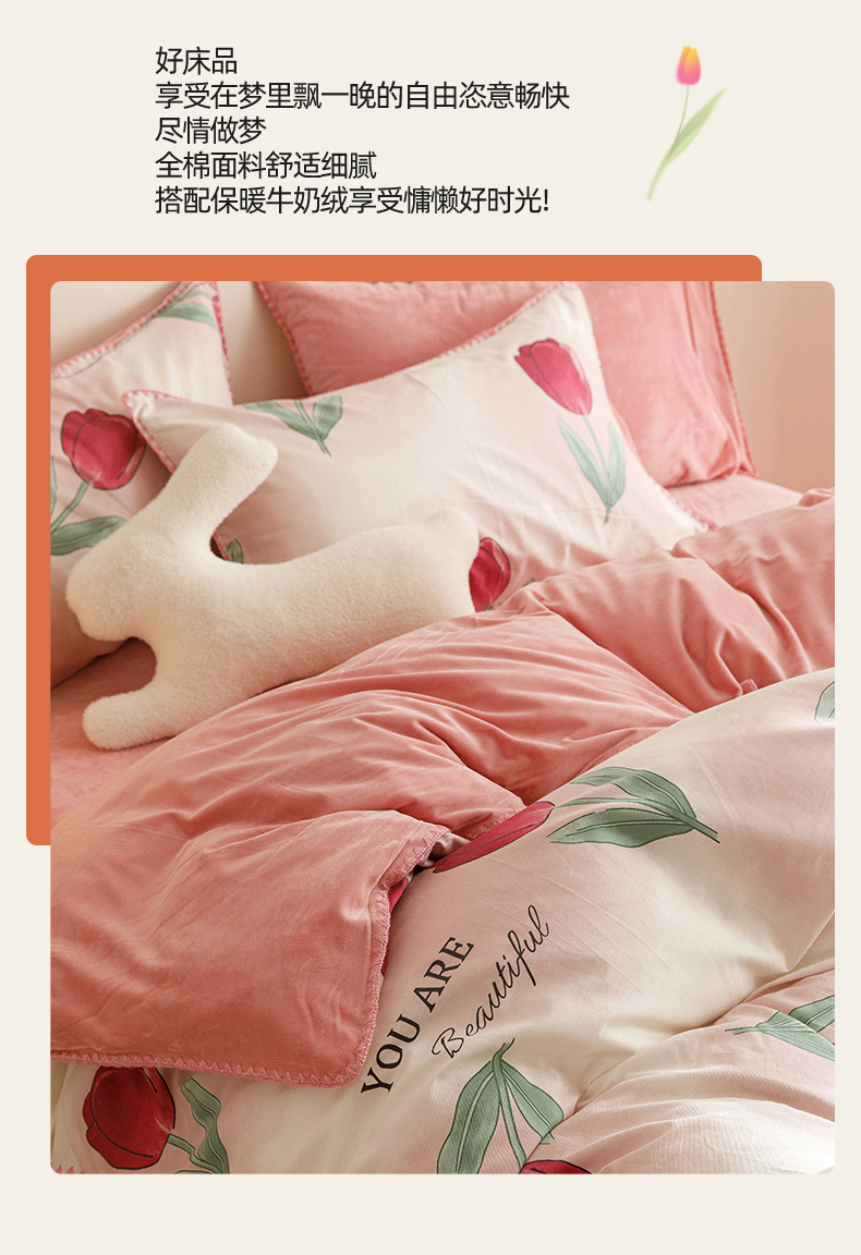 当前位置: 91家纺网 > 商品网购 > 床品套件 > 四件套 > 牛奶绒四件套 > 红粉佳人新款小清新卡通贝壳边三角针棉加绒四件套工艺款牛奶绒四件套遇见红