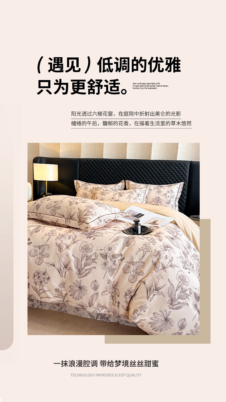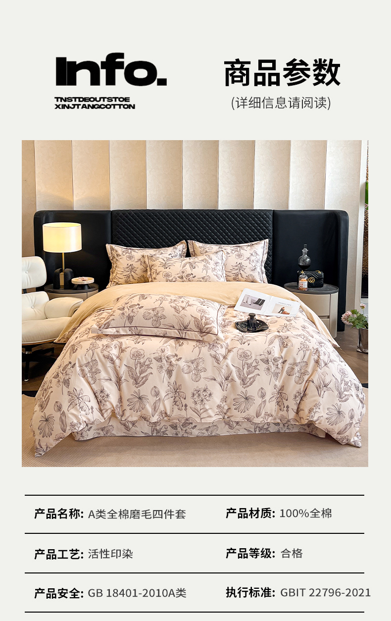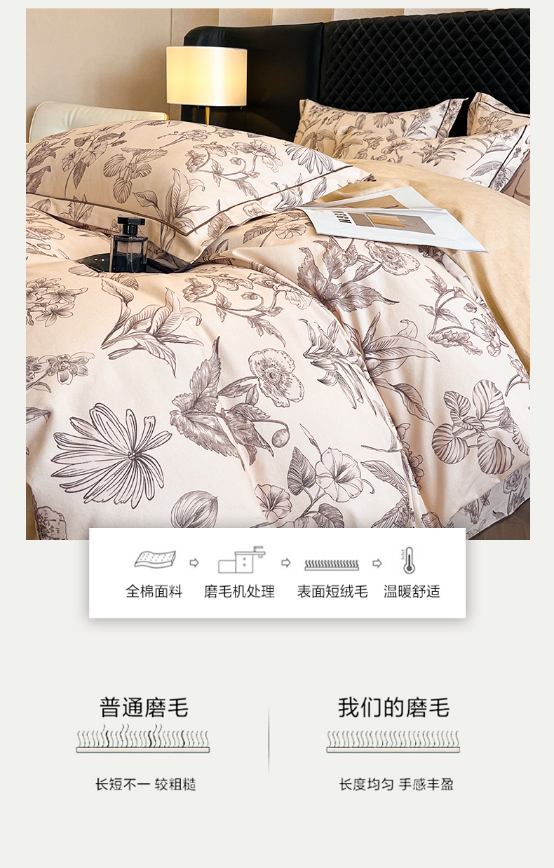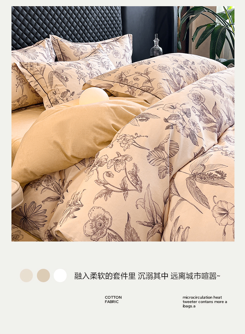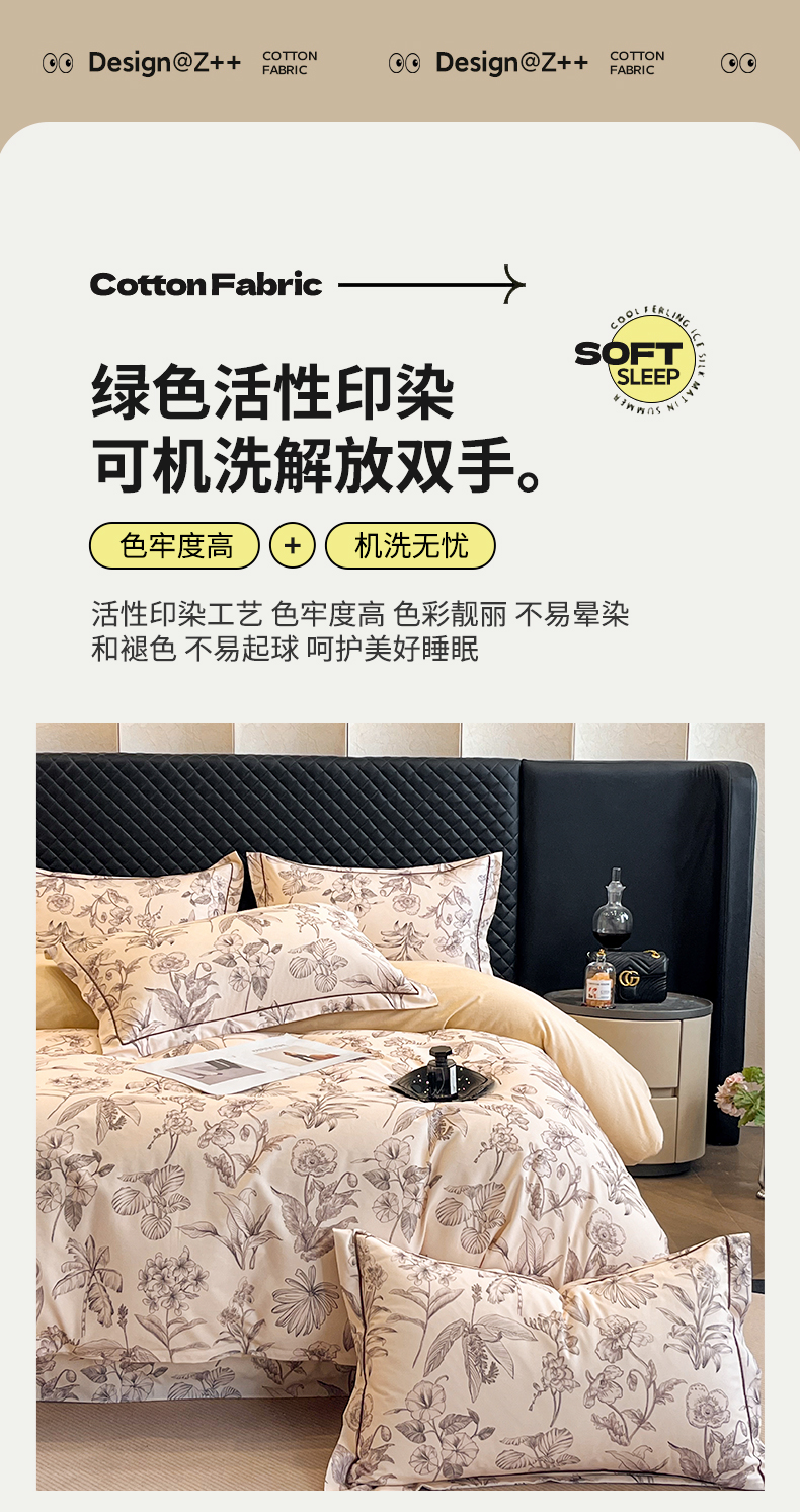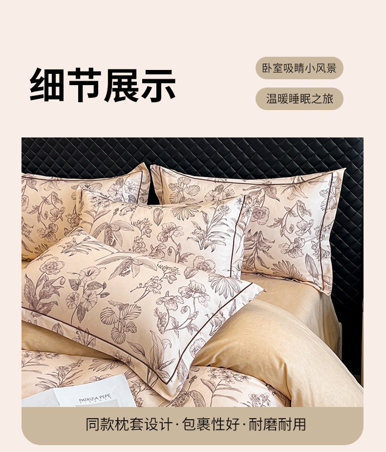 当前位置: 91家纺网 > 商品网购 > 床品套件 > 四件套 > 普通磨毛四件套 > 大柏树 2025新款A类全棉磨毛印花四件套 叶舒米