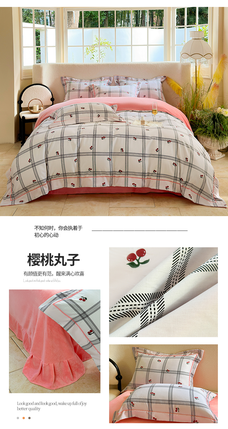 当前位置: 91家纺网 > 商品网购 > 床品套件 > 四件套 > 牛奶绒四件套 > 2025新款A纯棉B牛奶绒四件套13376全棉加绒一字绣宽边轻奢套件-夹棉款 樱桃丸子