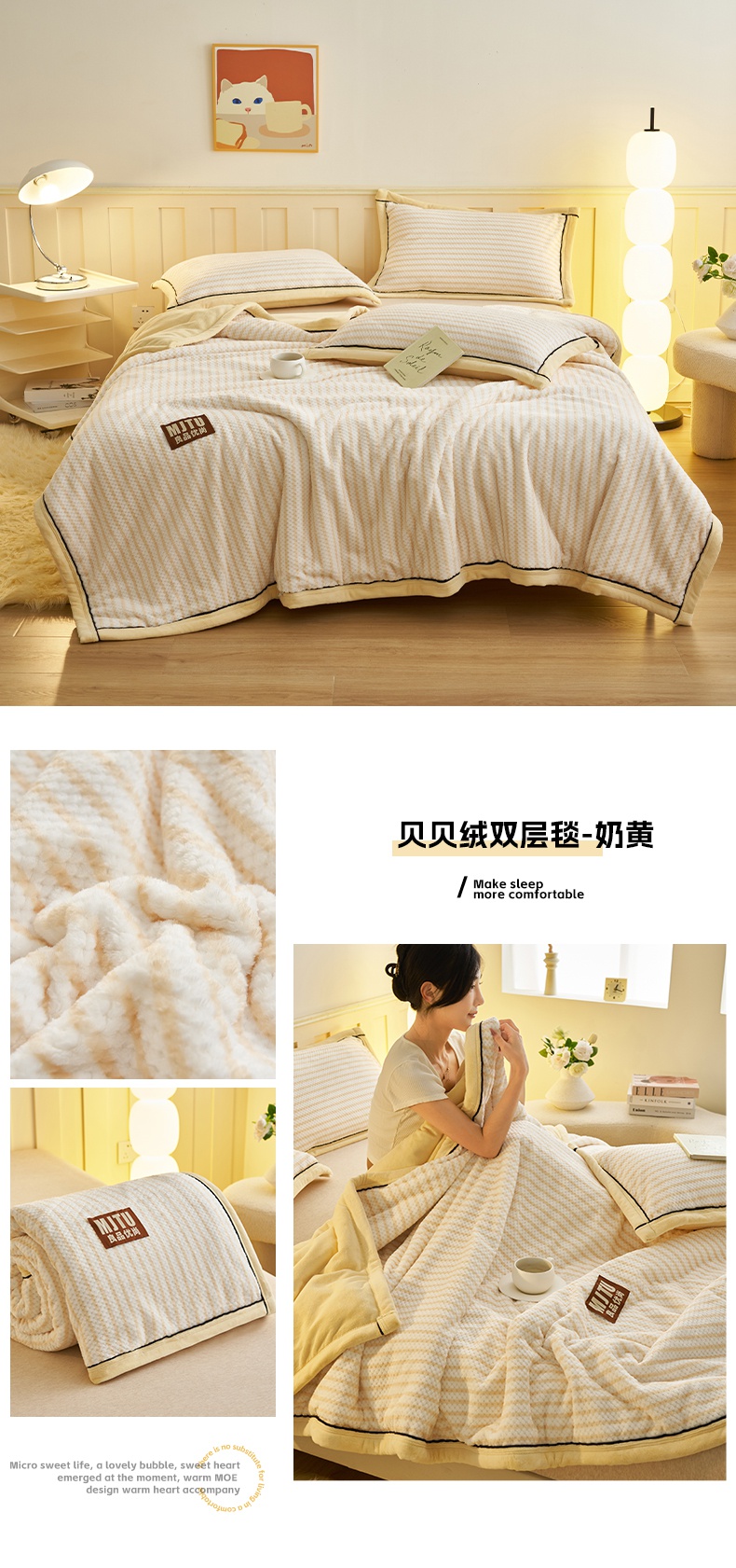 晨曦家纺 2024新款贝贝绒牛奶绒双层毛毯两用被套毯 贝贝绒双层毯-奶黄