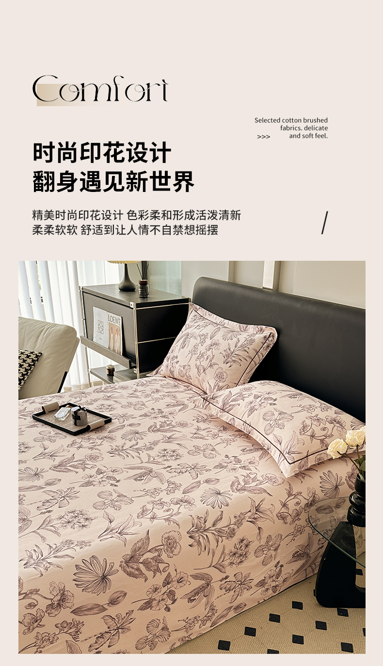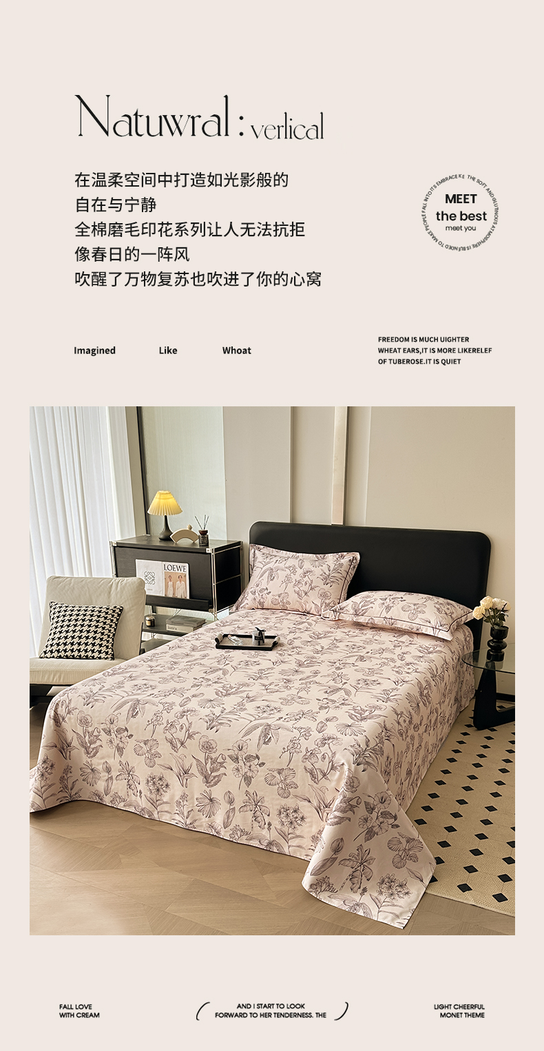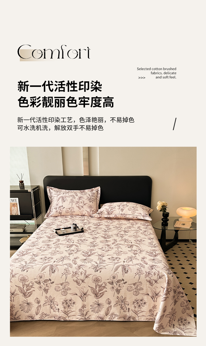商品名称:大柏树 2025新款A类全棉磨毛印花单床单 叶舒米