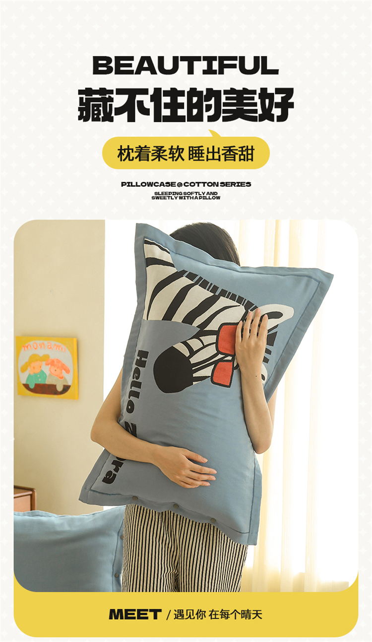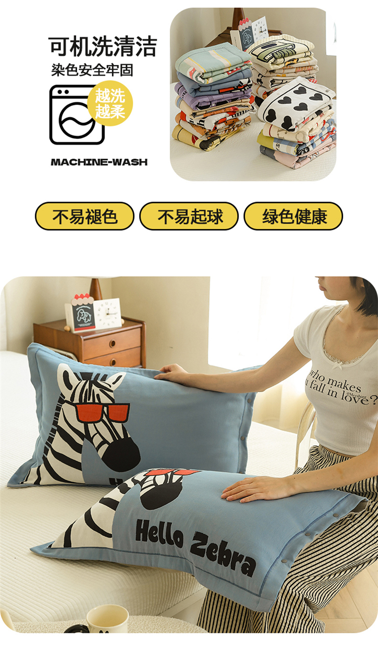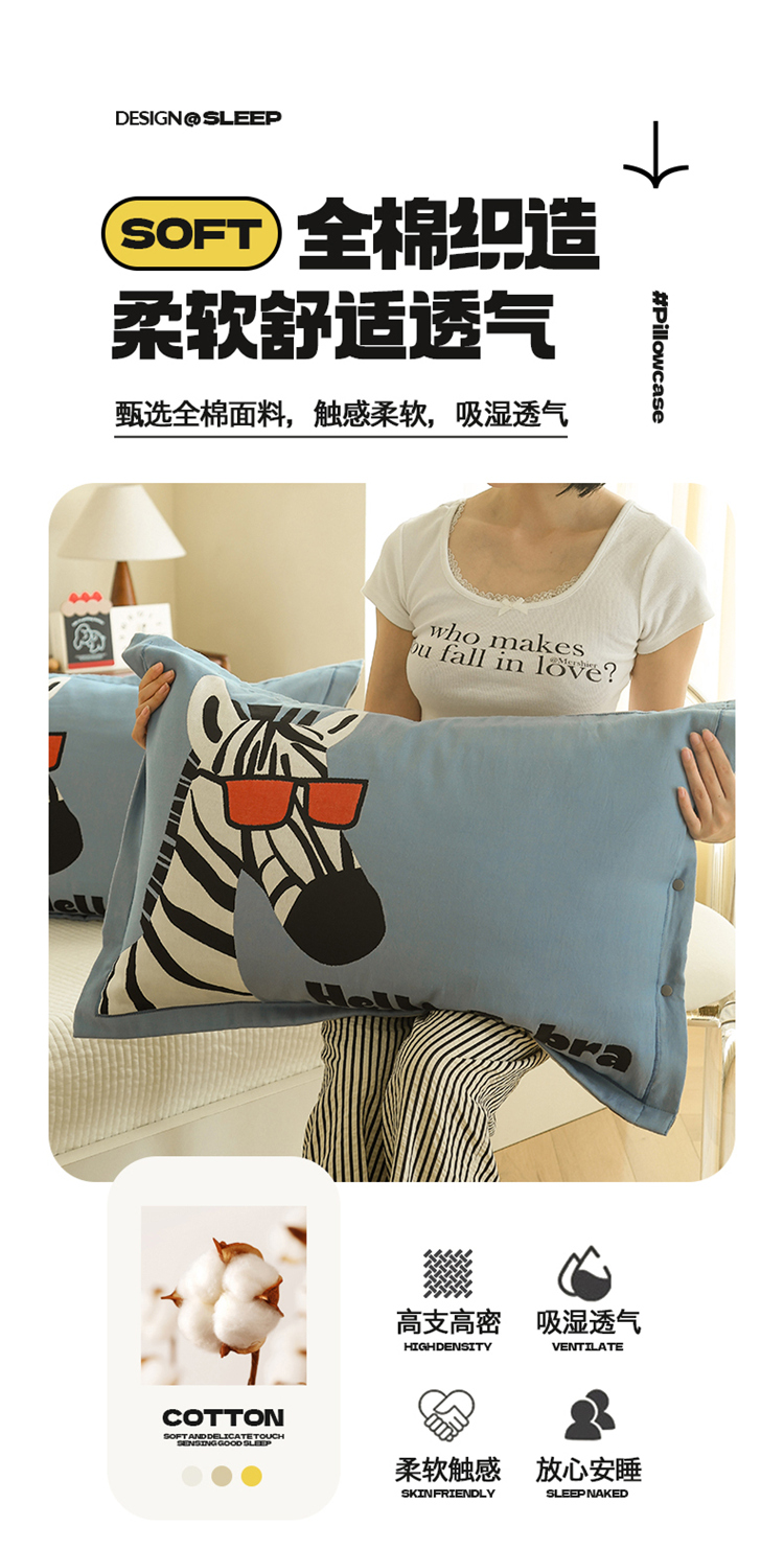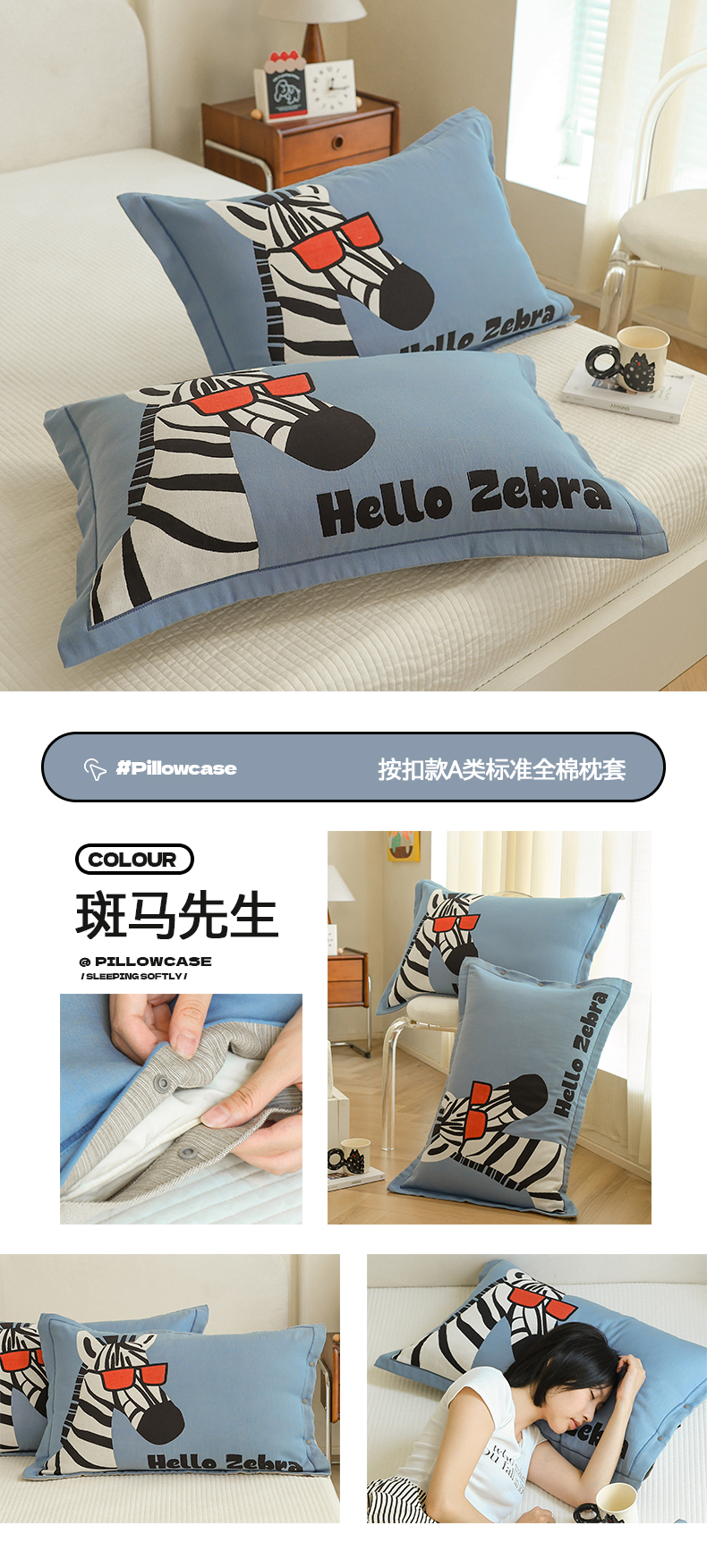 商品名称:2024新款全棉四层纱布枕套一对装纽扣款枕套 斑马先生