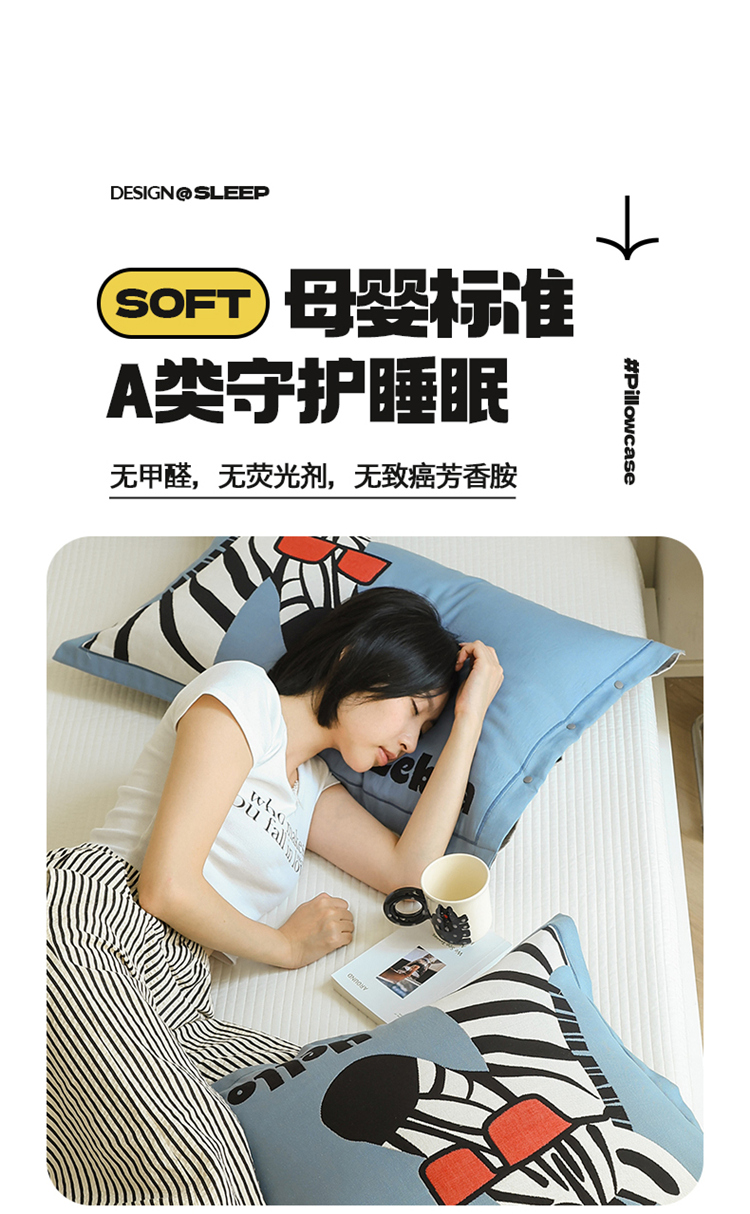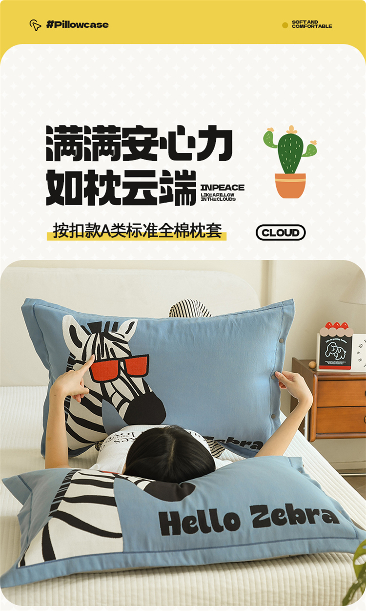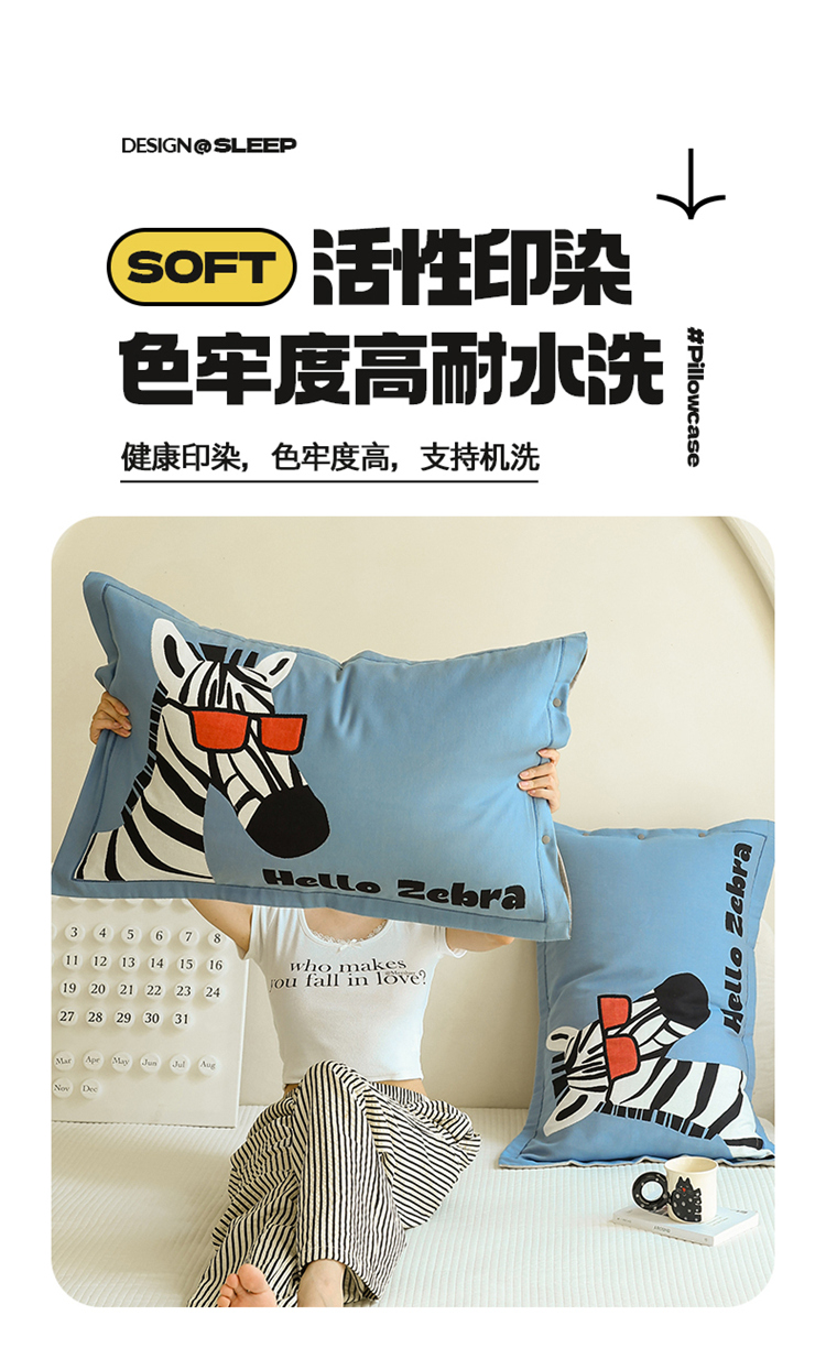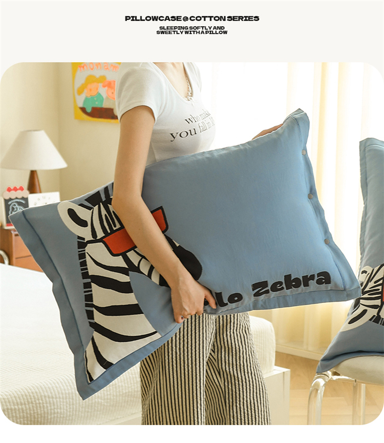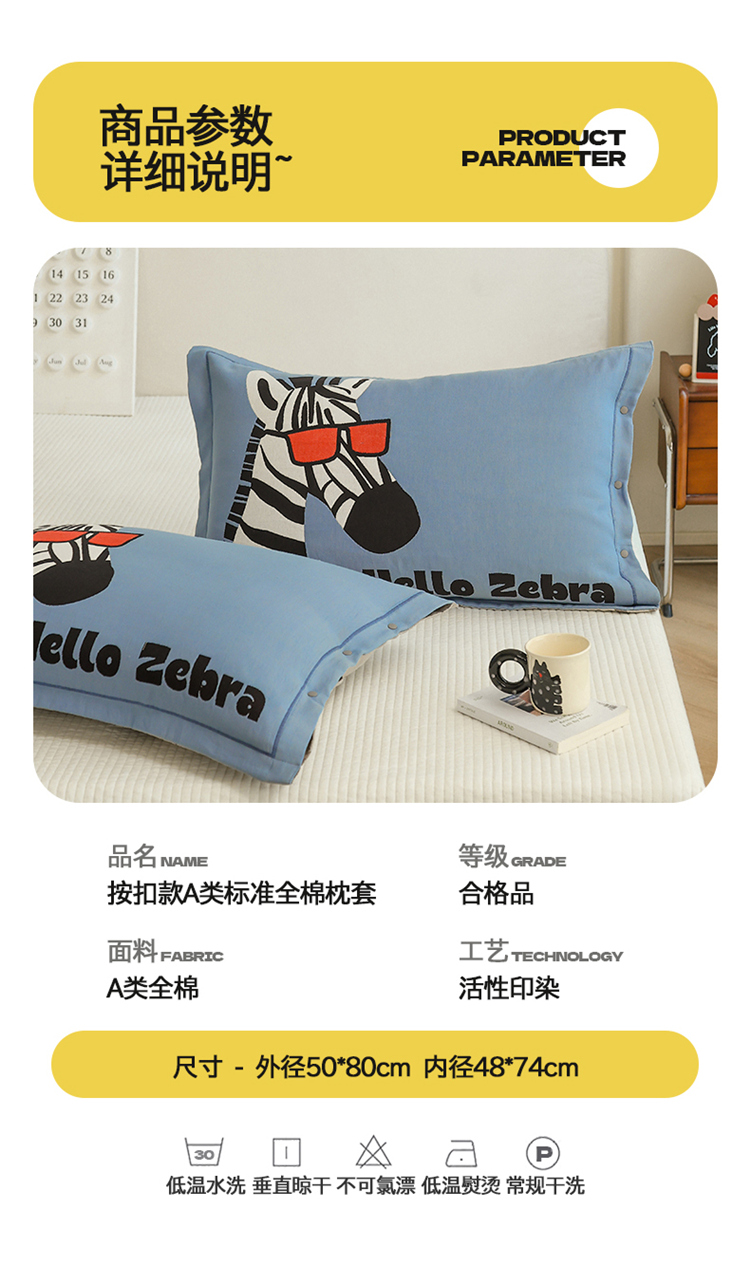 商品名称:2024新款全棉四层纱布枕套一对装纽扣款枕套 斑马先生
