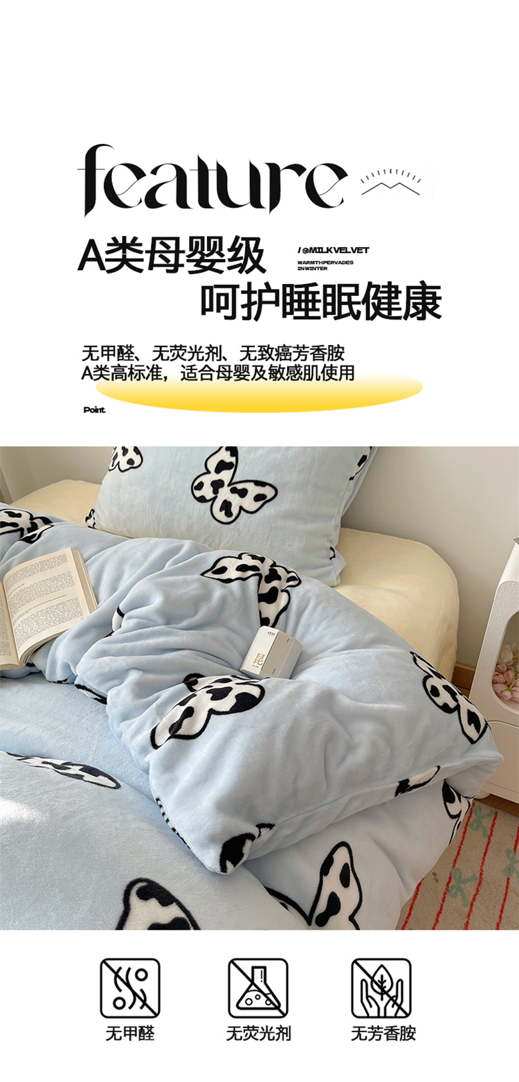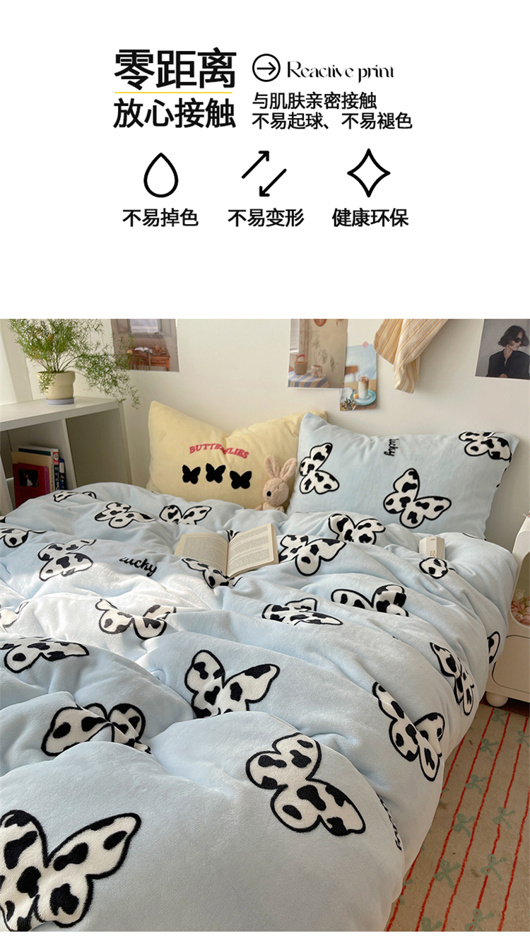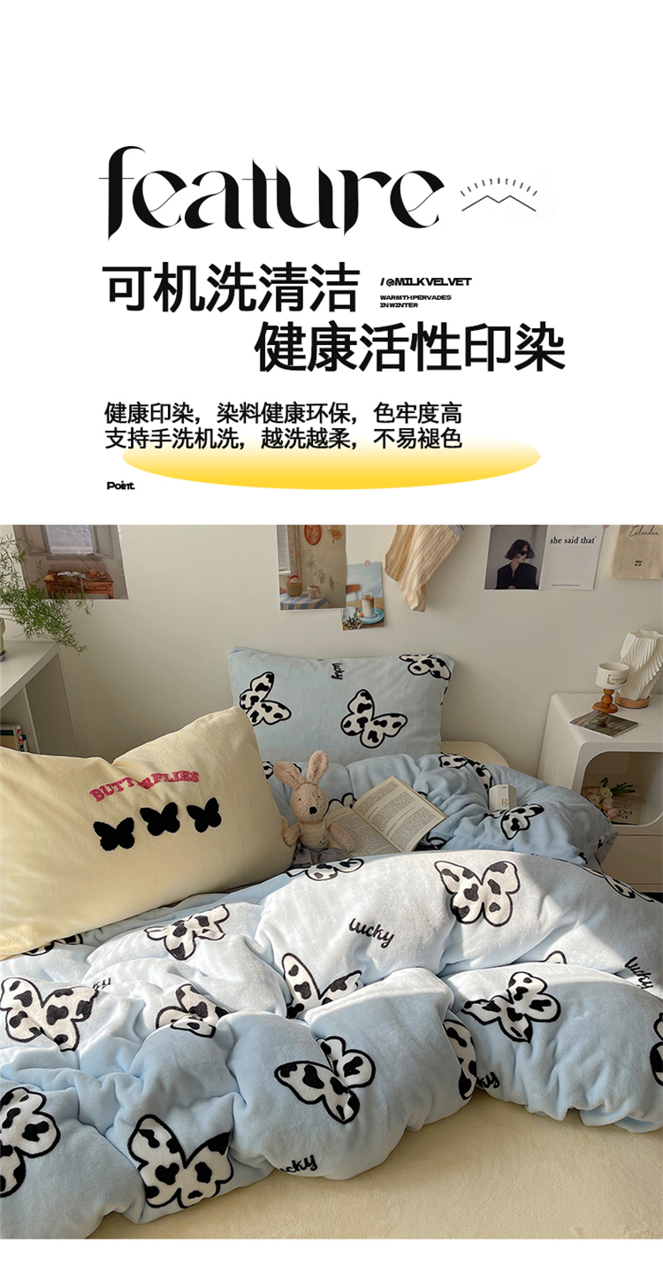 当前位置: 91家纺网 > 商品网购 > 床品套件 > 四件套 > 牛奶绒四件套 > 2024新款A类ins少女小清新蝴蝶爱心蝴蝶结毛巾绣混搭牛奶绒系列四件套 绒毛巾绣-奶牛蝴蝶蓝