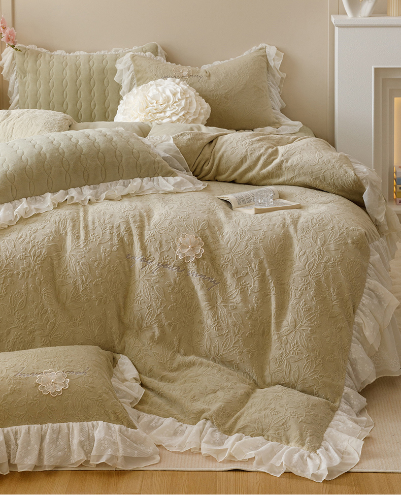 当前位置: 91家纺网 > 商品网购 > 床品套件 > 四件套 > 牛奶绒四件套 > 2025新款法式牛奶绒蕾丝床盖四件套系列-爱丽丝 爱丽丝-橄榄绿