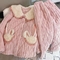 (总)洛兰沙家居馆 2024秋冬新款清新睡衣女三层夹棉玉兔绒加厚保暖两件套女士可外穿加绒家居服,粉色,黄色