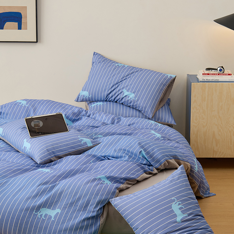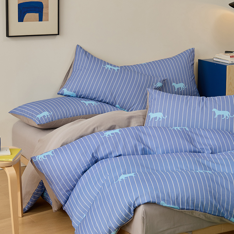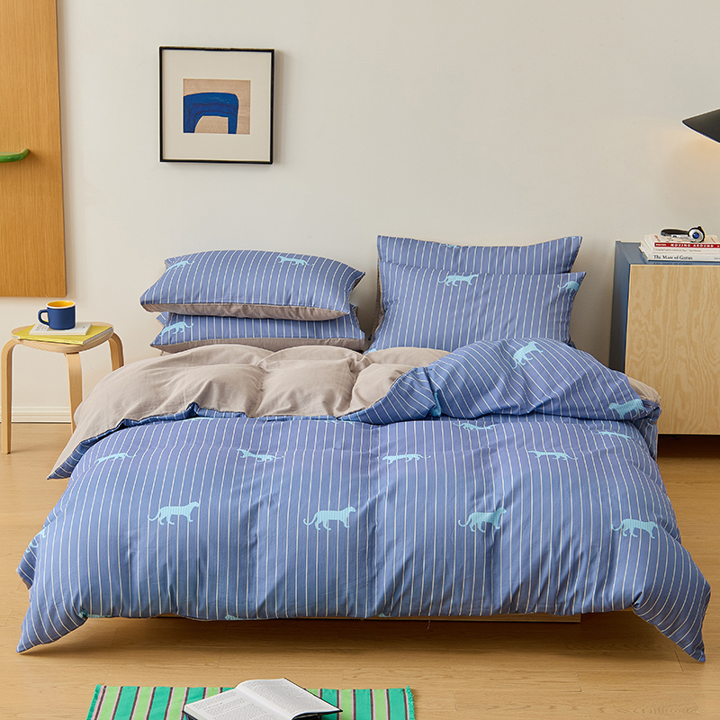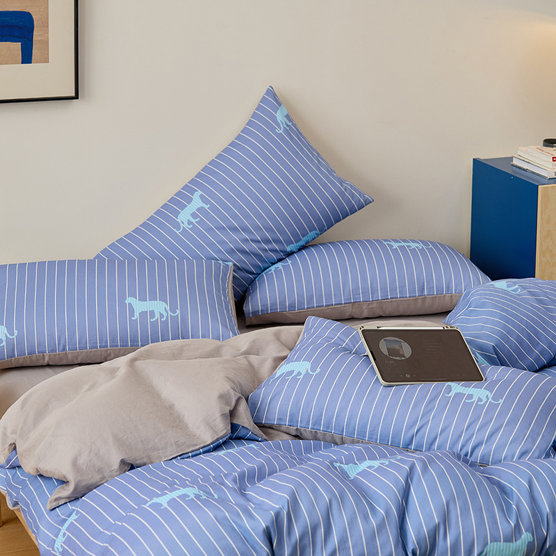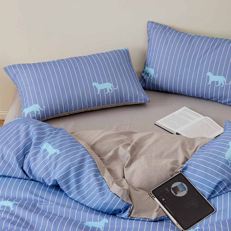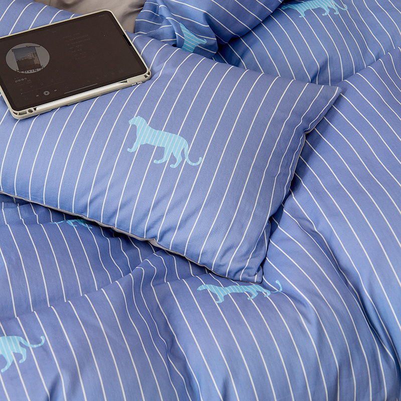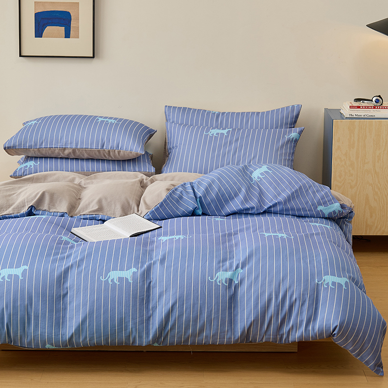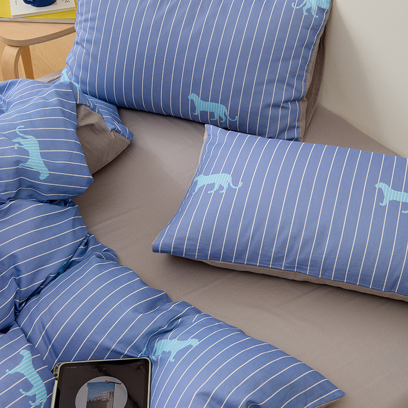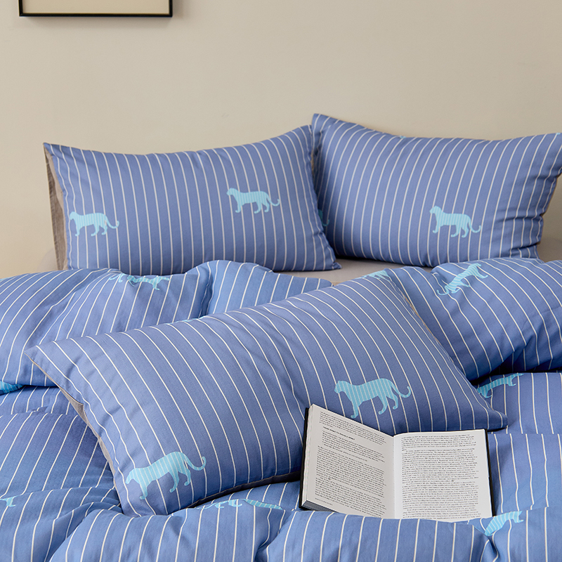当前位置: 91家纺网 > 商品网购 > 床品套件 > 四件套 > 全棉普通四件套 > 8小时家纺 2024新款40s双层纱单品四件套系列-四件套 蓝色条纹豹子