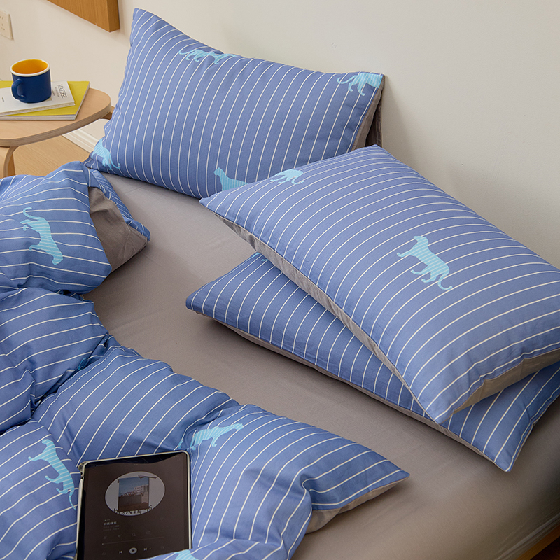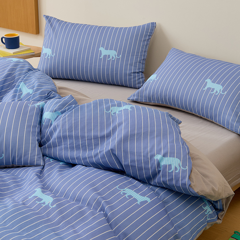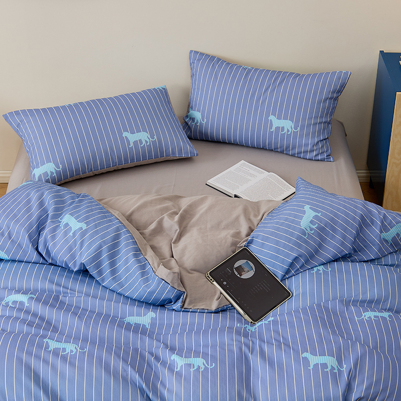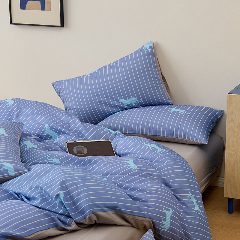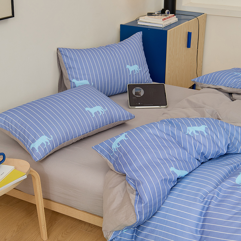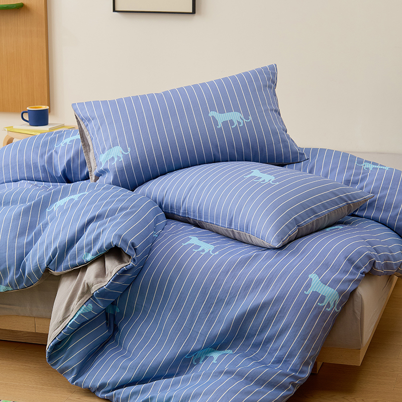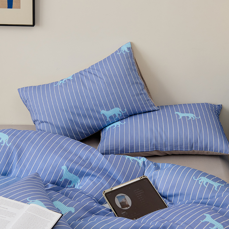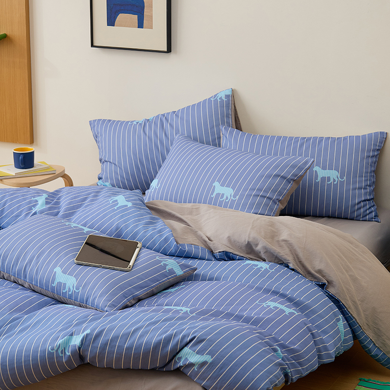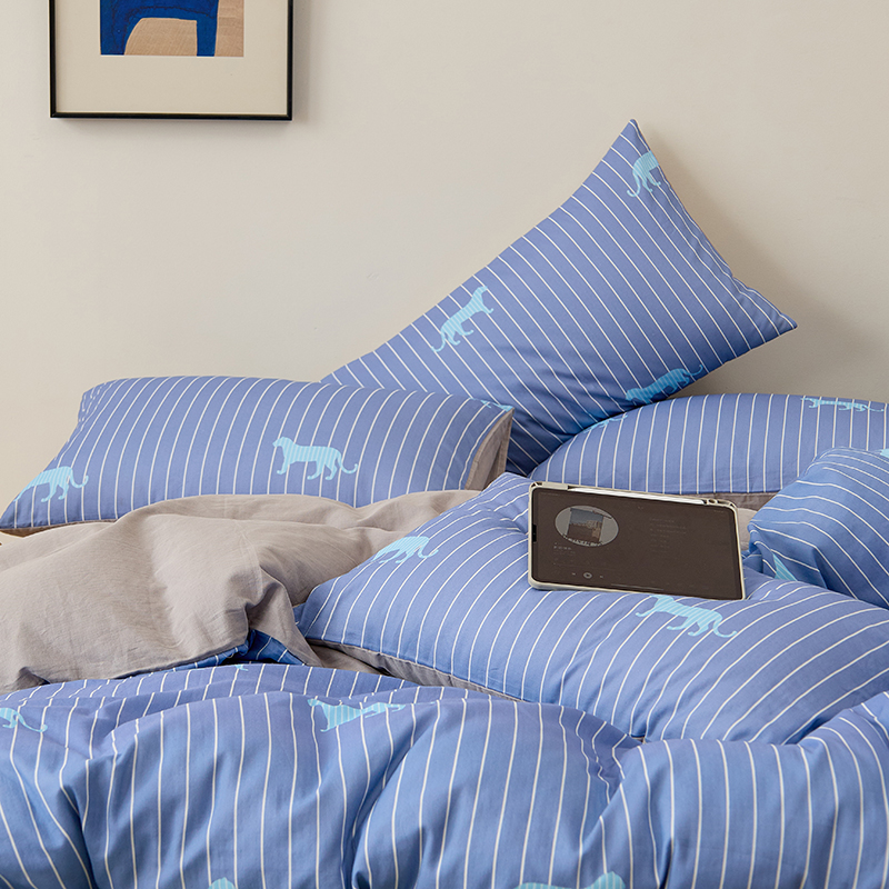 当前位置: 91家纺网 > 商品网购 > 床品套件 > 四件套 > 全棉普通四件套 > 8小时家纺 2024新款40s双层纱单品四件套系列-四件套 蓝色条纹豹子