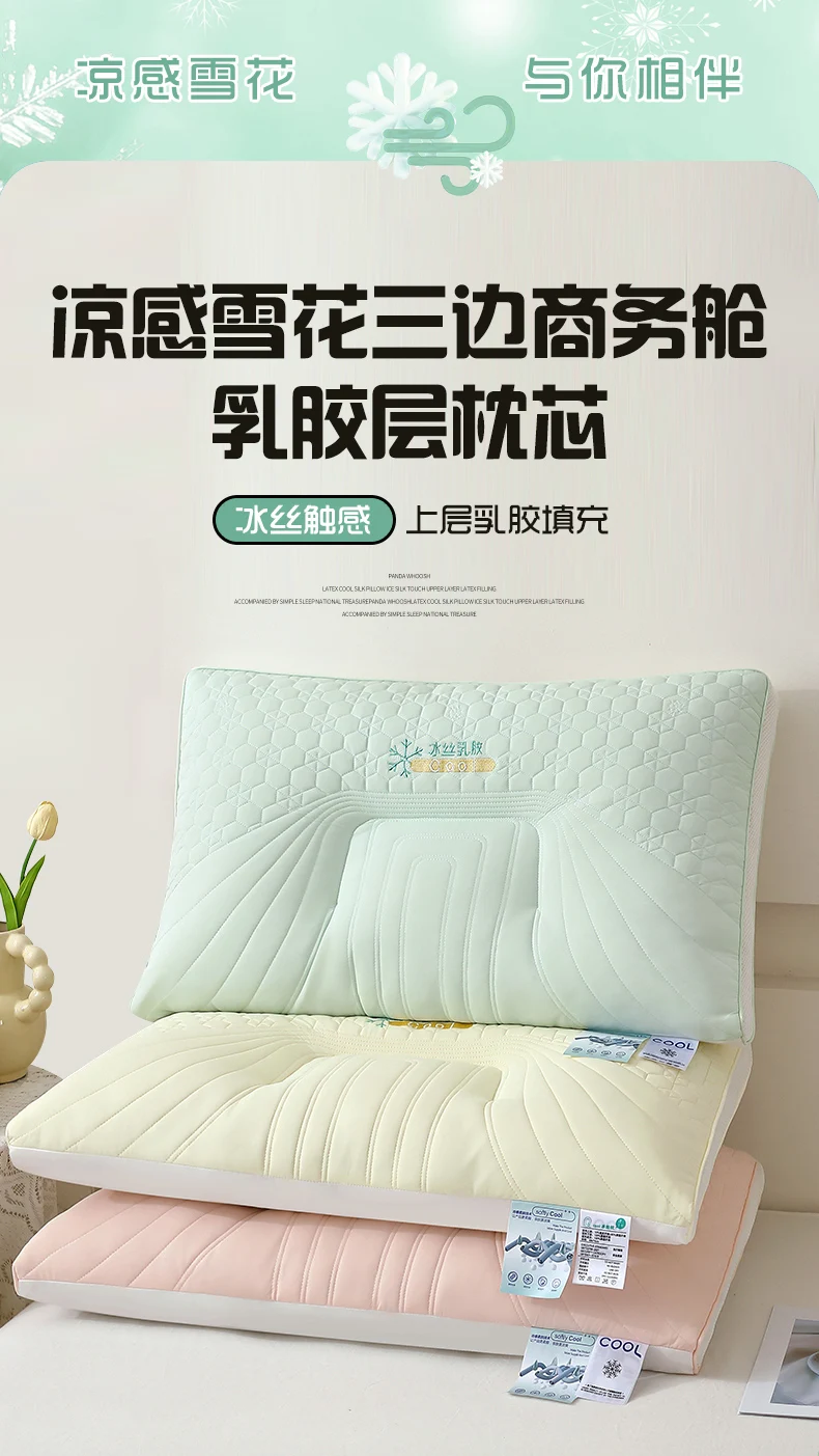 当前位置: 91家纺网 > 商品网购 > 枕头/枕芯/保健枕/颈椎枕 > 普通枕芯 > 佳尚枕芯 2025新款简约纯色冰丝乳胶枕枕头枕芯 浅绿-凉感雪花商务舱乳胶层枕48x74cm