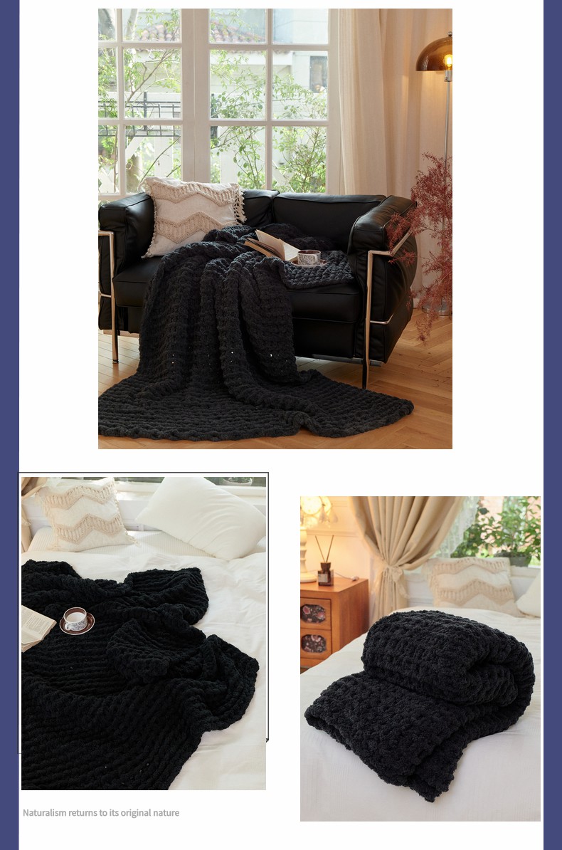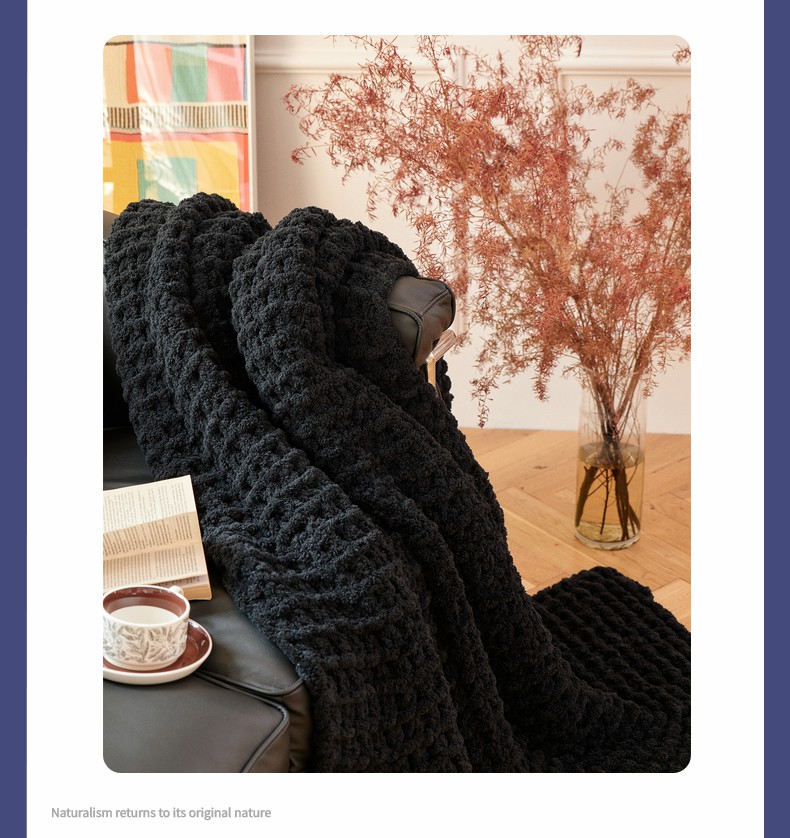 商品名称:暖绵绵 2025新款半边绒华夫格软糯针织毯-法格里(最低零售价147) 法格里-黑色