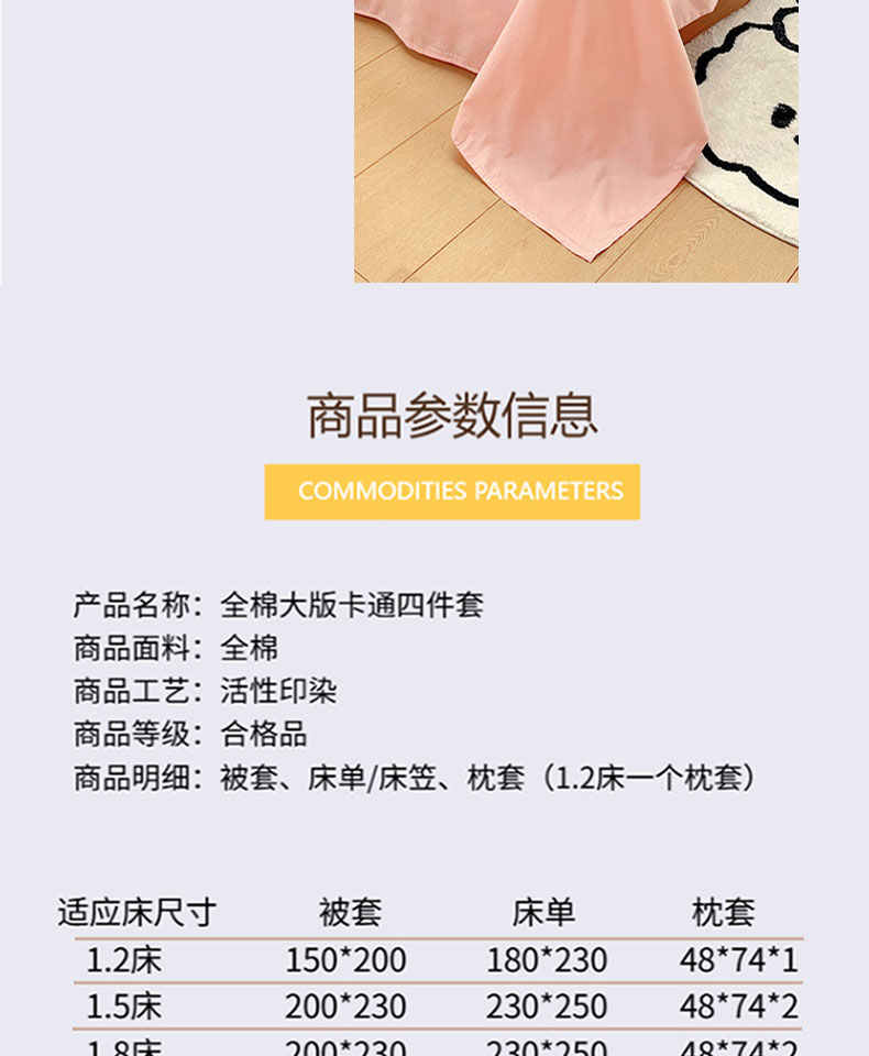商品名称:(总)浩诚 2024新款女孩款全棉大版卡通四件套