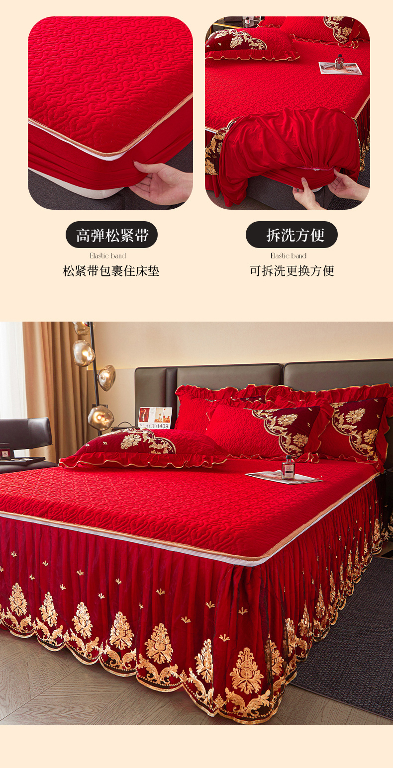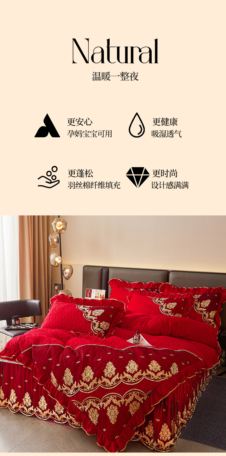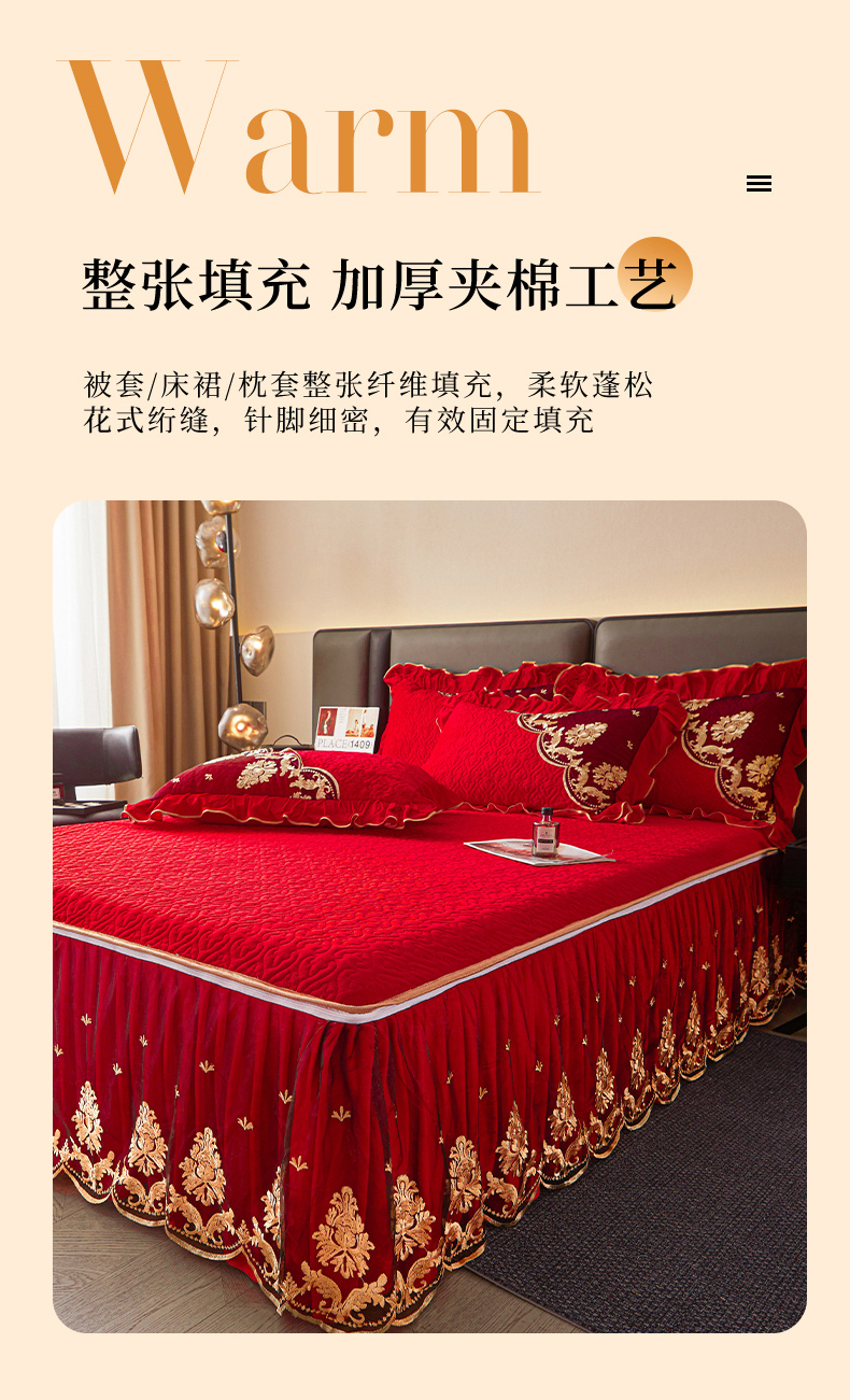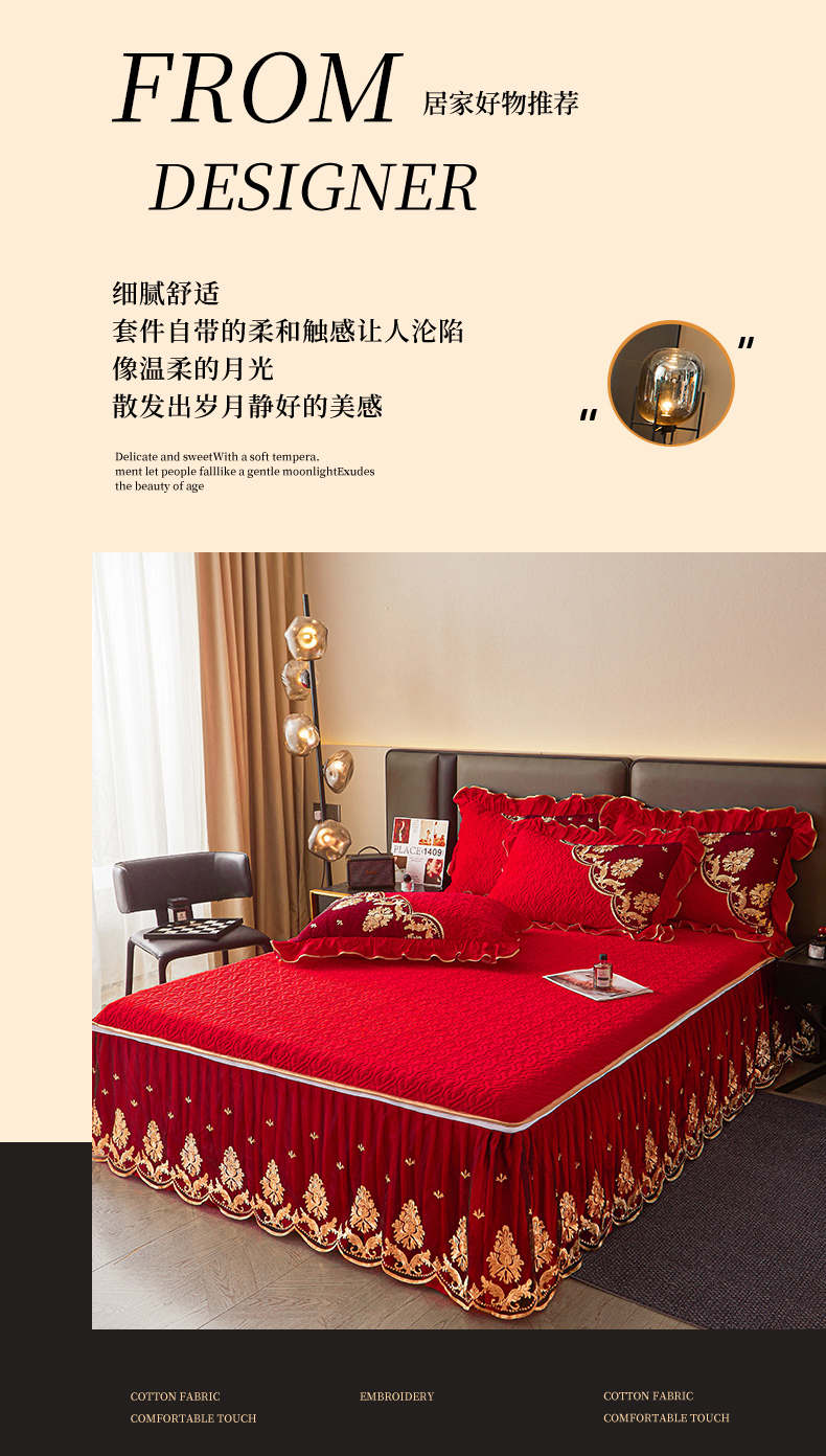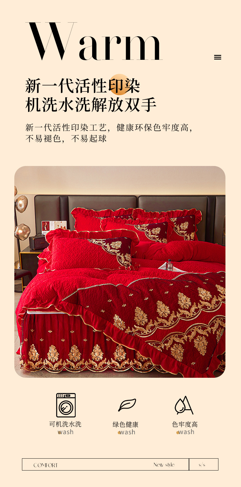 当前位置: 91家纺网 > 商品网购 > 床品套件 > 四件套 > 水晶绒四件套 > 罗艺轩 2024新款高克重水晶绒夹棉床裙四件套-欧典风尚 欧典风尚-喜庆红