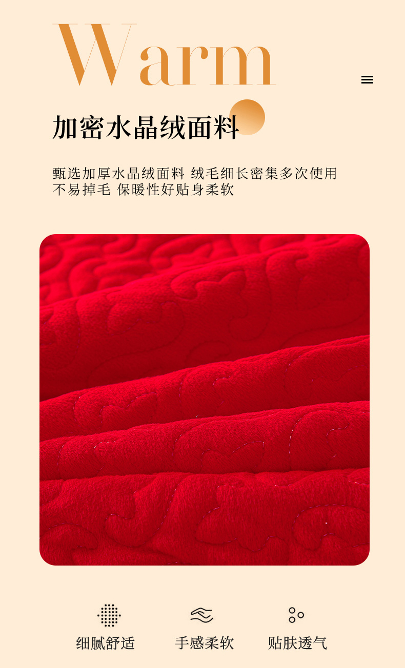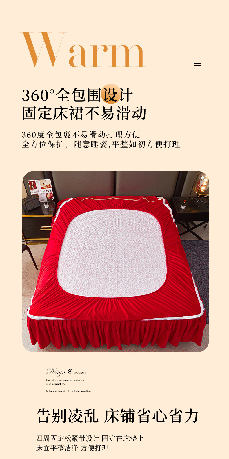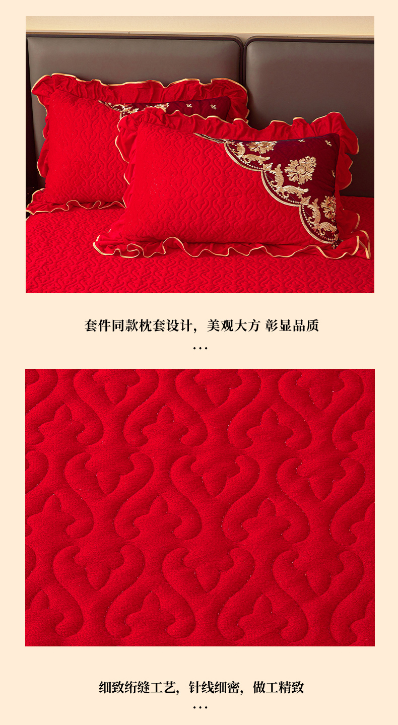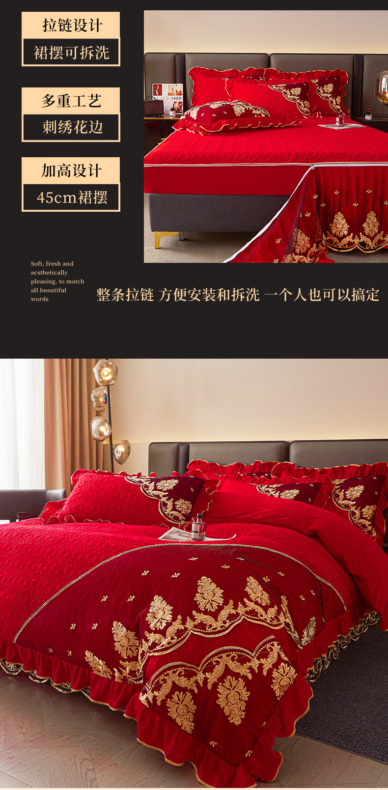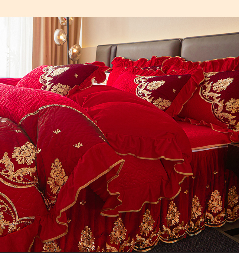 当前位置: 91家纺网 > 商品网购 > 床品套件 > 四件套 > 水晶绒四件套 > 罗艺轩 2024新款高克重水晶绒夹棉床裙四件套-欧典风尚 欧典风尚-喜庆红