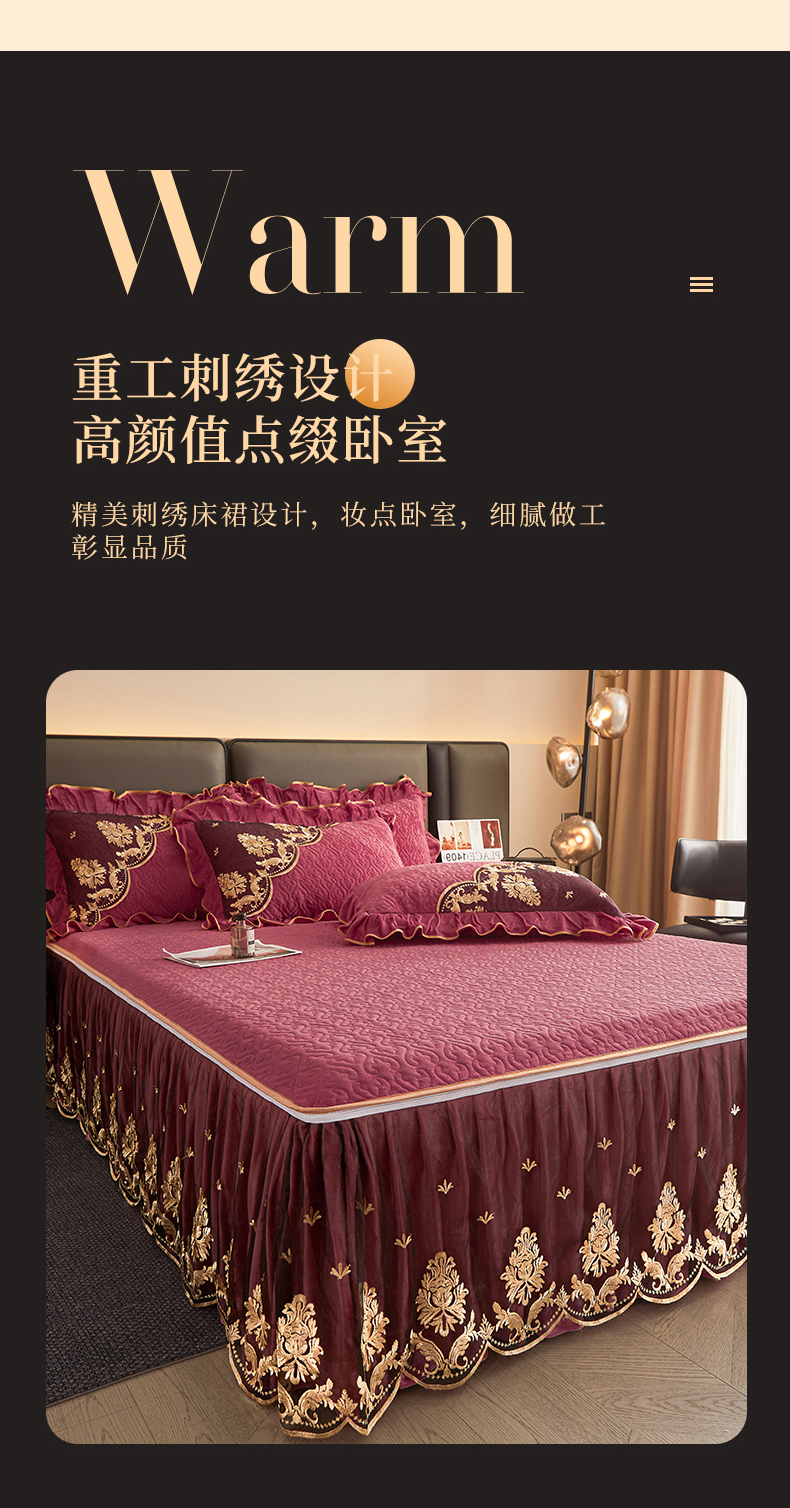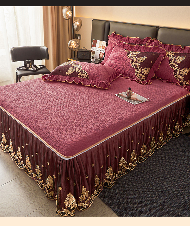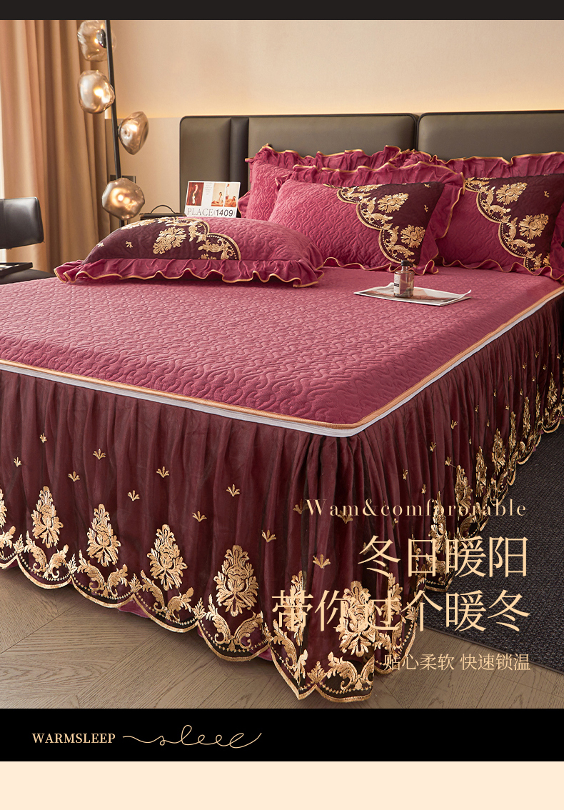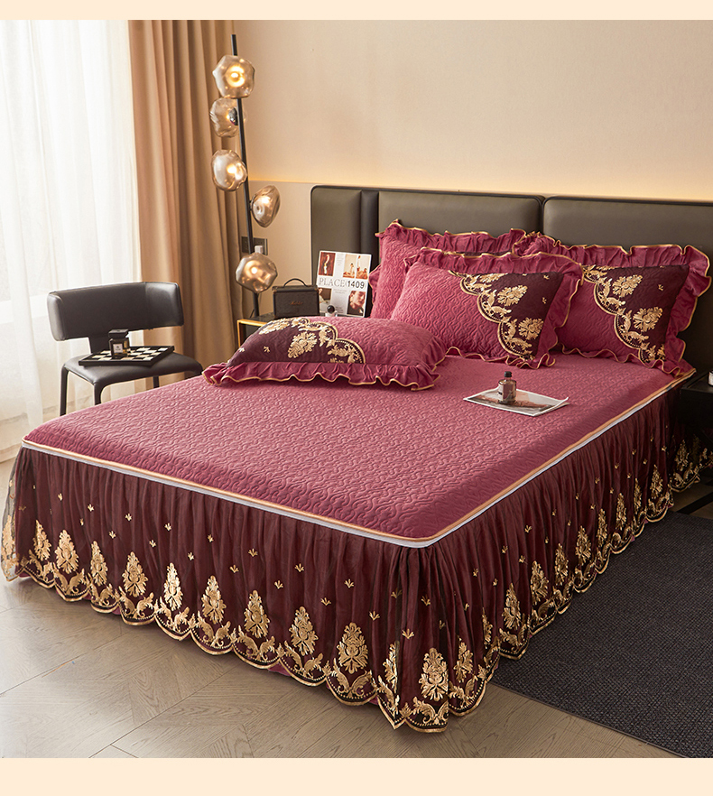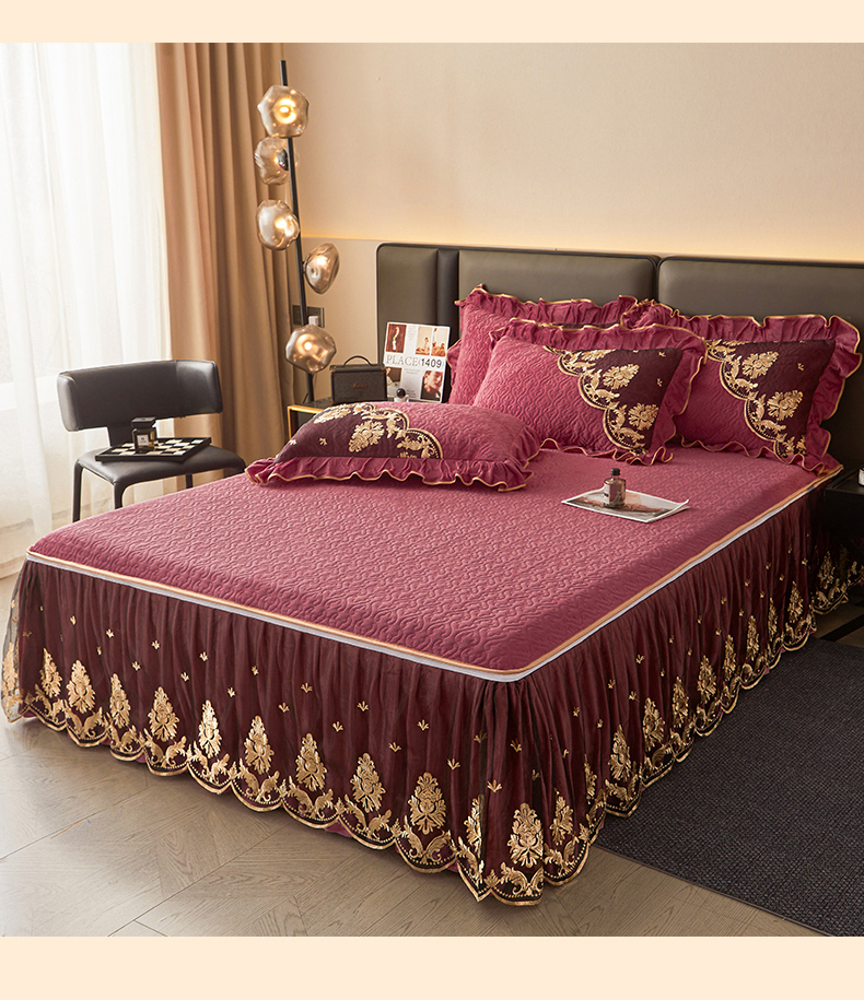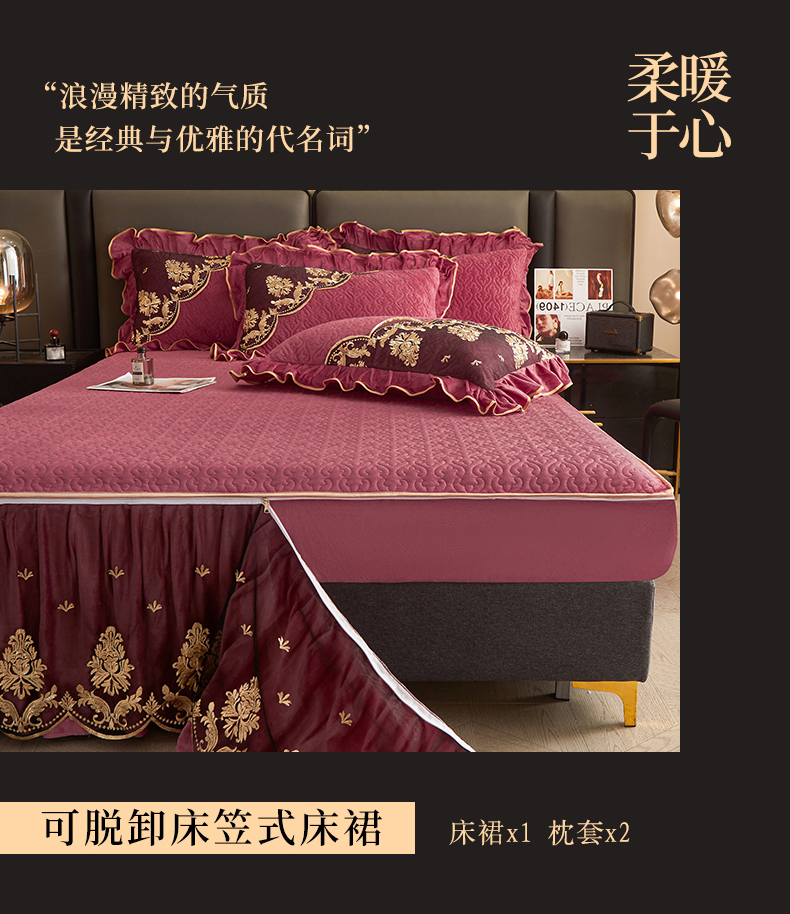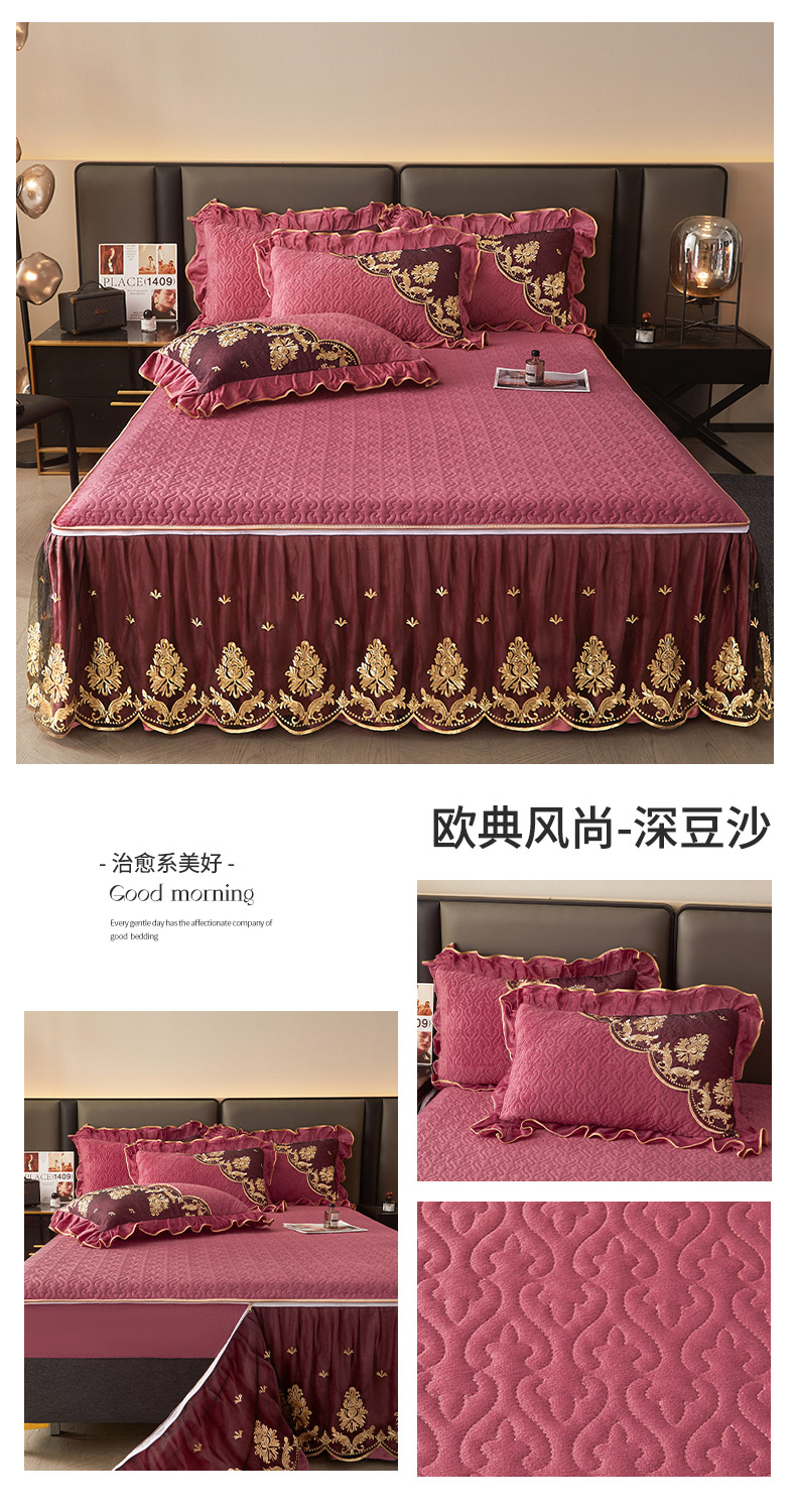 • 91家纺网 家纺一手货源 找家纺 罗艺轩 2024新款高克重水晶绒夹棉床裙三件套-欧典风尚 欧典风尚-深豆沙