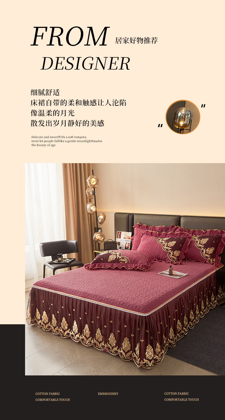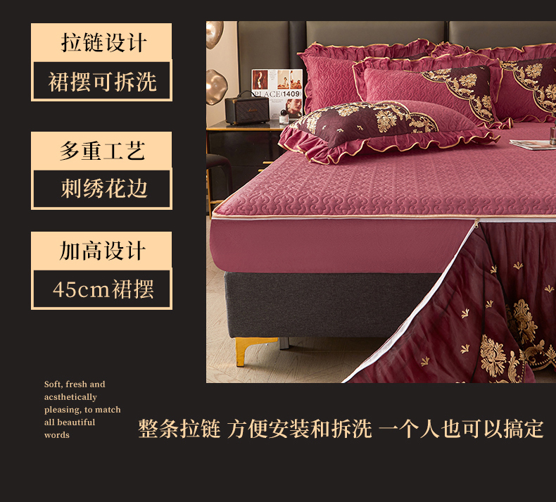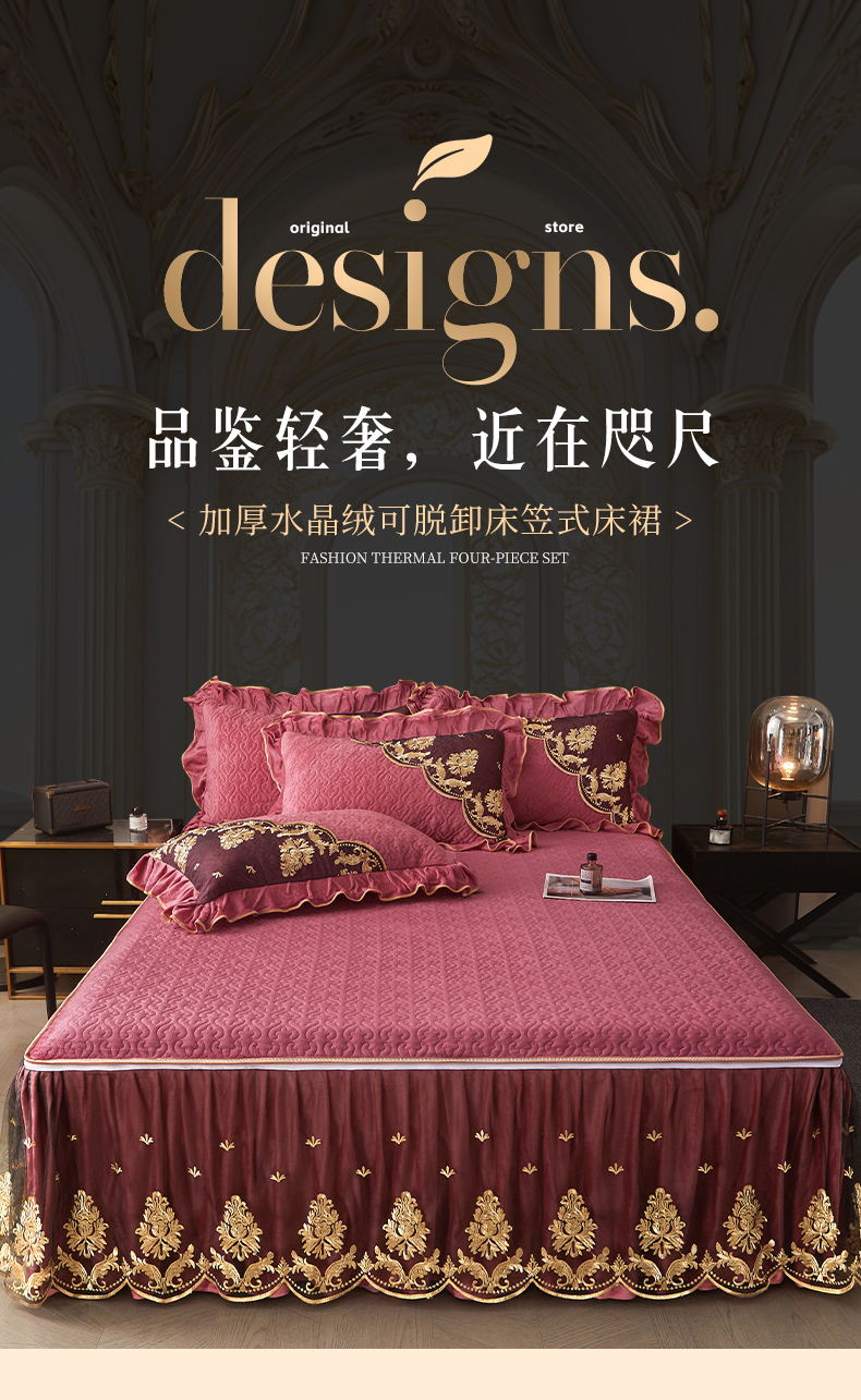 当前位置: 91家纺网 > 商品网购 > 床上用品 > 床裙 > 罗艺轩 2024新款高克重水晶绒夹棉床裙三件套-欧典风尚 欧典风尚-深豆沙