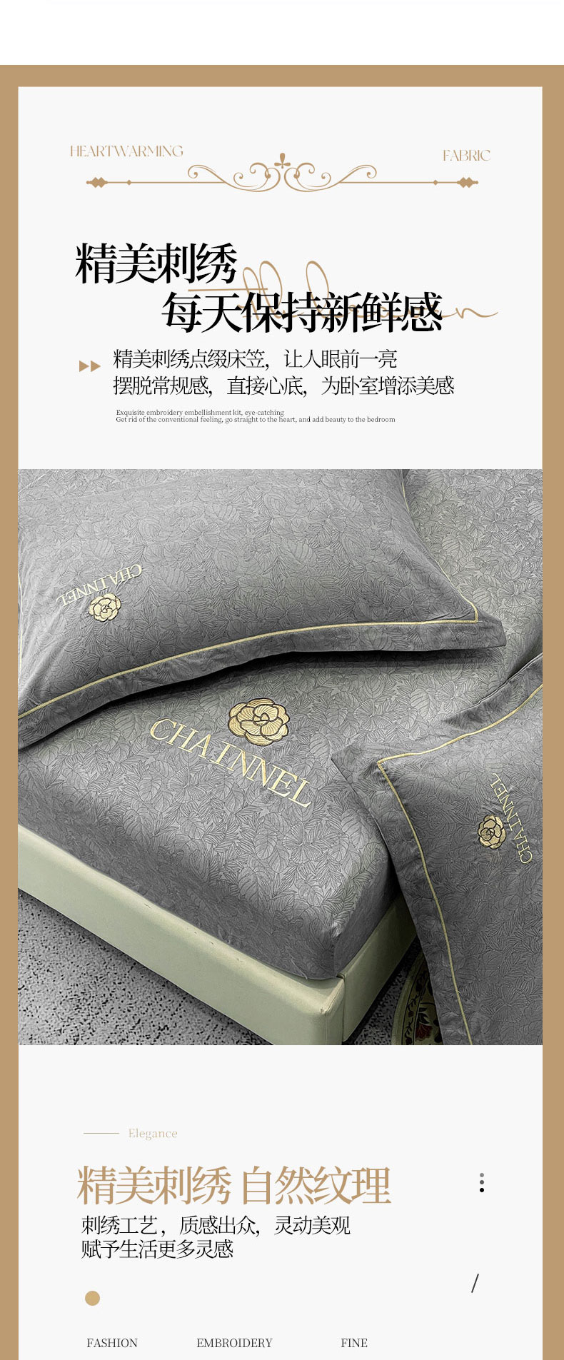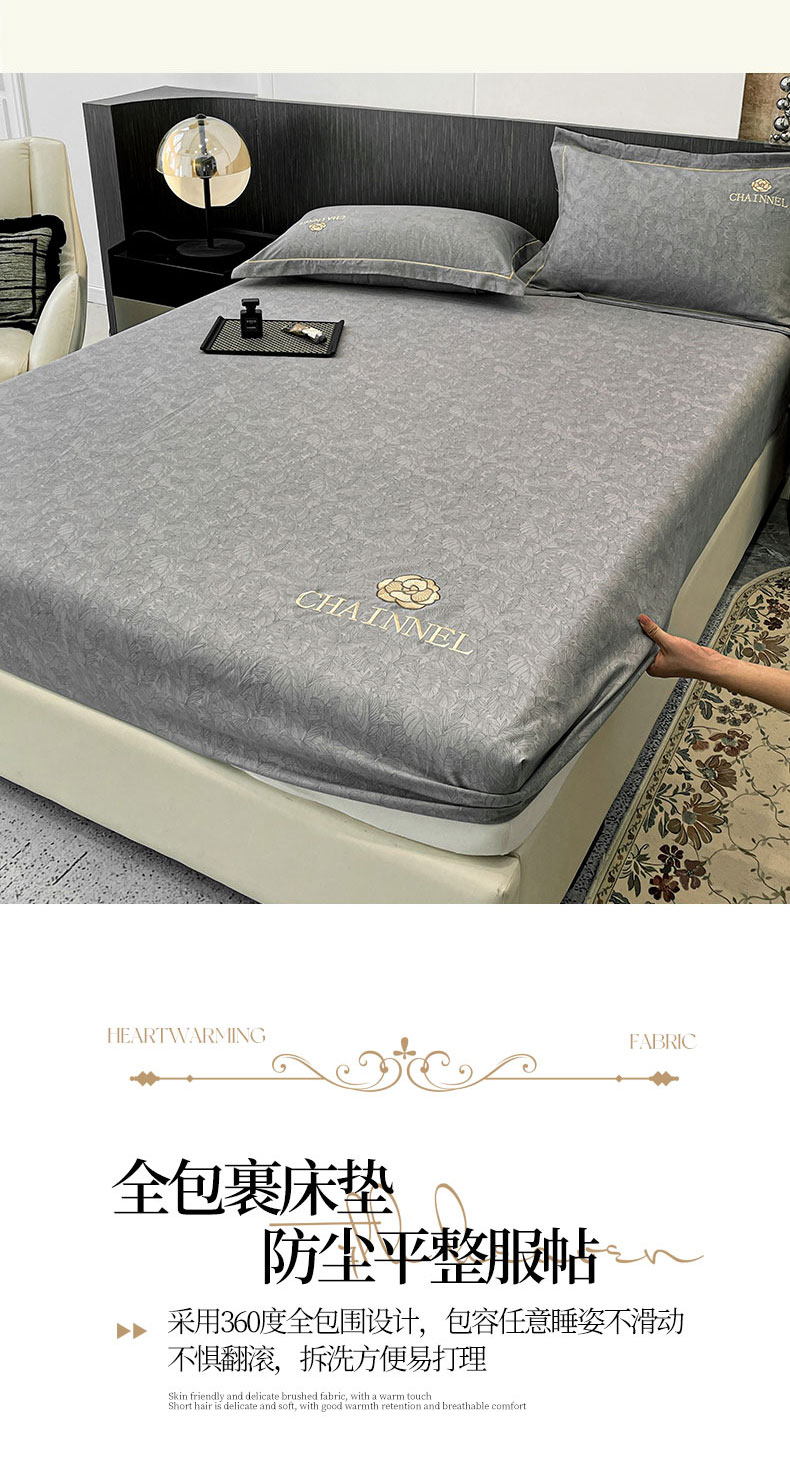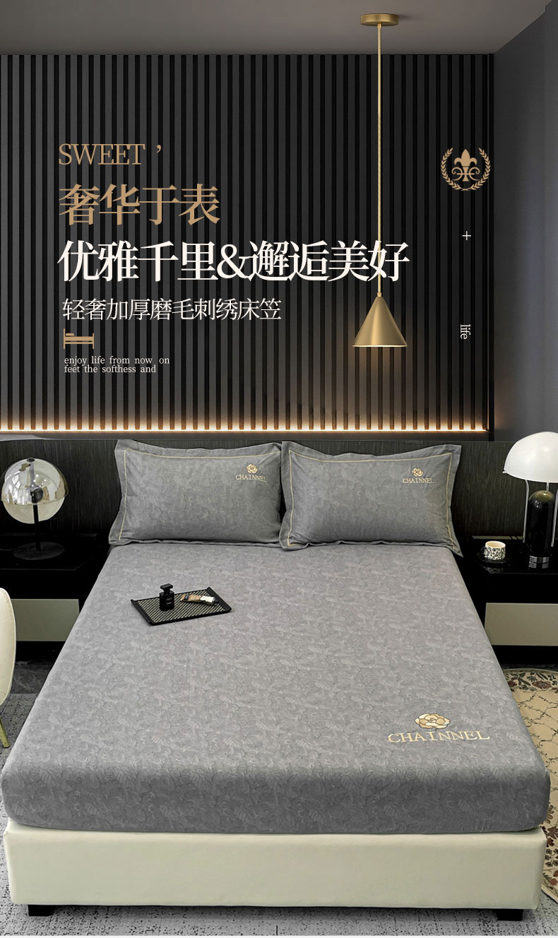 商品名称:灰鲸 2025新款秋冬加厚磨毛刺绣床笠 赛琳-纳多灰