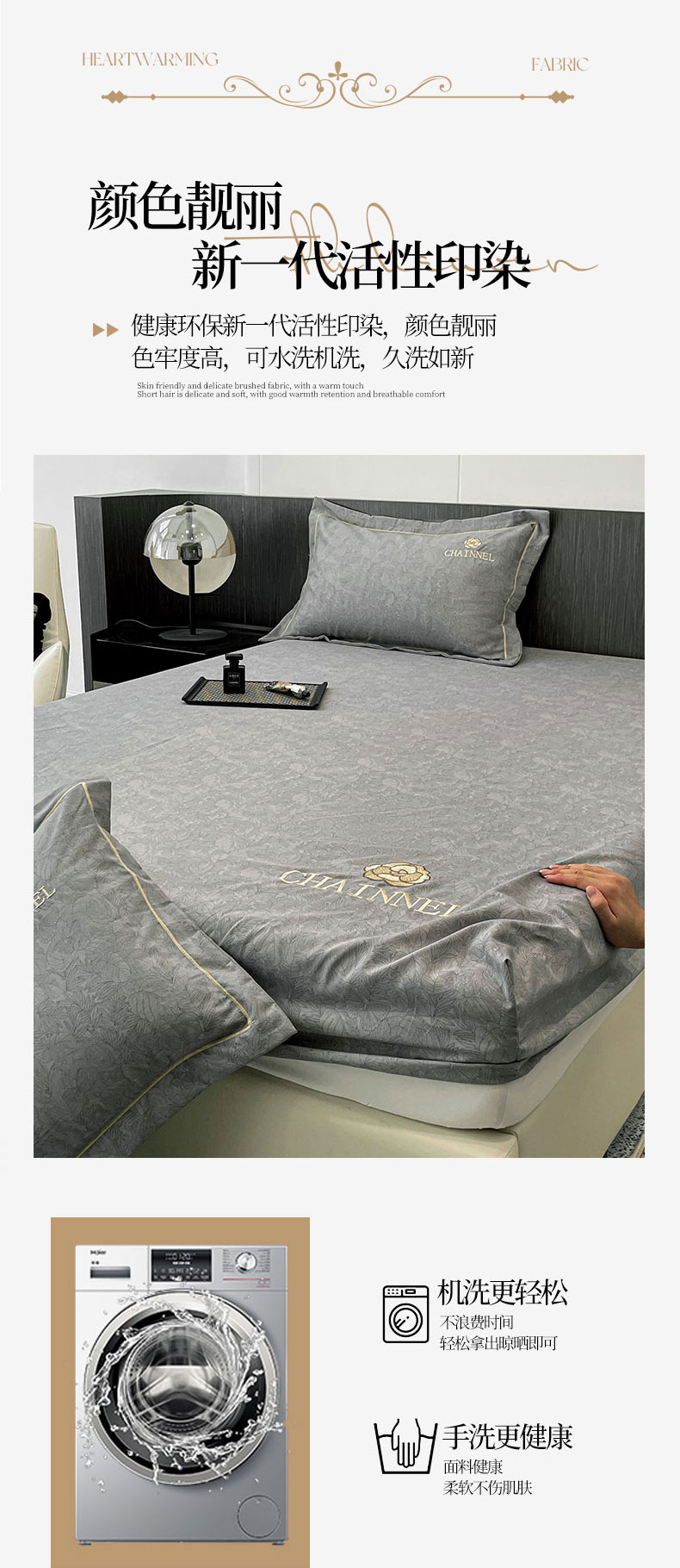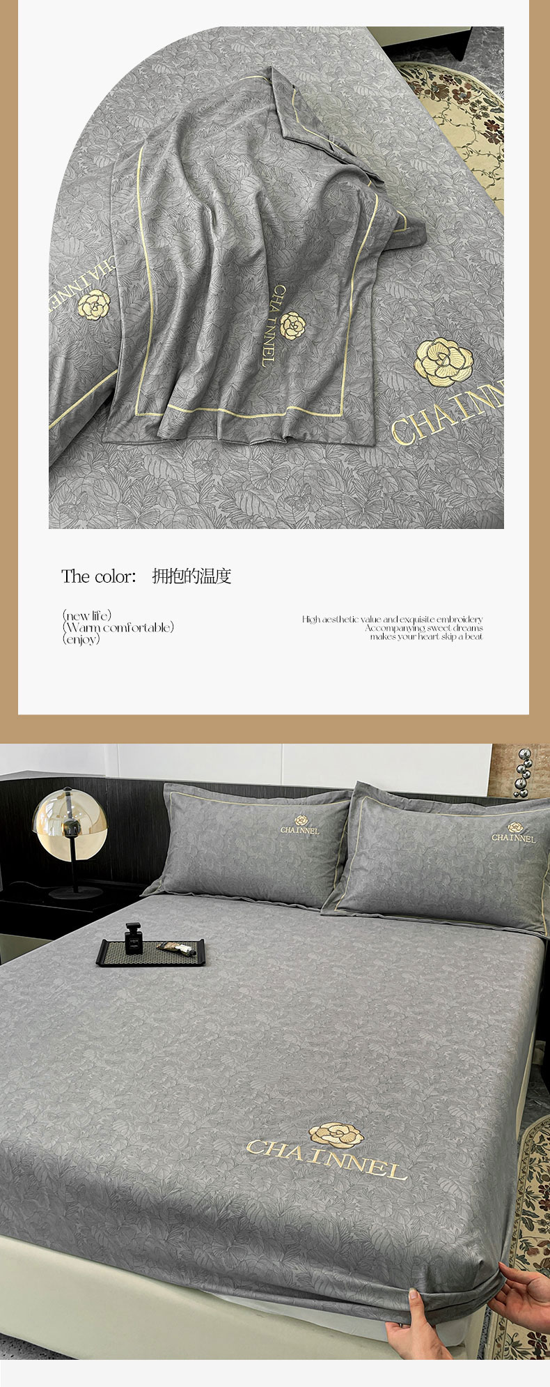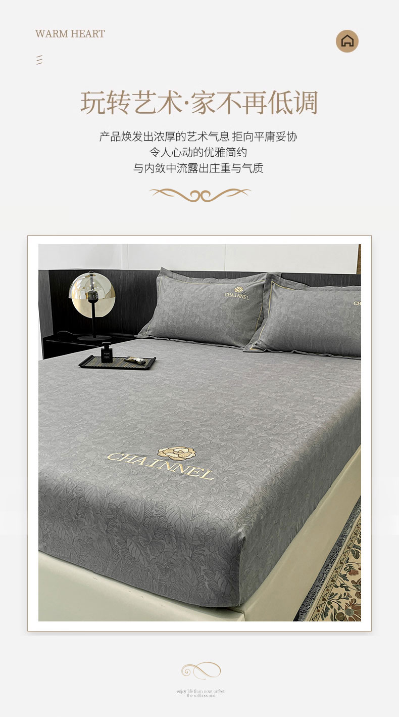 商品名称:灰鲸 2025新款秋冬加厚磨毛刺绣床笠 赛琳-纳多灰
