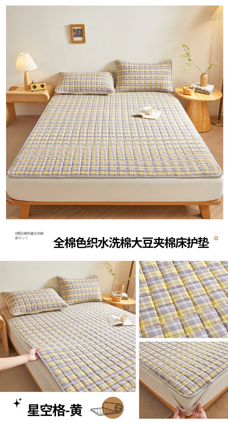 商品名称:伊人坊 2024新款全棉色织水洗棉床护垫 星空格-黄