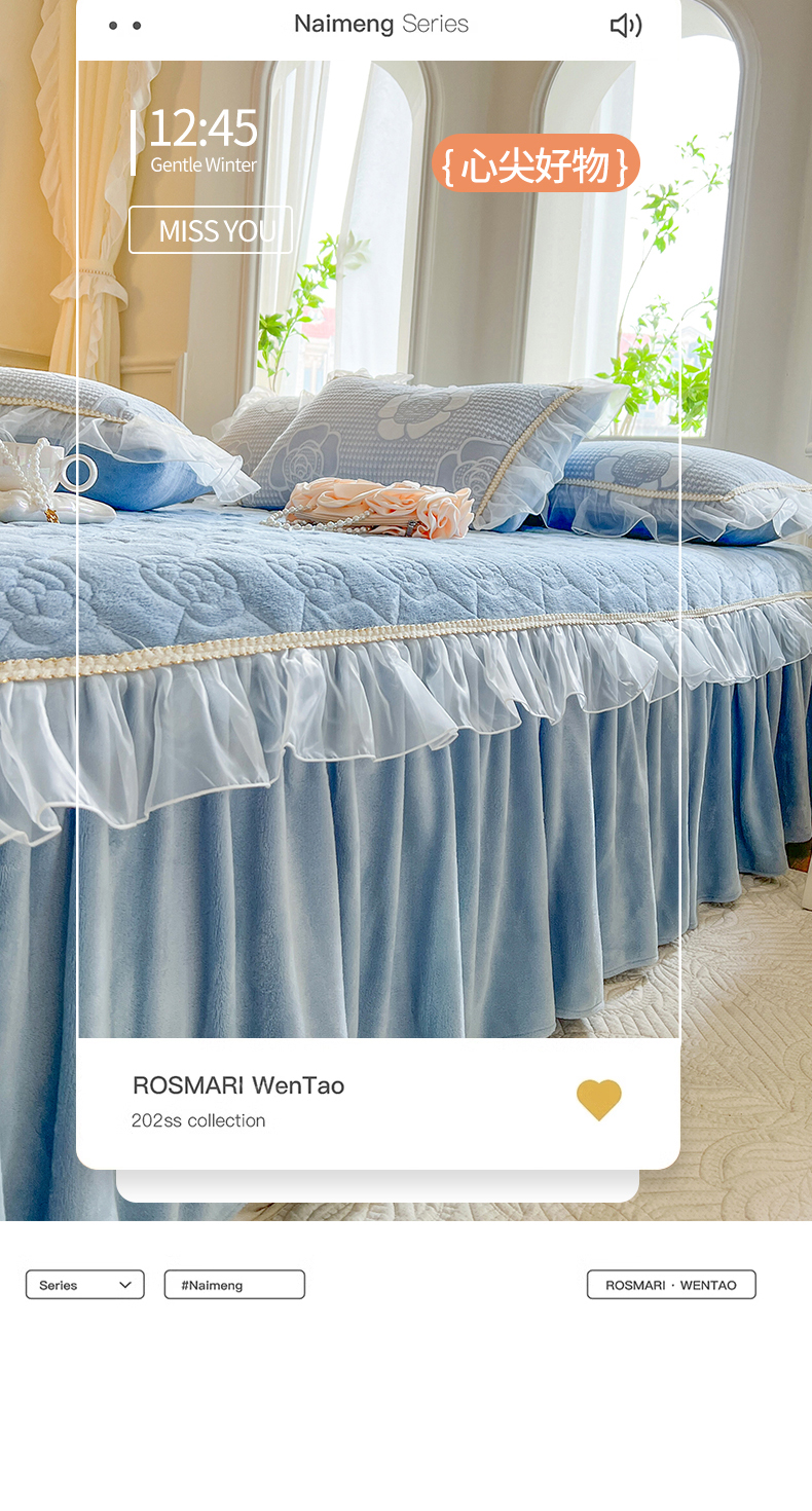 麒豆豆 2024新款雕花绒床裙三件套-浪漫印记 浪漫印记-天蓝