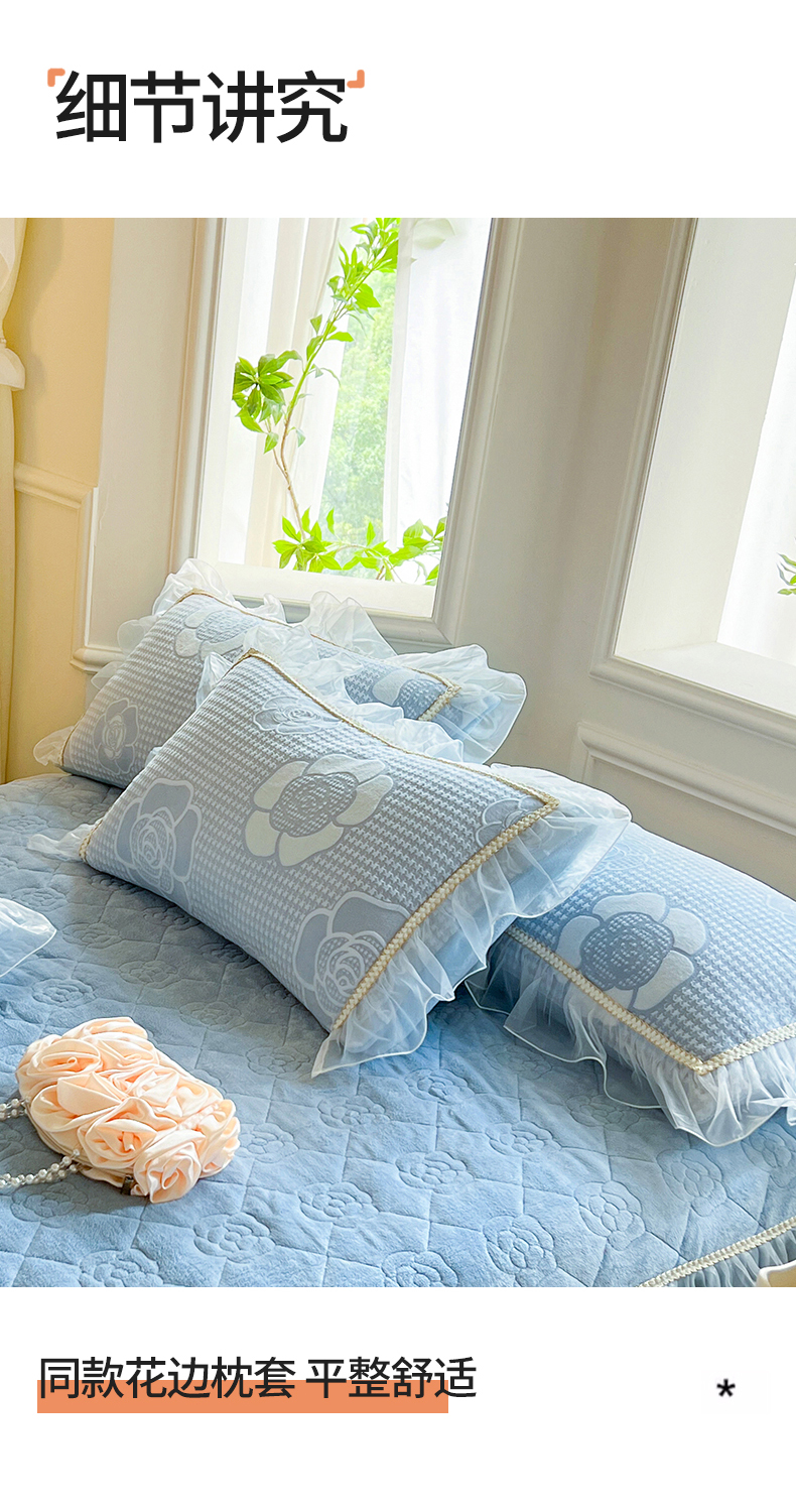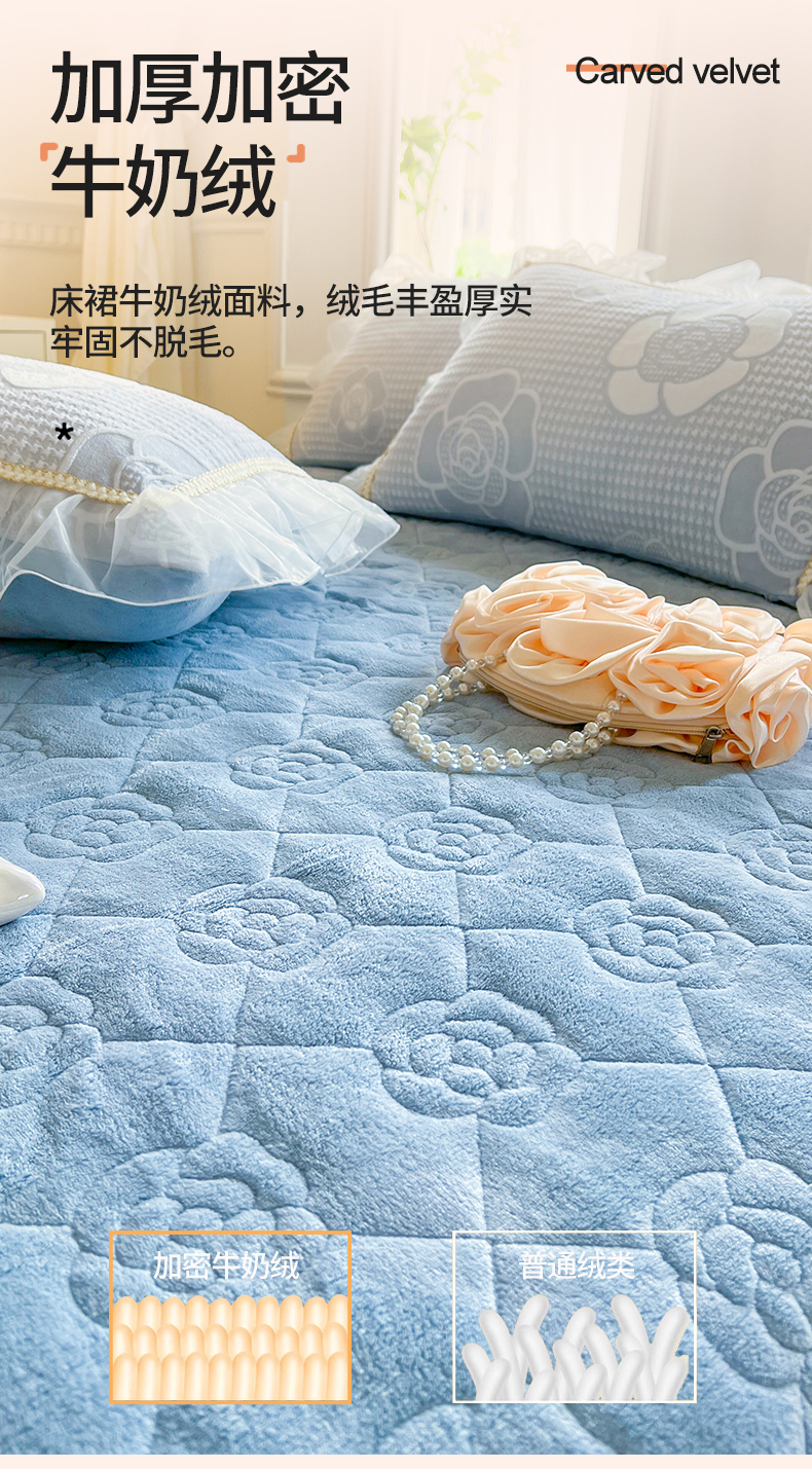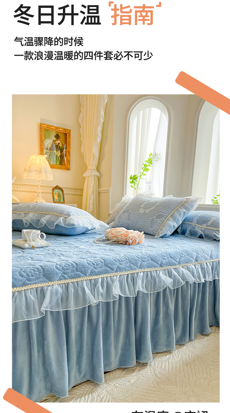 商品名称:麒豆豆 2024新款雕花绒床裙三件套-浪漫印记 浪漫印记-天蓝