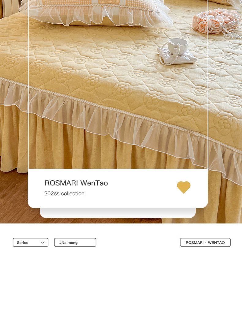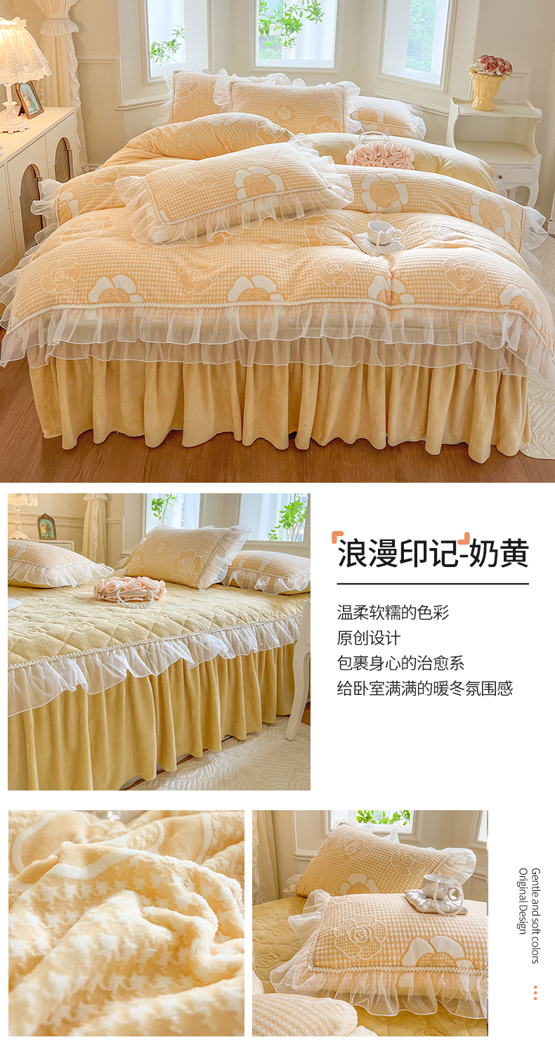 当前位置: 91家纺网 > 商品网购 > 床品套件 > 四件套 > 雕花绒四件套 > 网红馆(ck家纺) 2025新款雕花绒床裙四件套-浪漫印记 浪漫印记-奶黄
