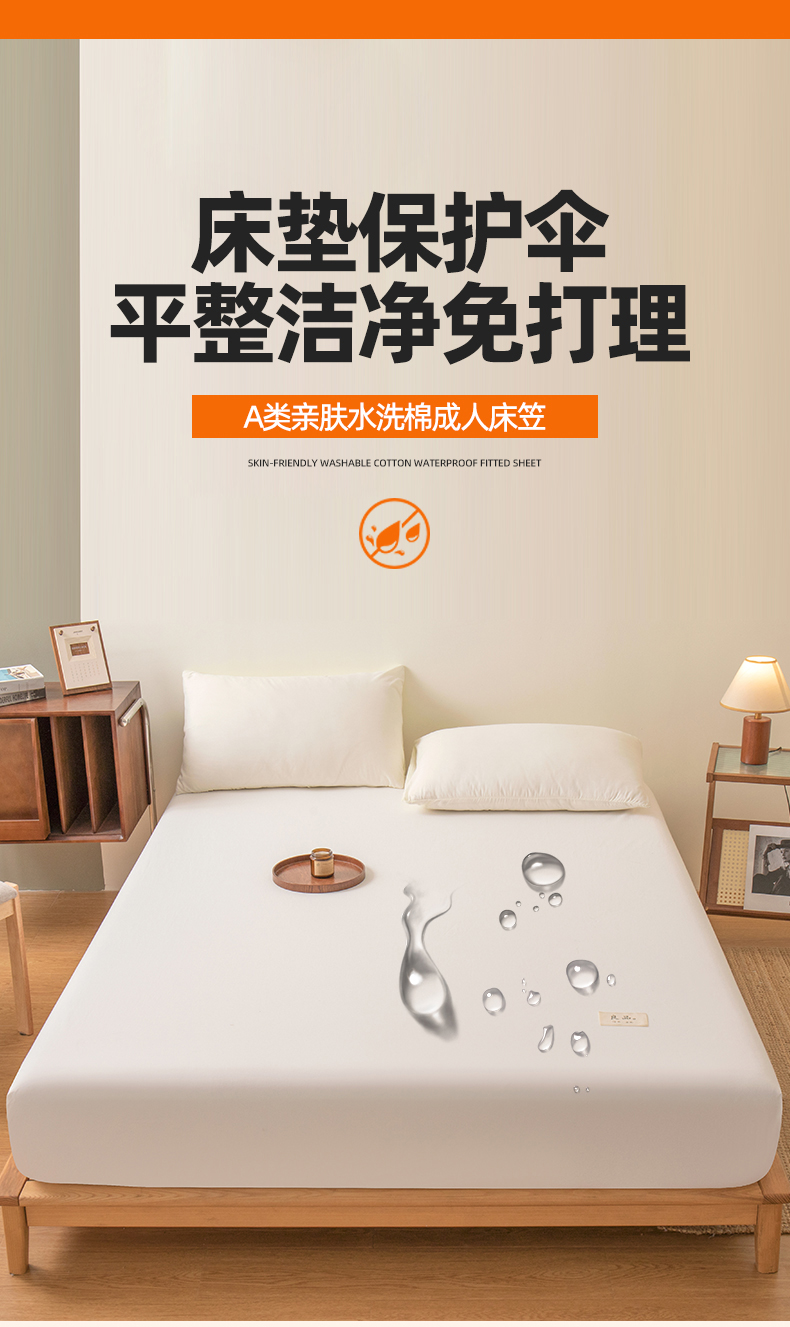 商品名称:暖季家纺 2025新款单层无印风防水床笠 防水-亮白