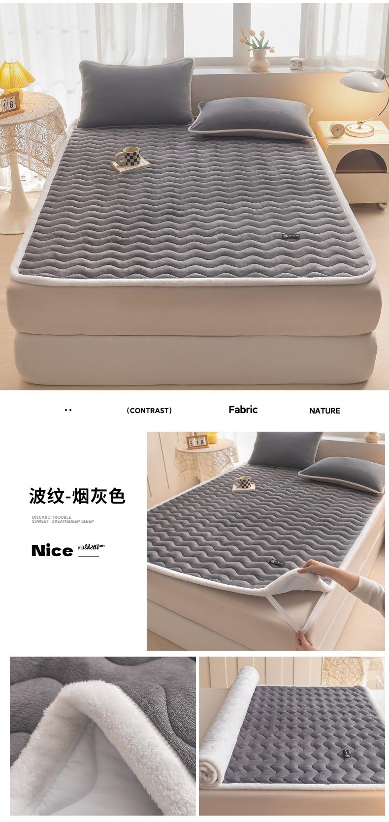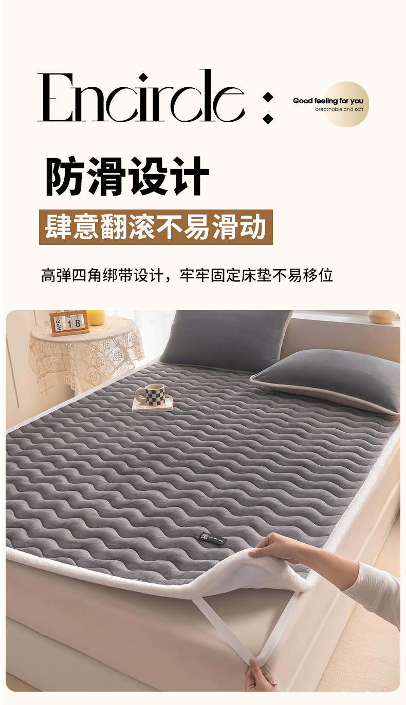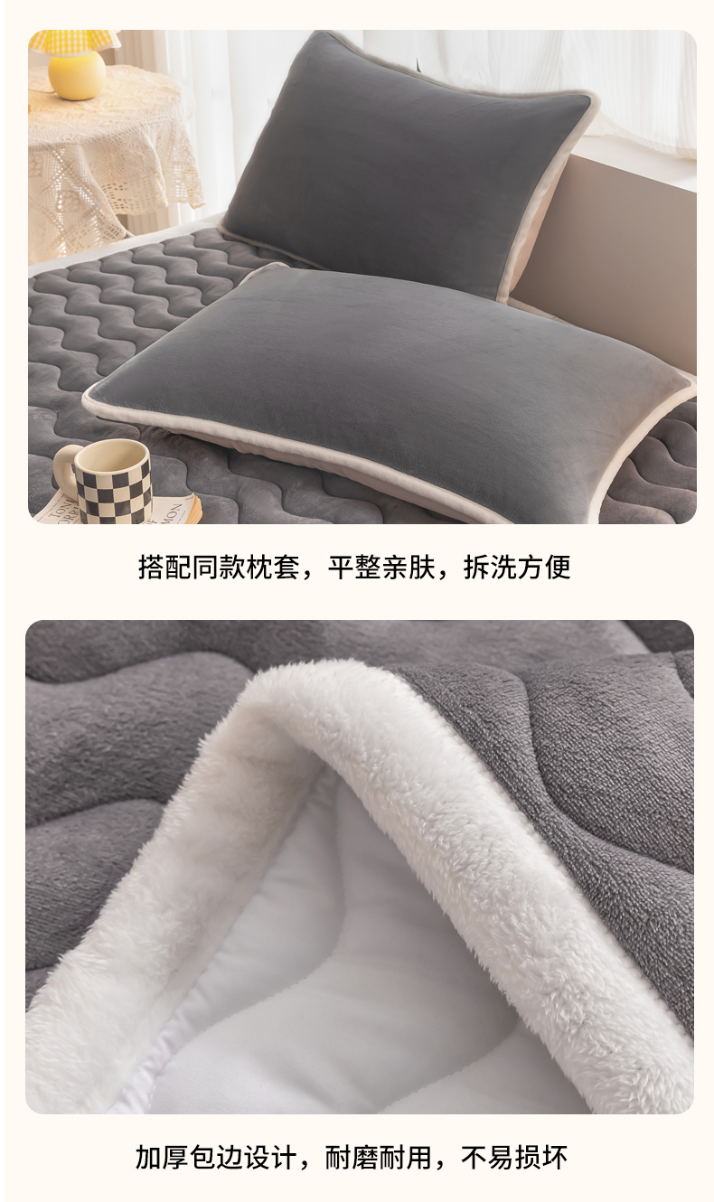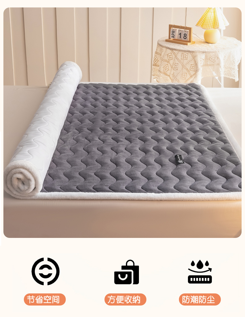 • 91家纺网 家纺一手货源 找家纺 恒尚居 2024秋冬新品牛奶绒床垫床褥垫加厚夹棉软床垫床褥子床护垫保护垫 波纹-绒垫【烟灰色】