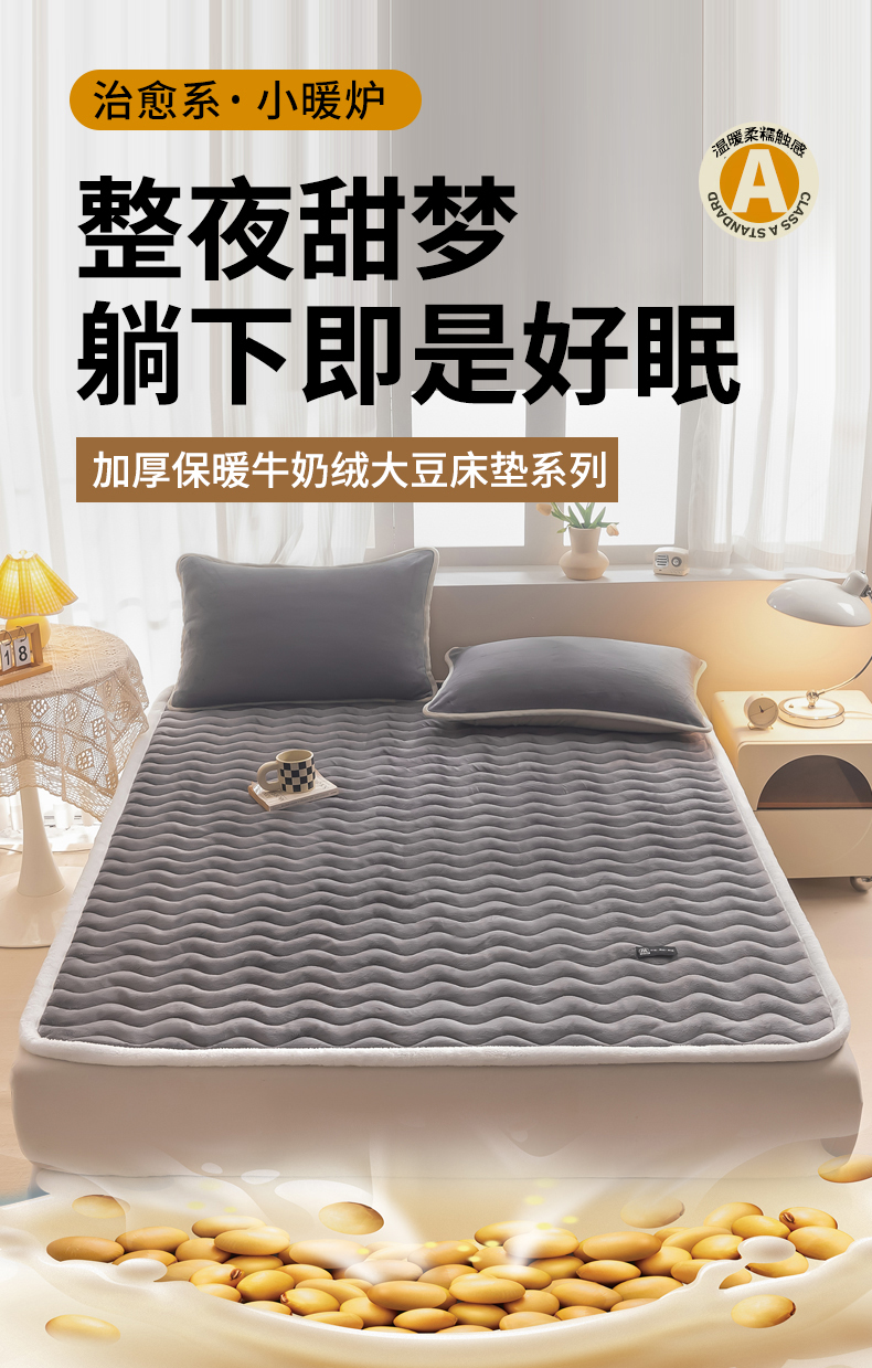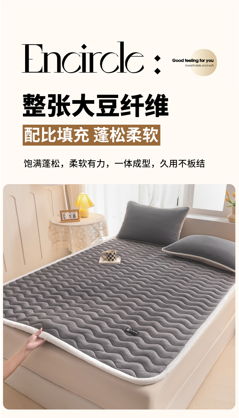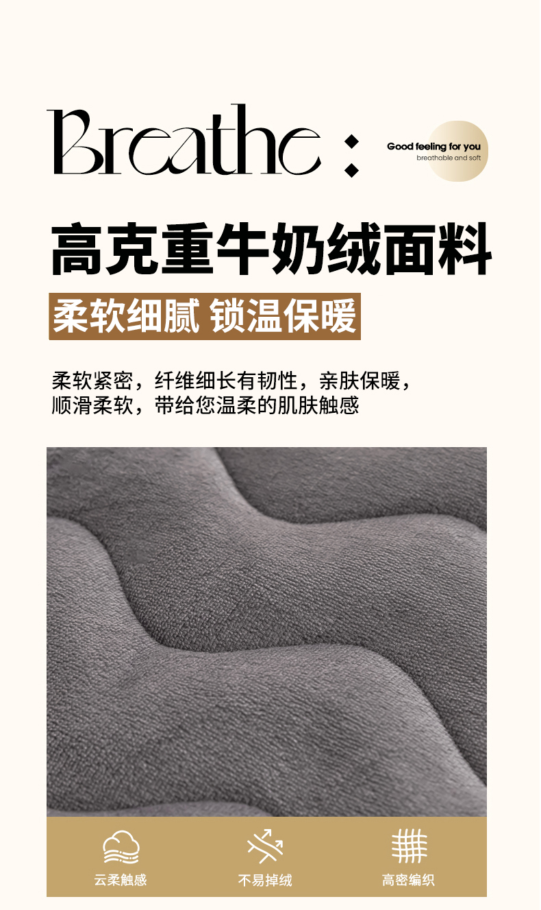 • 91家纺网 家纺一手货源 找家纺 恒尚居 2024秋冬新品牛奶绒床垫床褥垫加厚夹棉软床垫床褥子床护垫保护垫 波纹-绒垫【烟灰色】