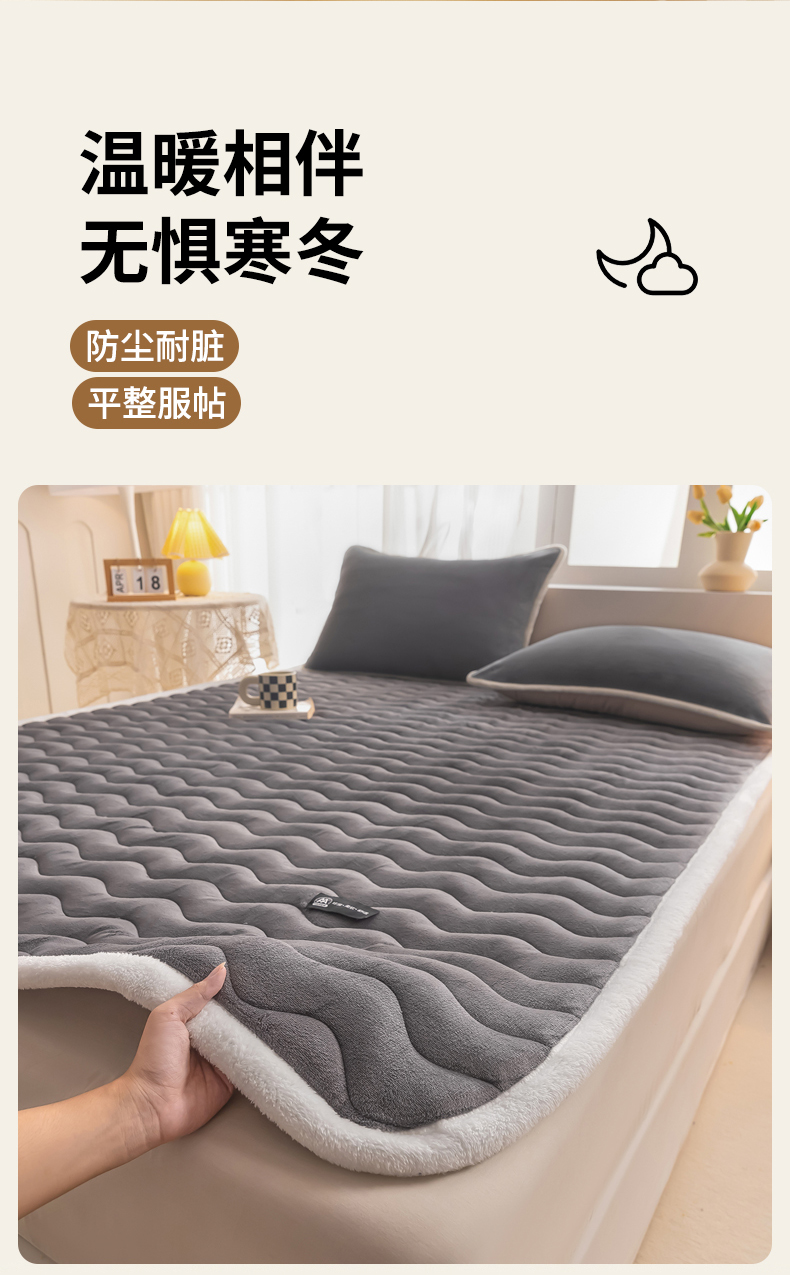 当前位置: 91家纺网 > 商品网购 > 床垫/床褥 > 恒尚居 2024秋冬新品牛奶绒床垫床褥垫加厚夹棉软床垫床褥子床护垫保护垫 波纹-绒垫【烟灰色】