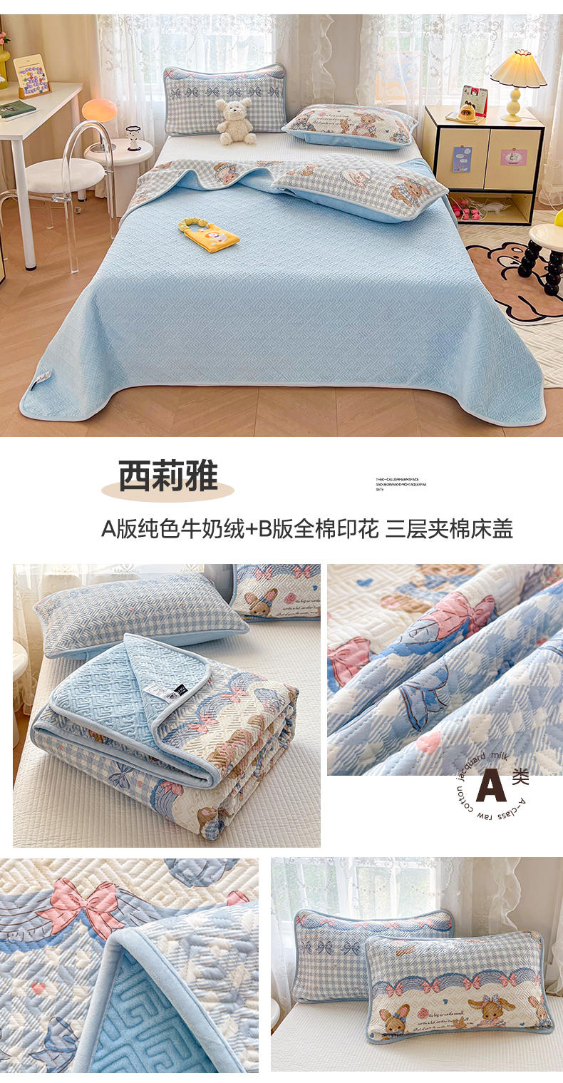 沐辰 2024新款A类A全棉B牛奶绒夹棉双面床盖 A全棉B牛奶绒-西莉雅