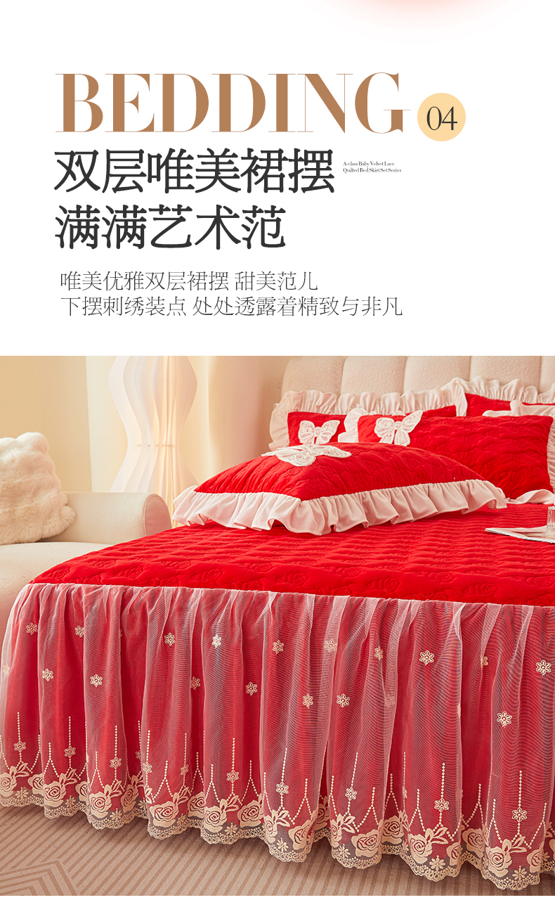 (总)情恒家纺 2025新款宝宝绒夹棉床裙三四五件套-玫瑰盛典,玫瑰盛典 香妃粉,玫瑰盛典 静夜灰,玫瑰盛典 明媚橙,玫瑰盛典 暖驼色,玫瑰盛典 深海蓝,玫瑰盛典 优雅紫,玫瑰盛典 云朵白,玫瑰盛典 中国红