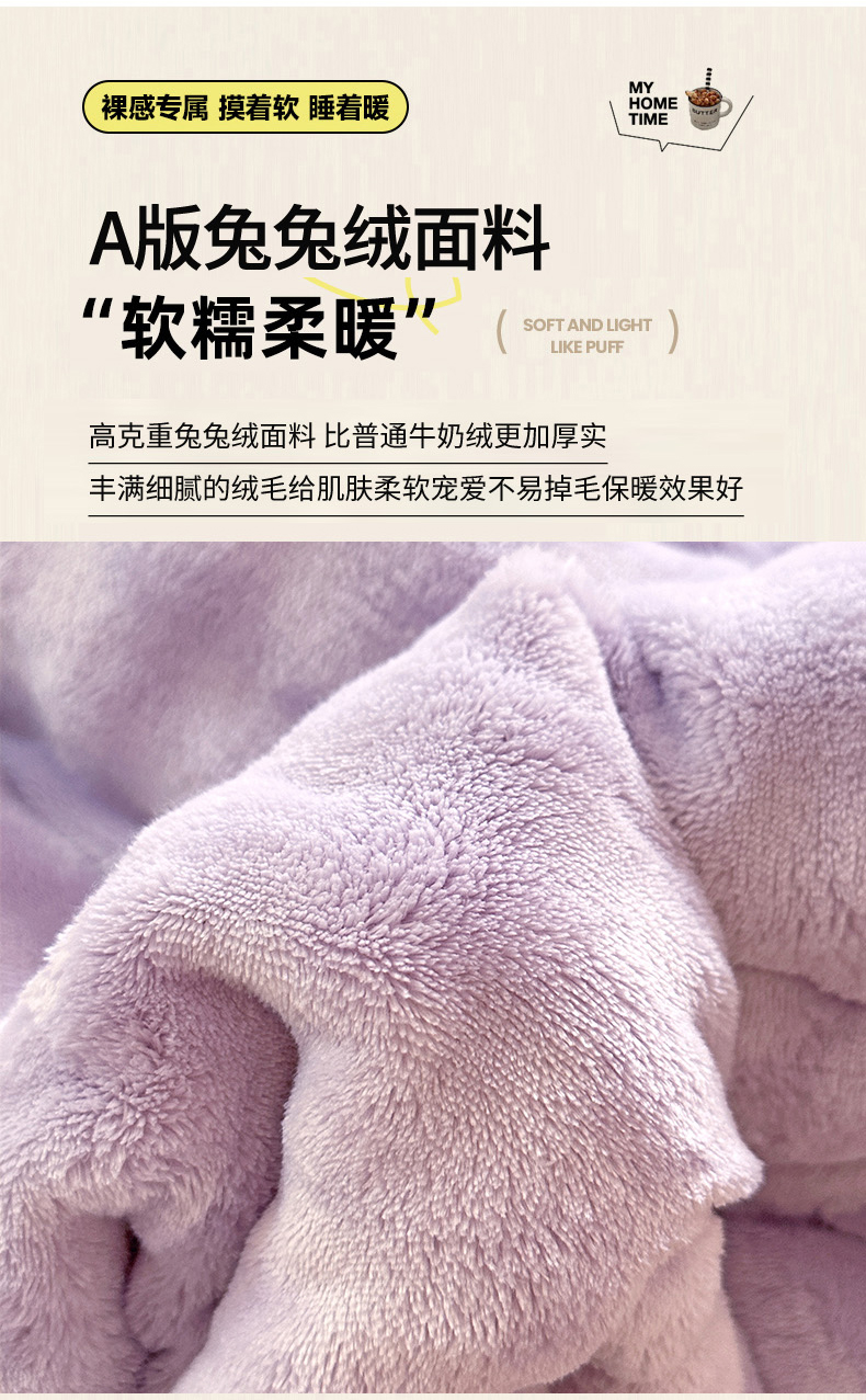 • 91家纺网 家纺一手货源 找家纺 优迈 2024新款兔兔绒豆豆被冬被子被芯 紫霞仙子