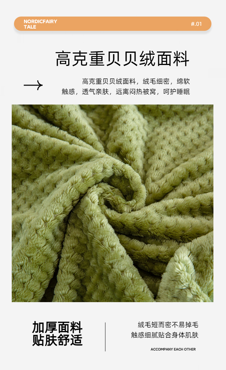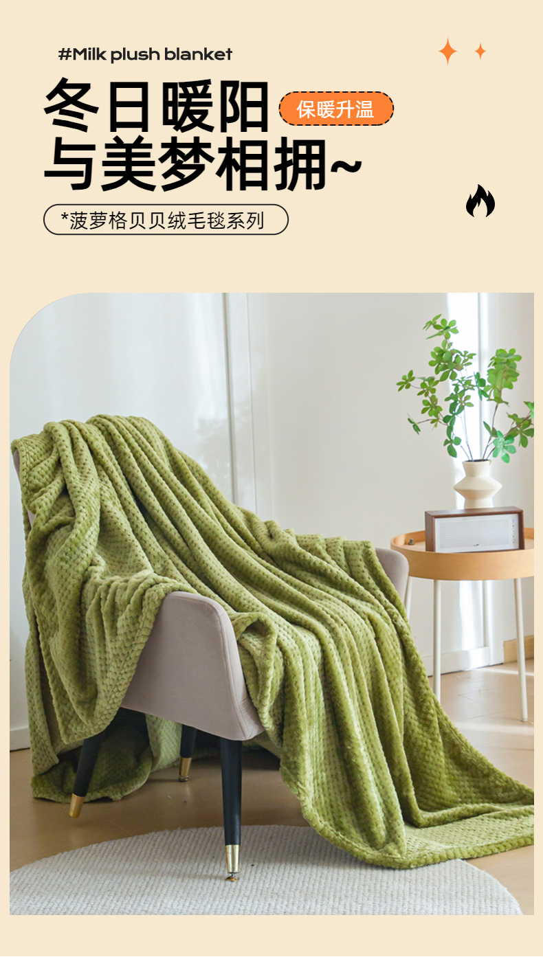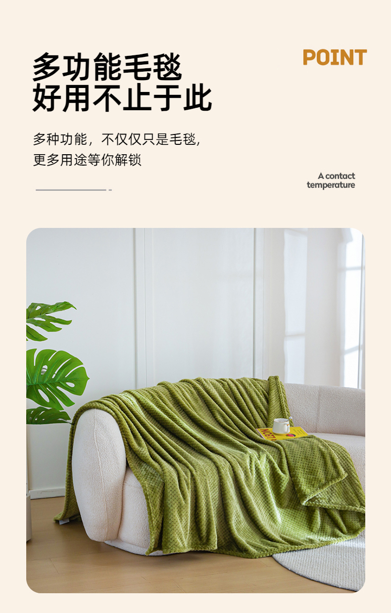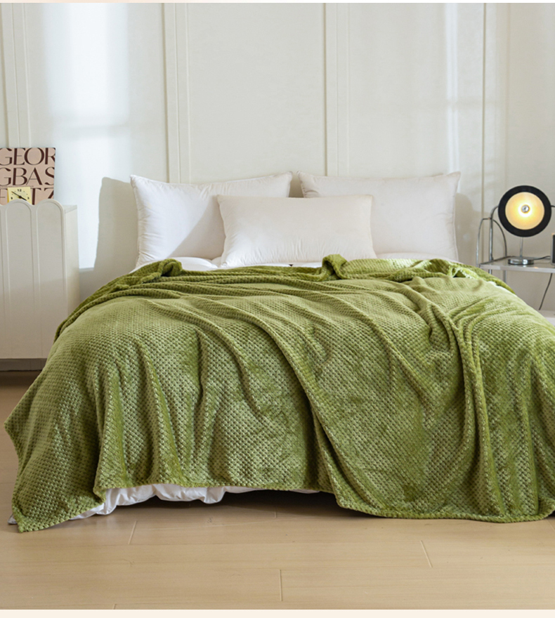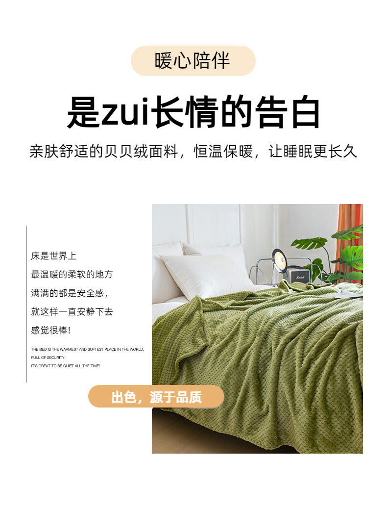 商品名称:卡琪曼 2024新款保暖菠萝格贝贝绒毛毯毯子 抹茶绿
