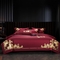 缔缦 2024新款定织新布种S140系列刺绣拼角工艺四件套-威廉皇室 威廉皇室 酒红