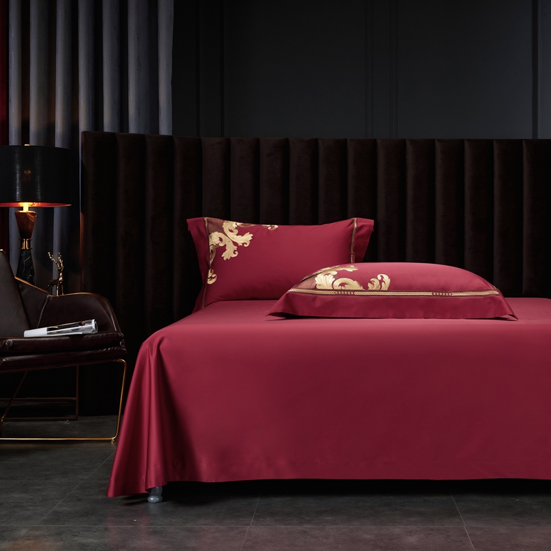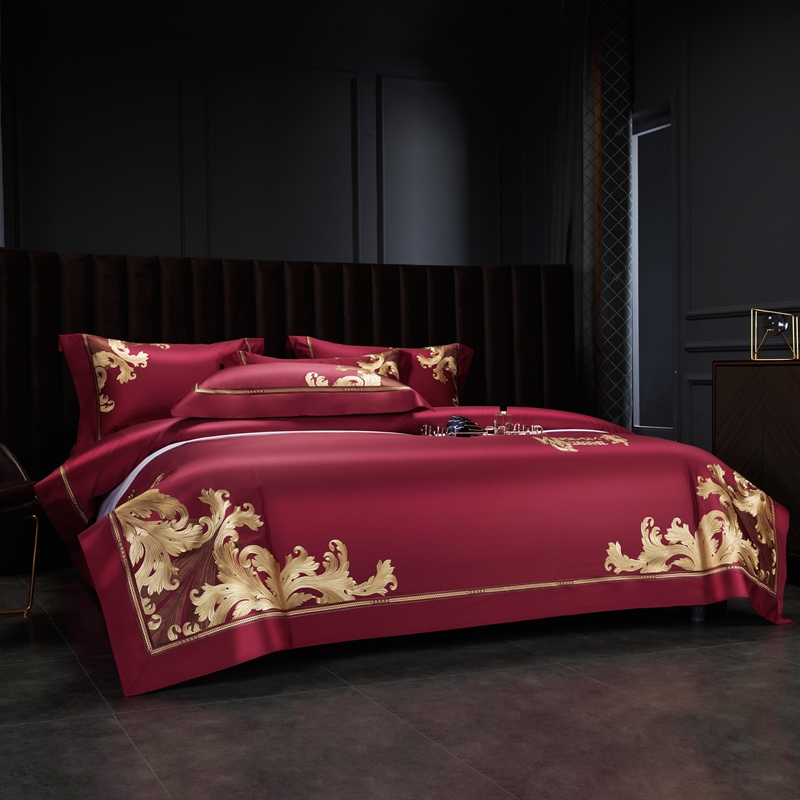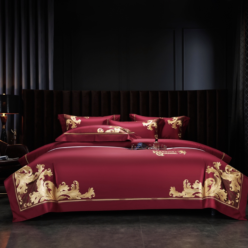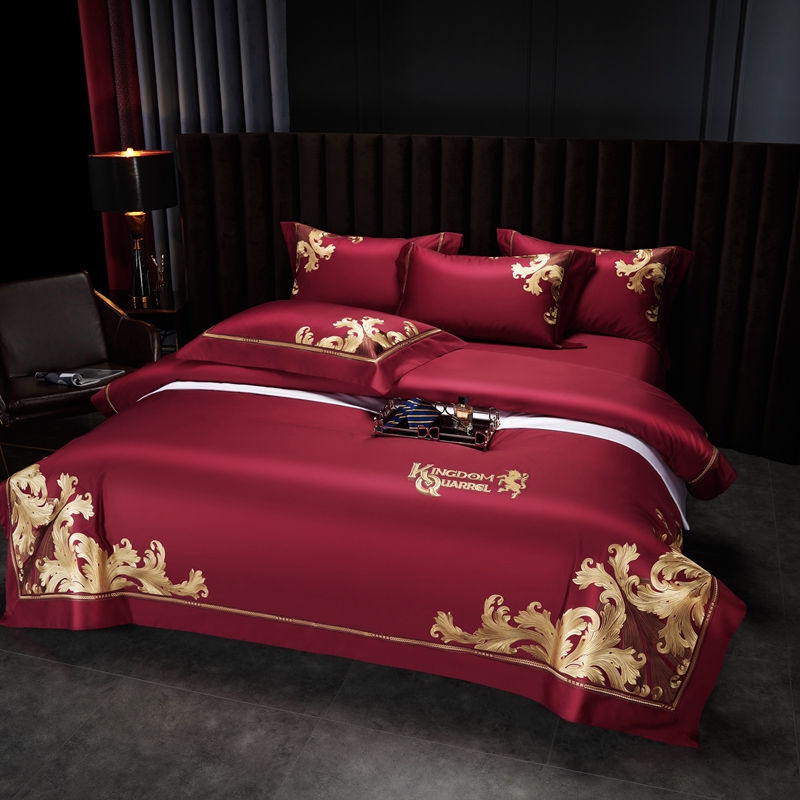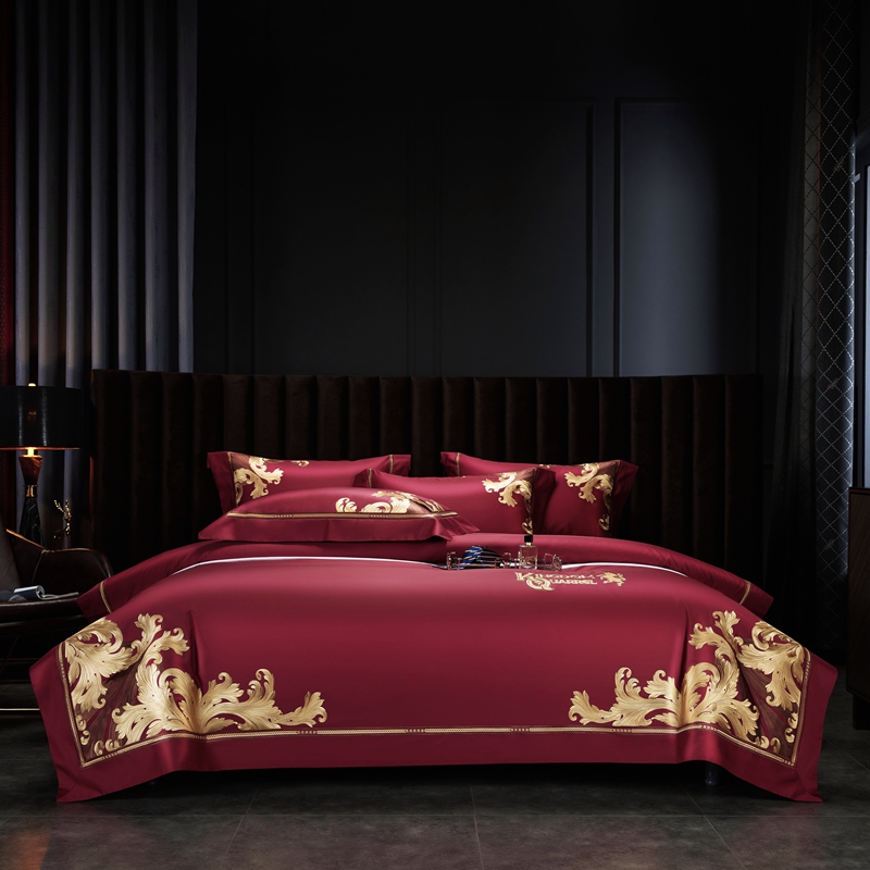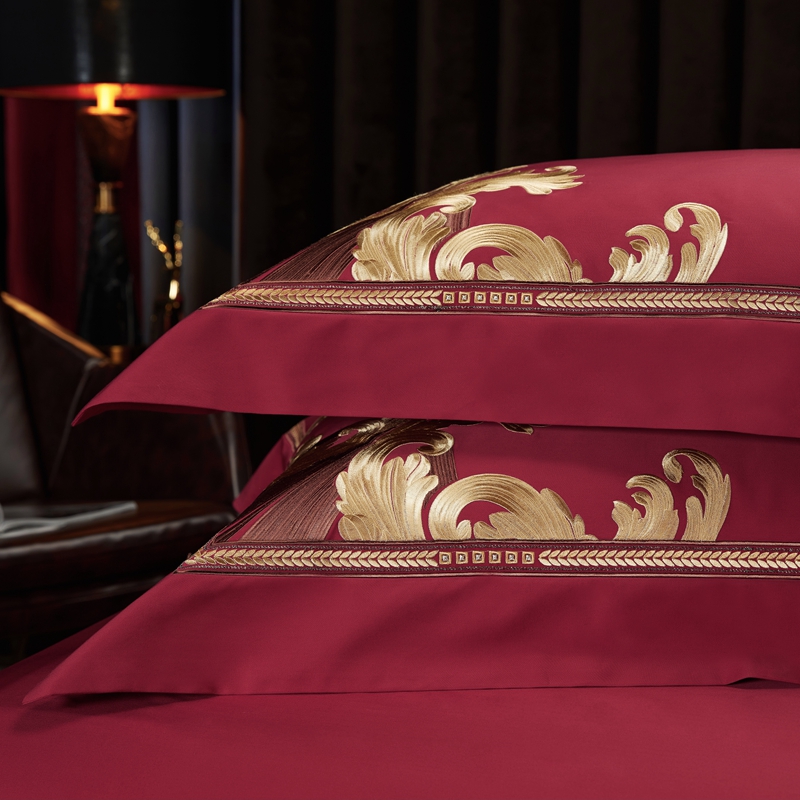 商品名称:缔缦 2024新款定织新布种S140系列刺绣拼角工艺四件套-威廉皇室 威廉皇室 酒红