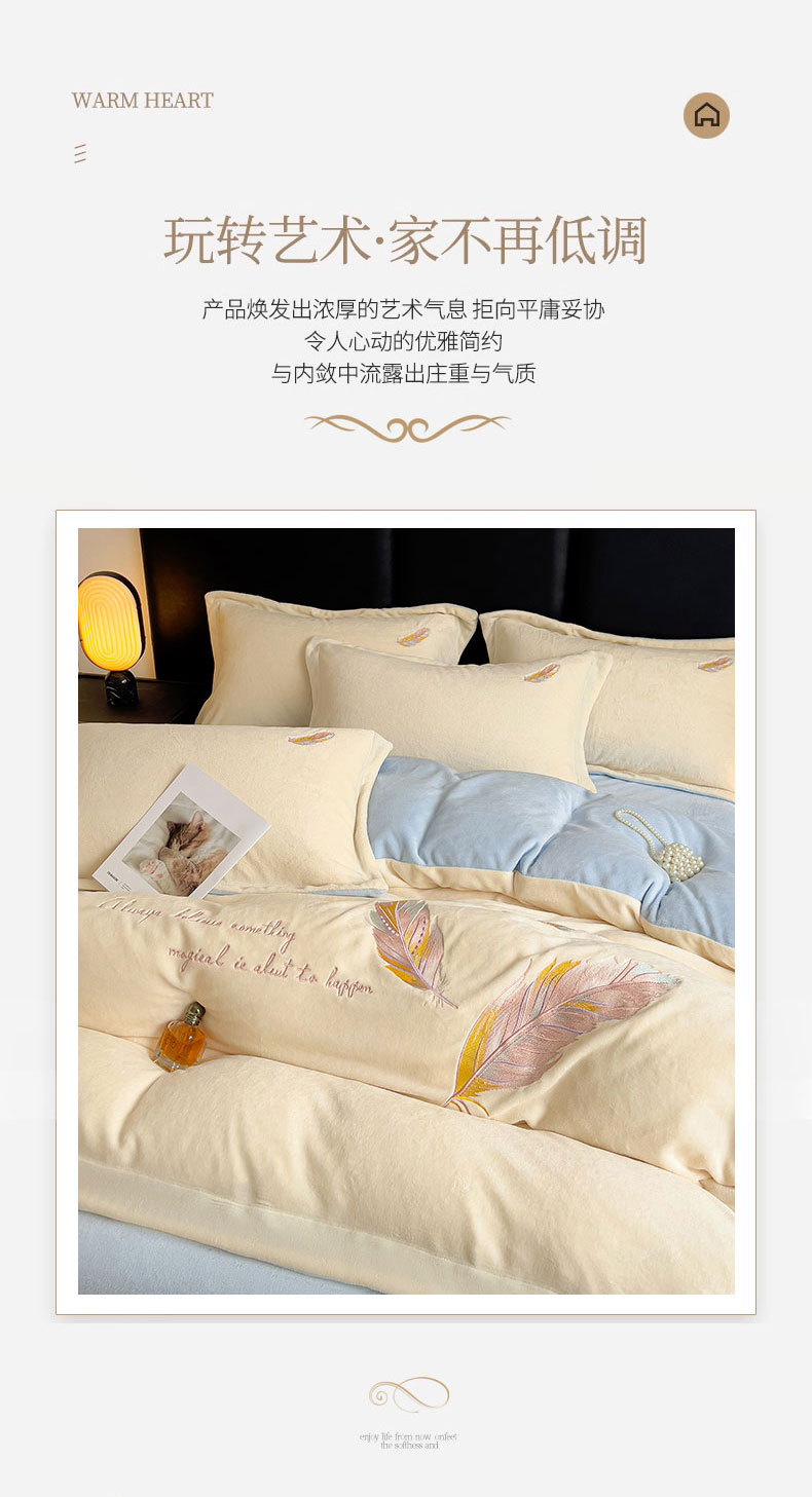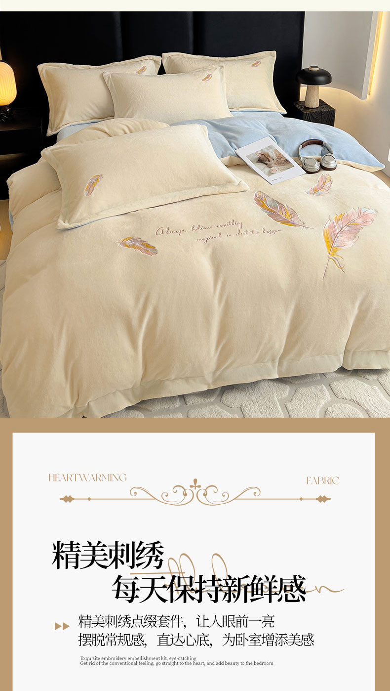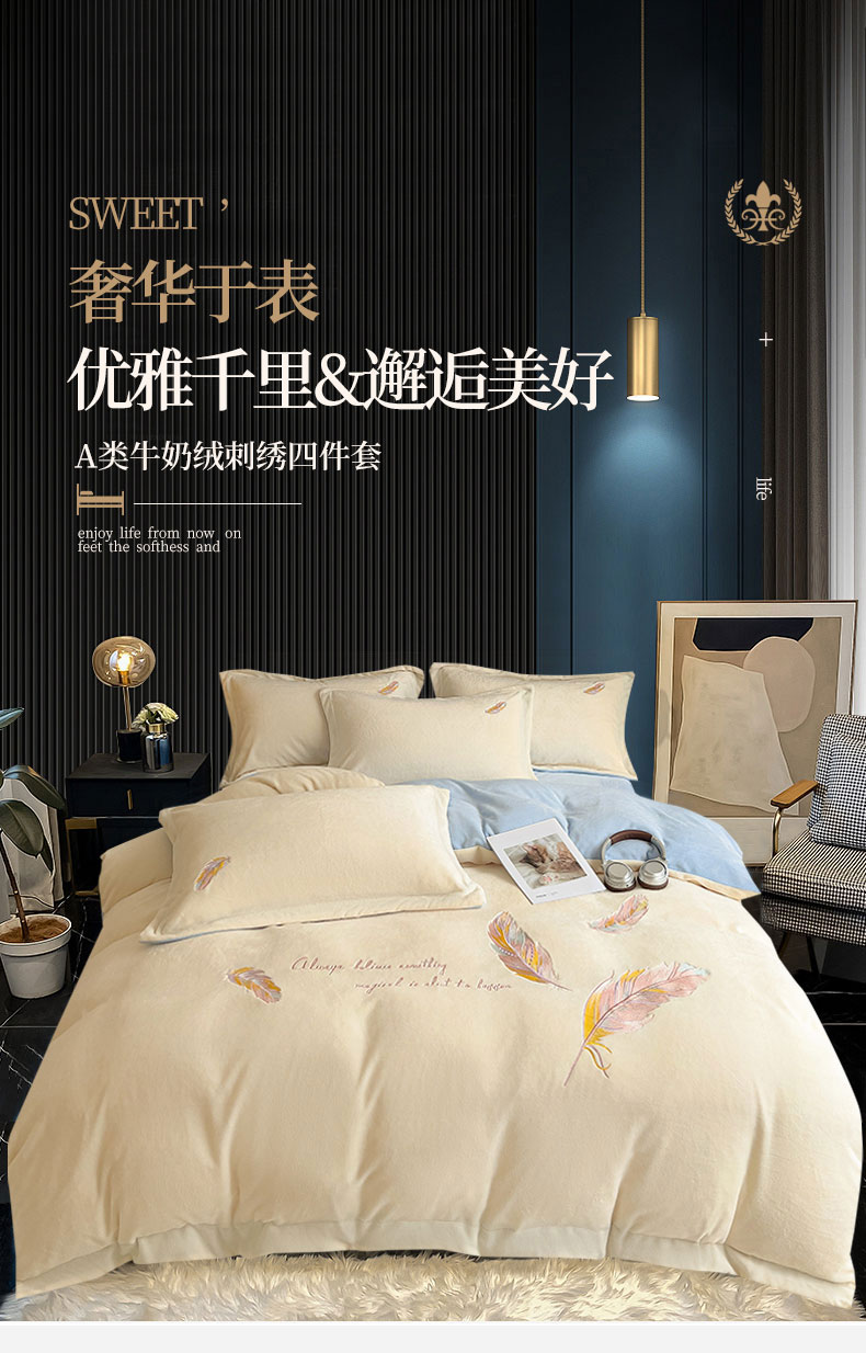 当前位置: 91家纺网 > 商品网购 > 床品套件 > 四件套 > 牛奶绒四件套 > 灰鲸 2025新款A类母婴级牛奶绒刺绣套件-邂逅系列 邂逅-奶昔白+天空蓝
