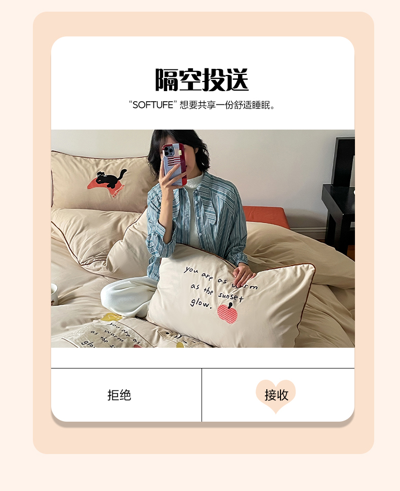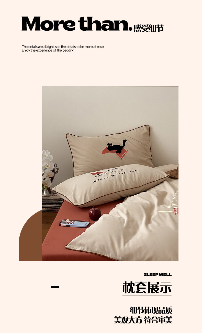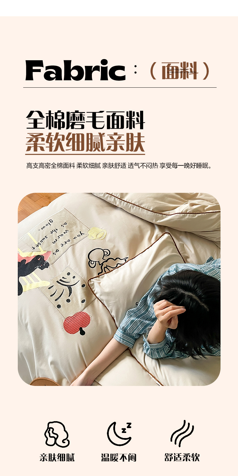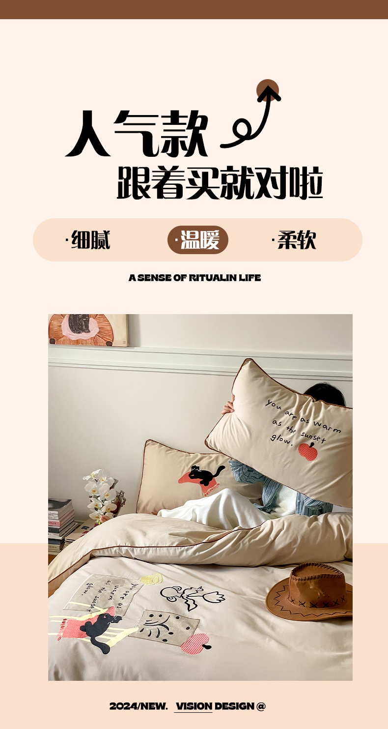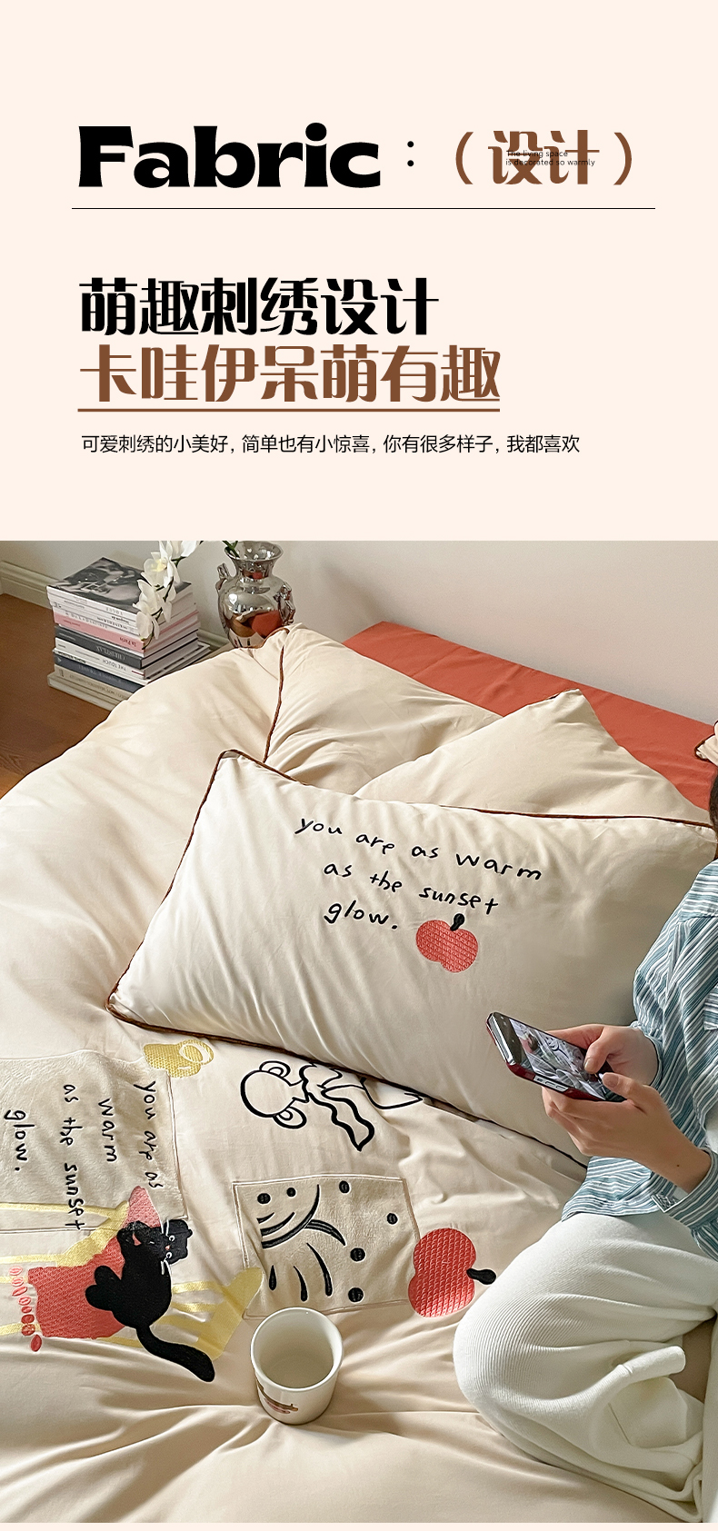 (总)圆岛家纺 2023冬季新款全棉加厚磨毛刺绣四件套-场景二,假日小象,猫咪日记