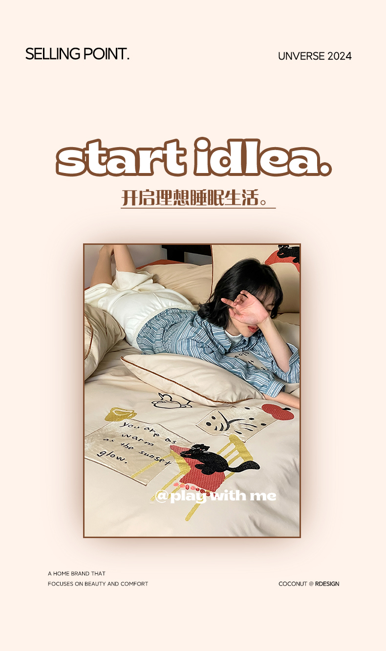 (总)圆岛家纺 2023冬季新款全棉加厚磨毛刺绣四件套-场景一,假日小象,猫咪日记
