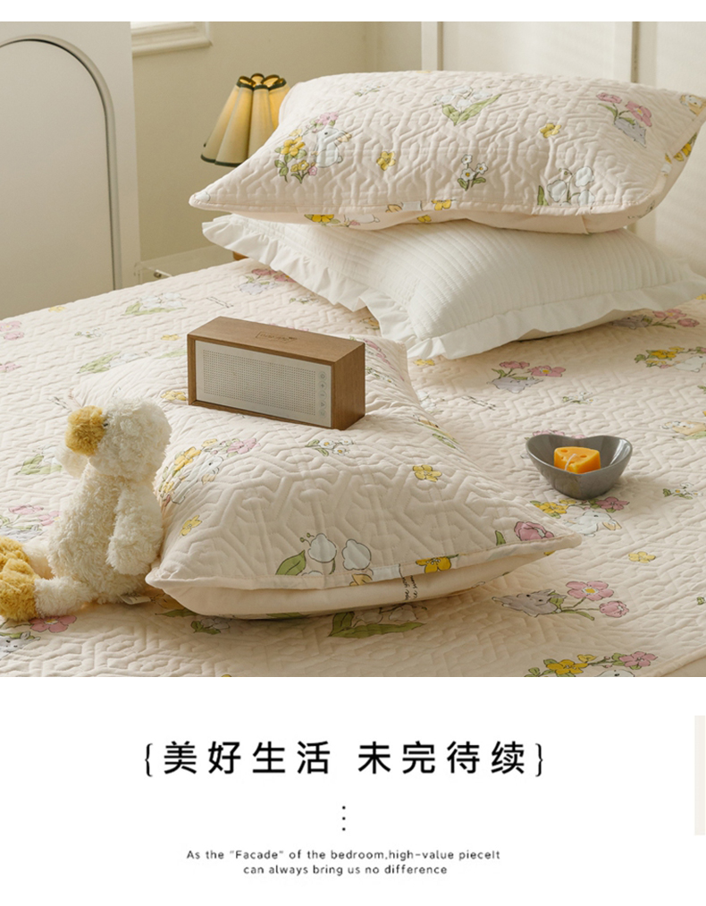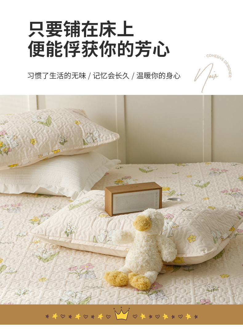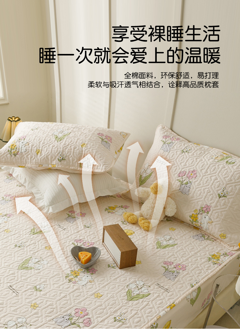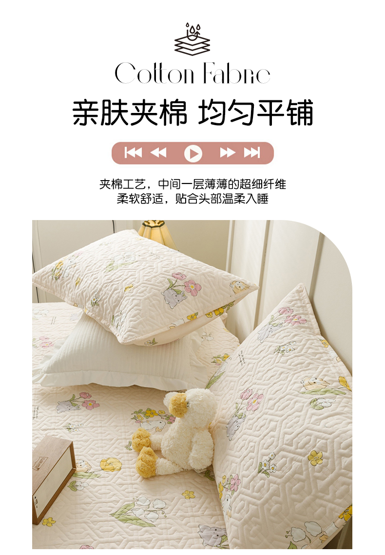 商品名称:2024新款全棉夹棉枕套-印花类 园林兔-玉
